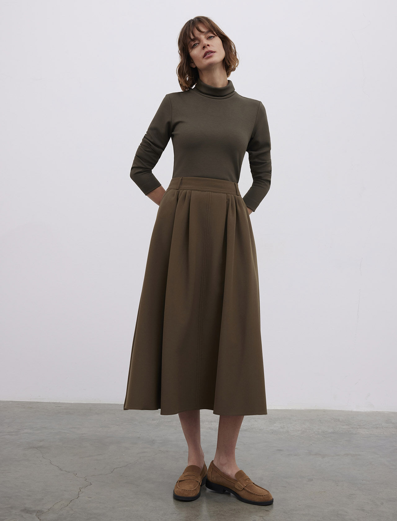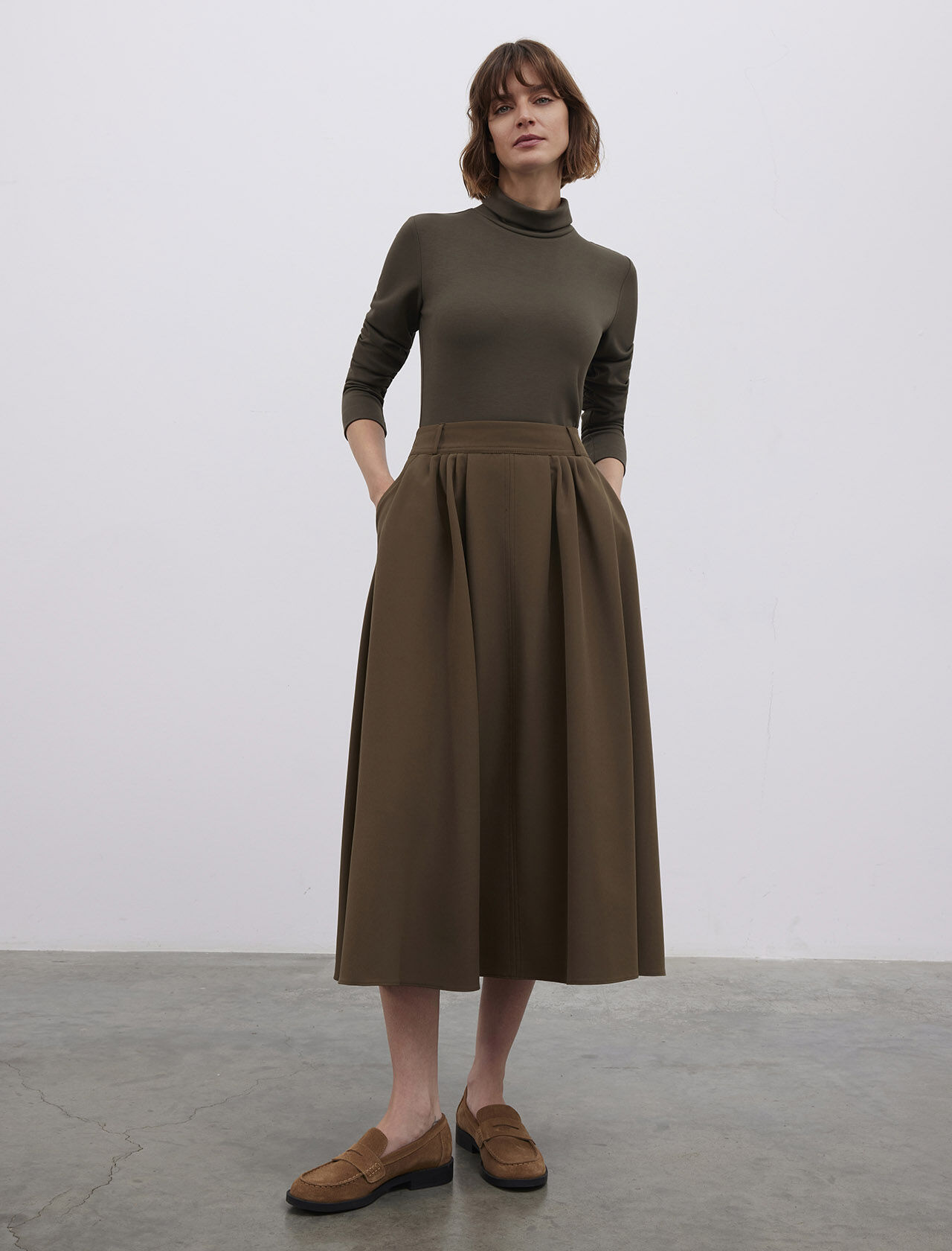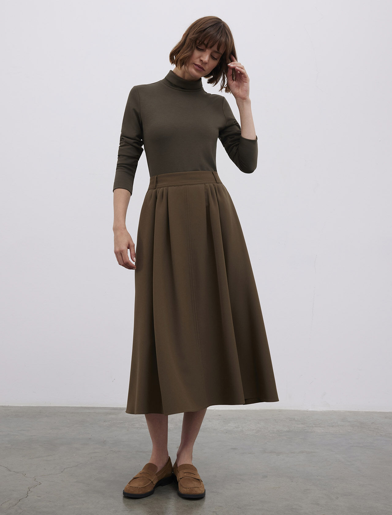 Önde Cep Detaylı Midi Boy Etek