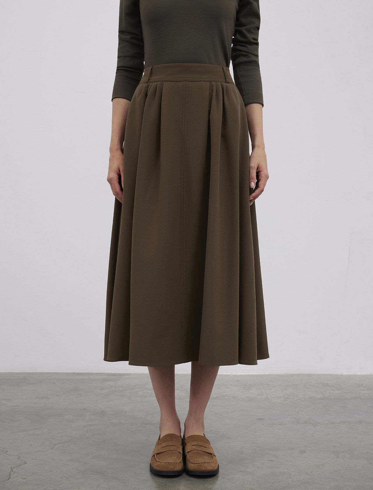 Dikiş Detaylı Midi Boy Pamuk Karışımlı Etek