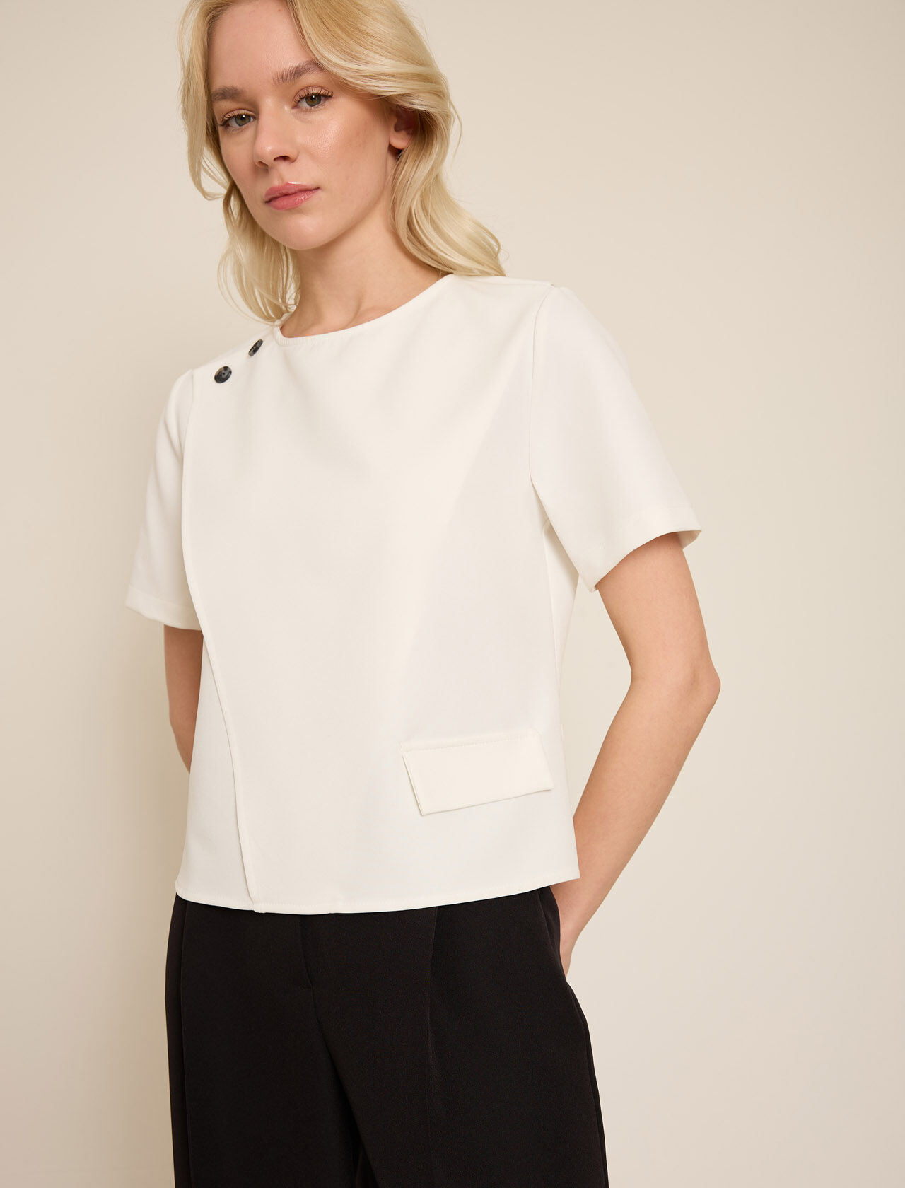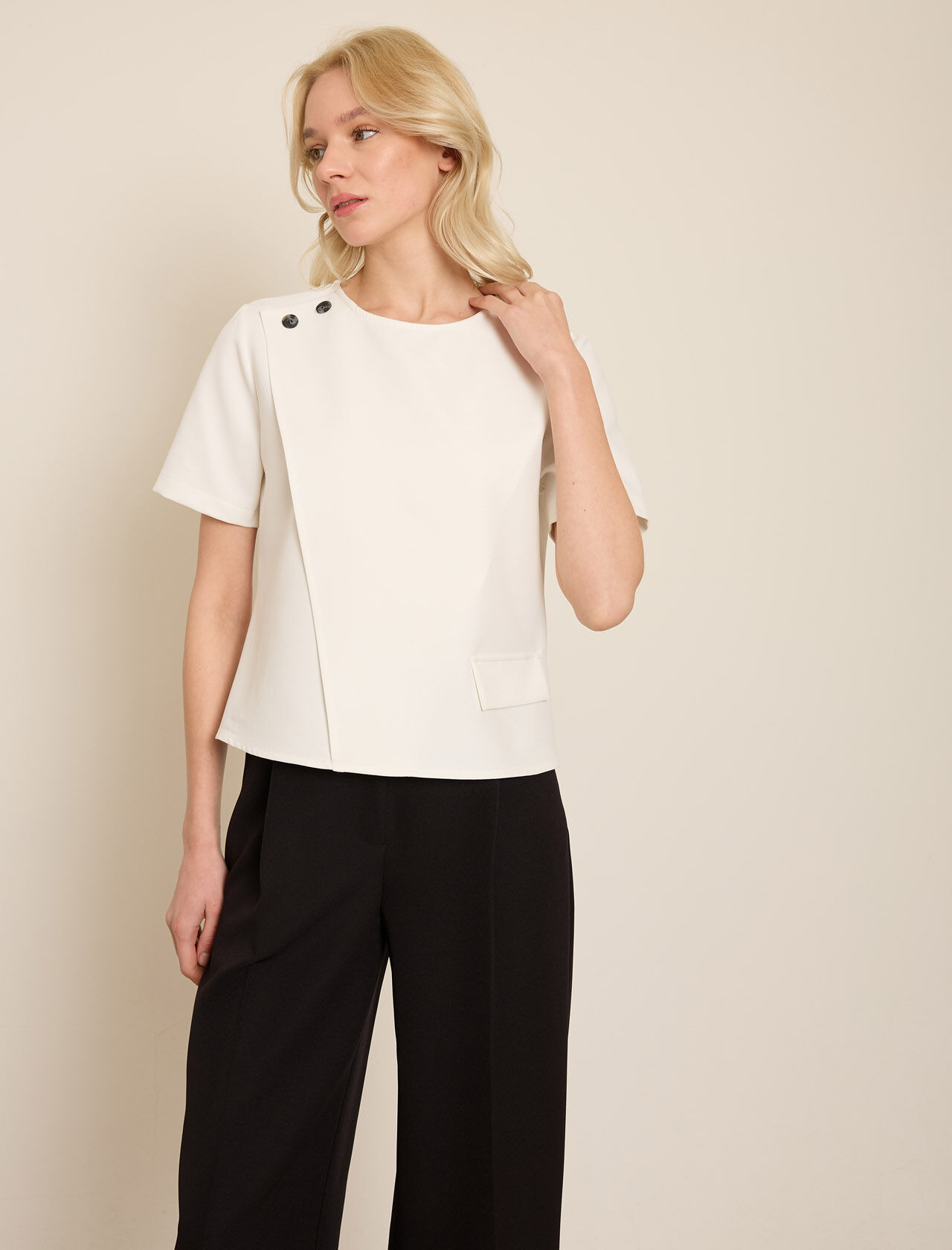PAMUK KARISIM SUS DIKISLI KEMERLI KOLSUZ BLUZ