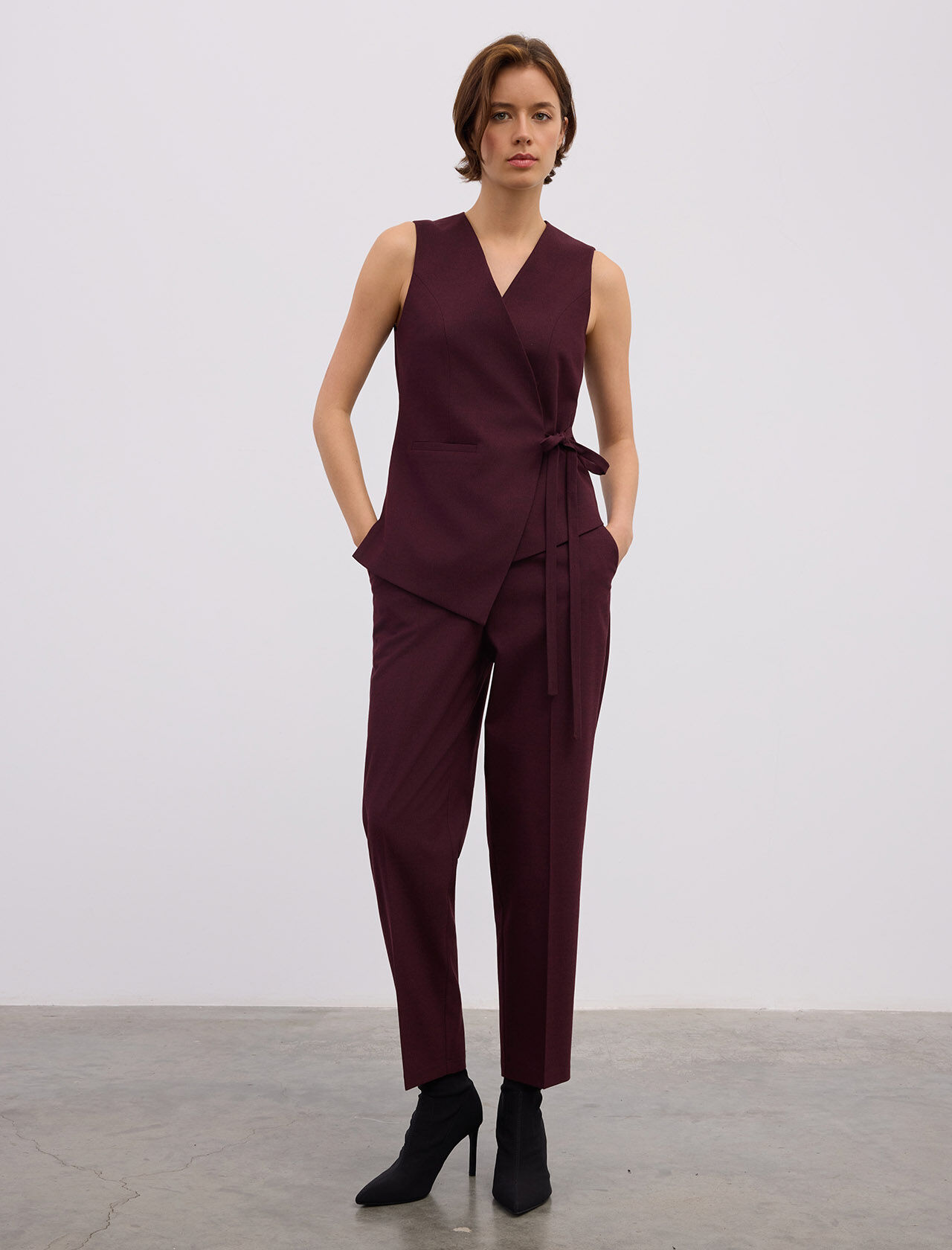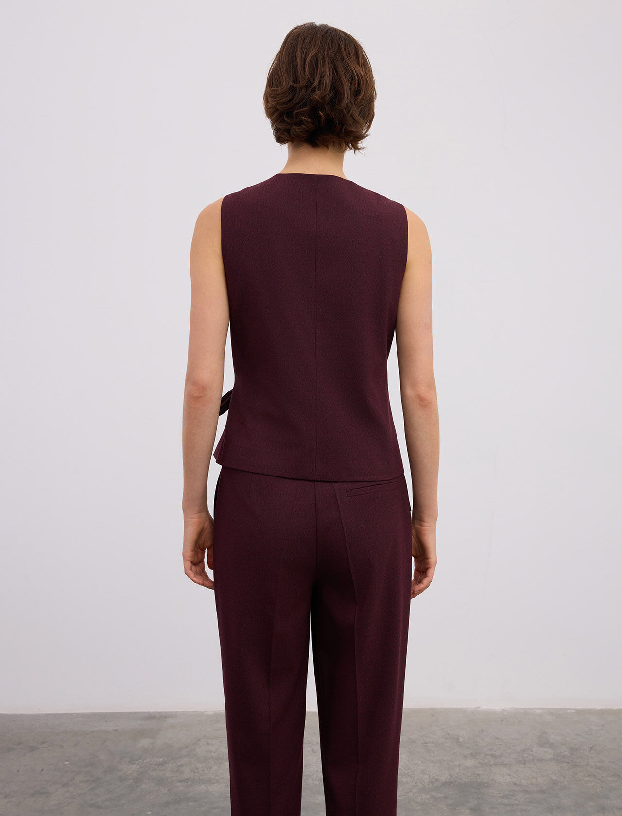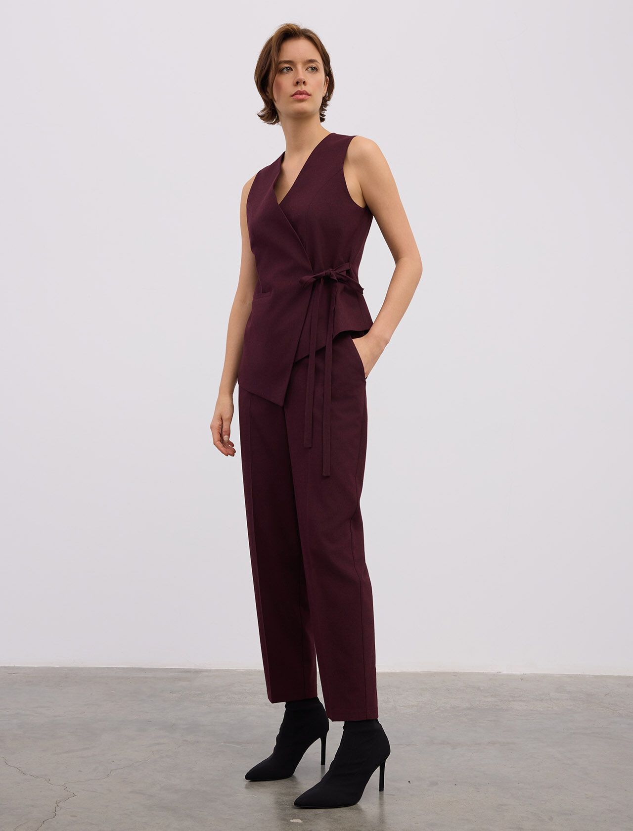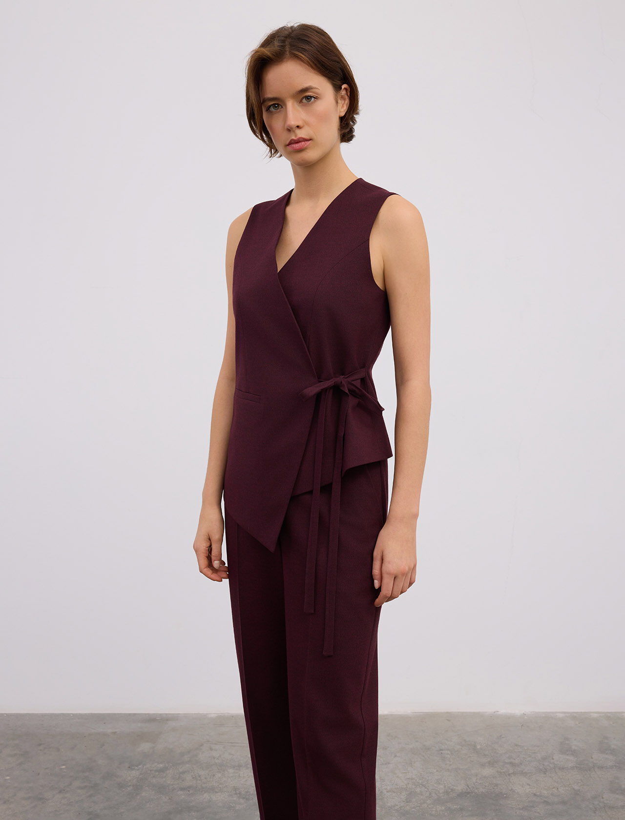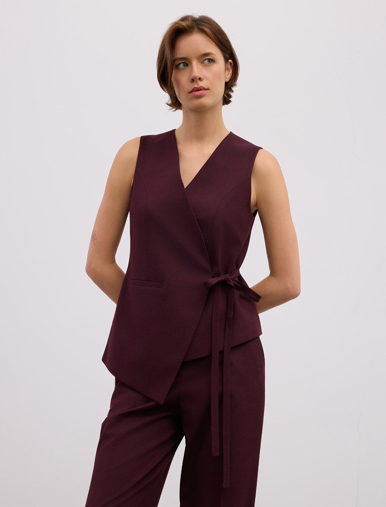 Arkadan Bağlamalı Cepli Tencel Yelek