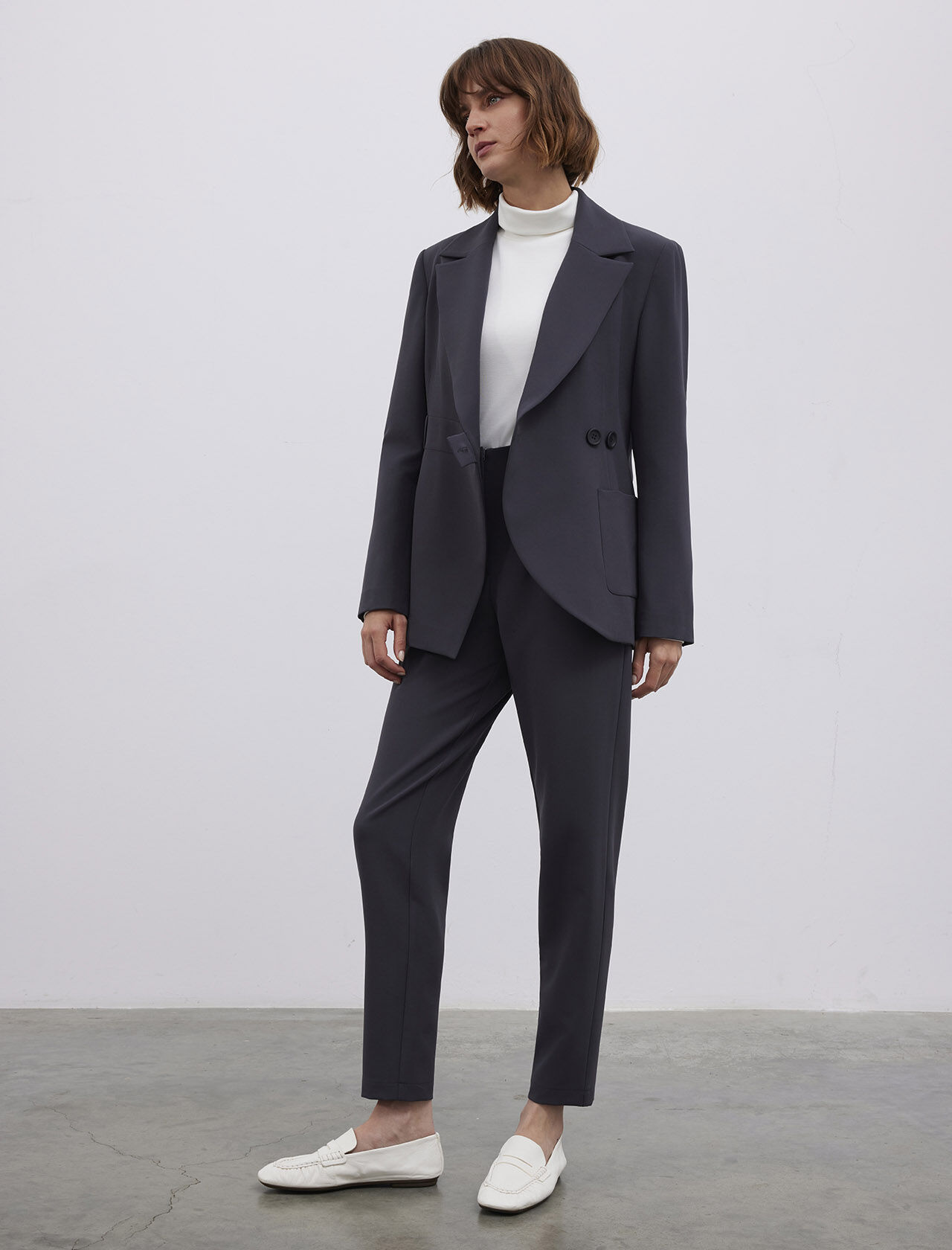 Kruvaze Kapama Yakasız Viskon Karışımlı Ceket
