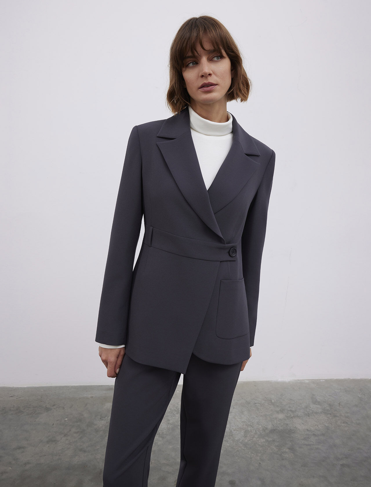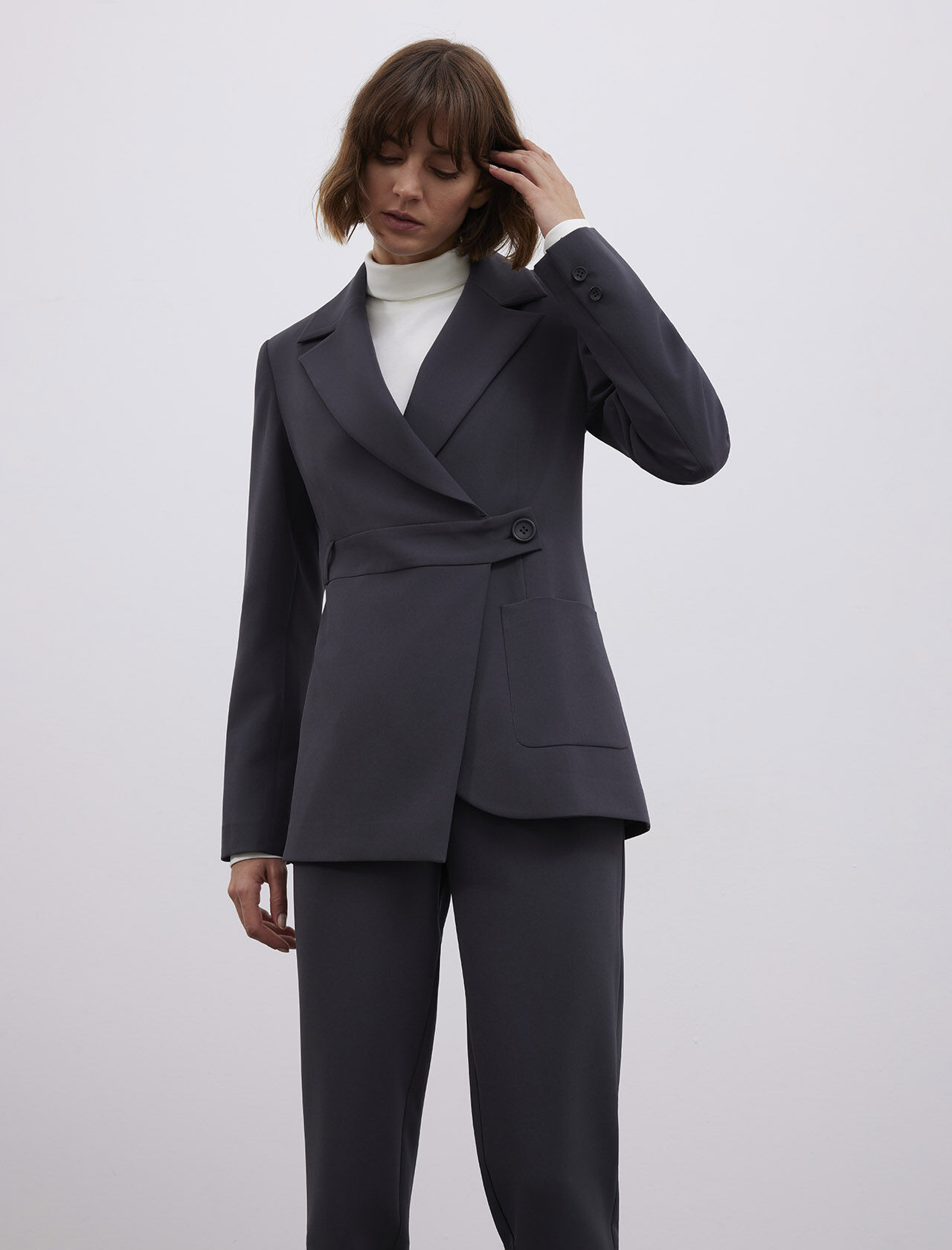 ASIMETRIK KESIM DUGME DETAYLI BLAZER CEKET