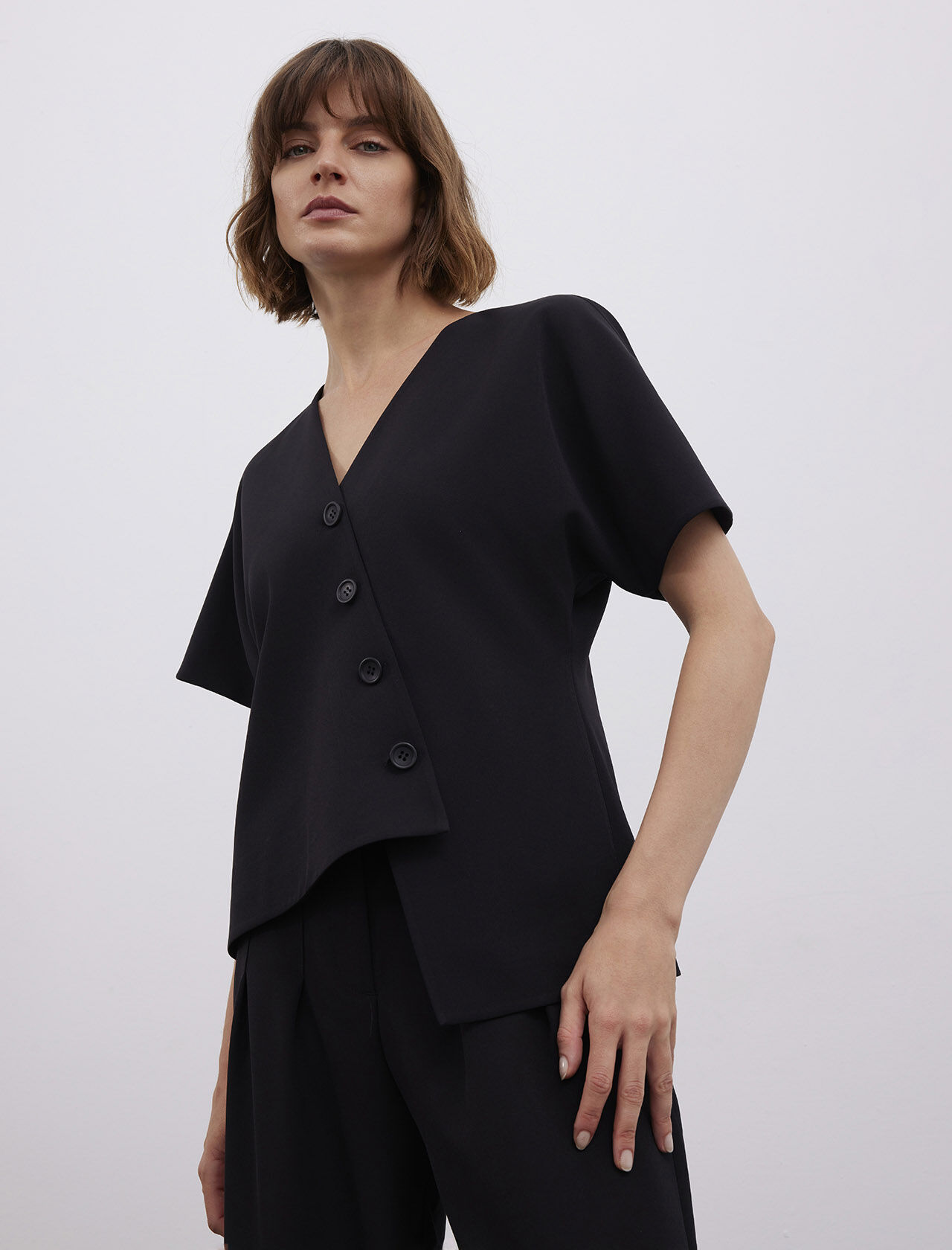ASİMETRİK KESİM KISA YARASA KOLLU YELEK