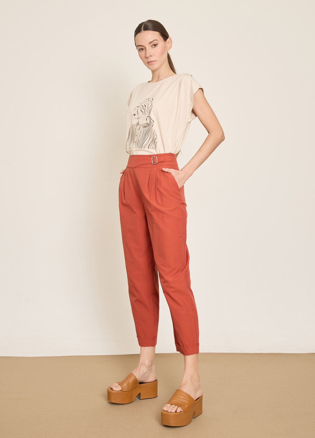 AYARLANABİLİR TOKALI PLİ DETAYLI KOTON PANTOLON