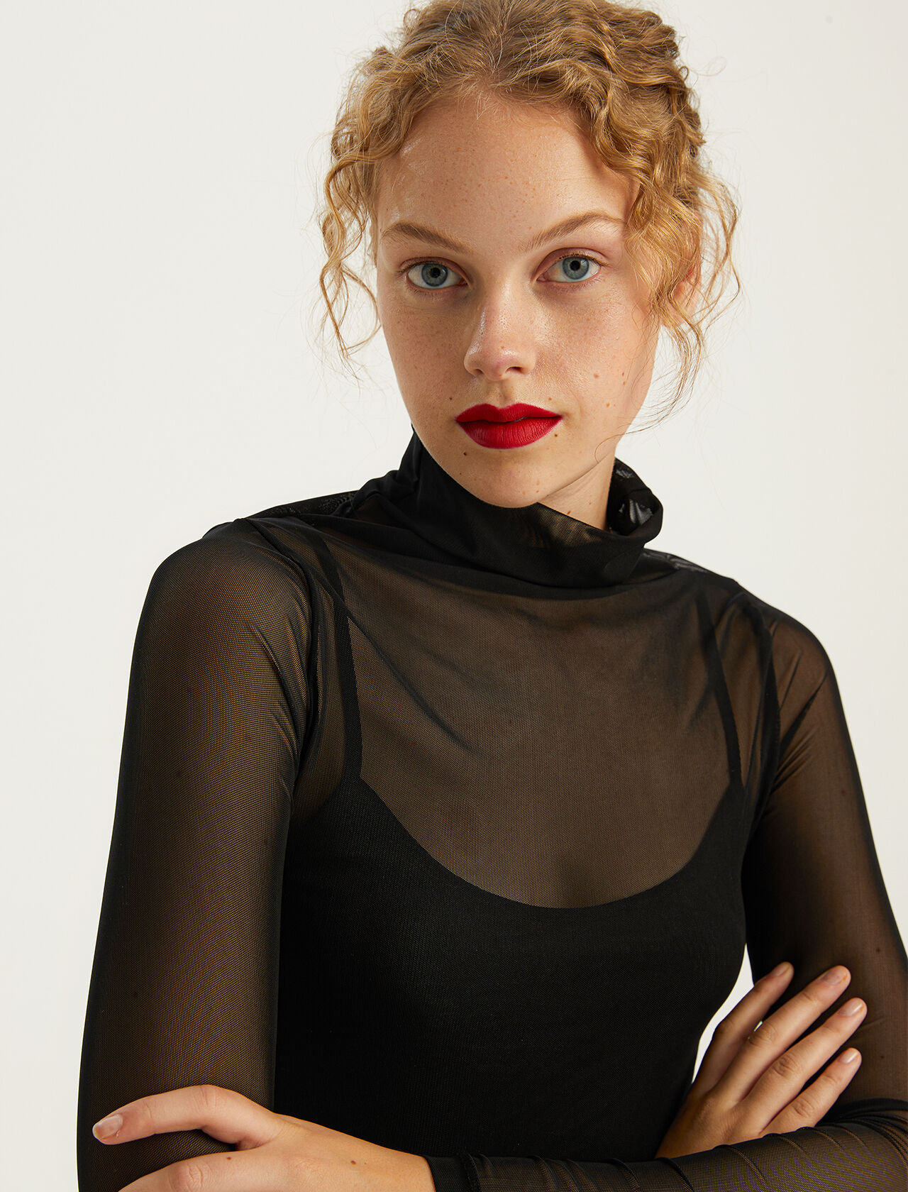 PAMUK KARISIM YAKASI FERMUARLI ORME BLUZ