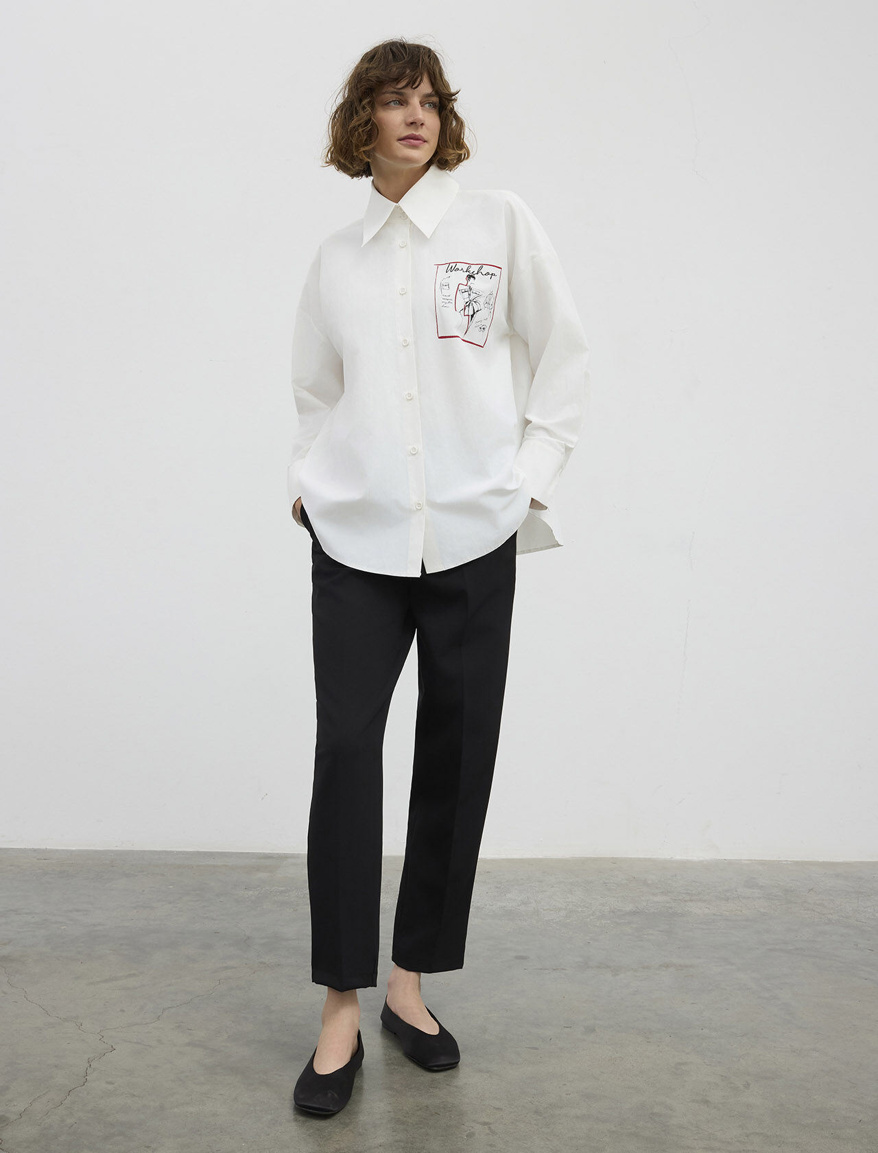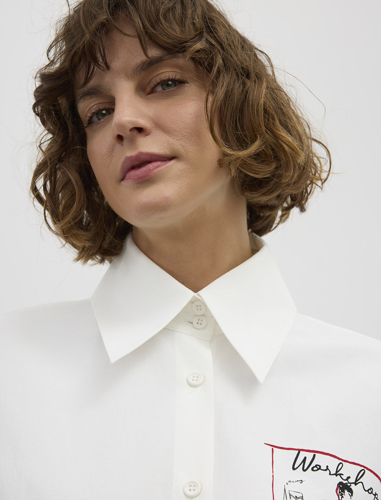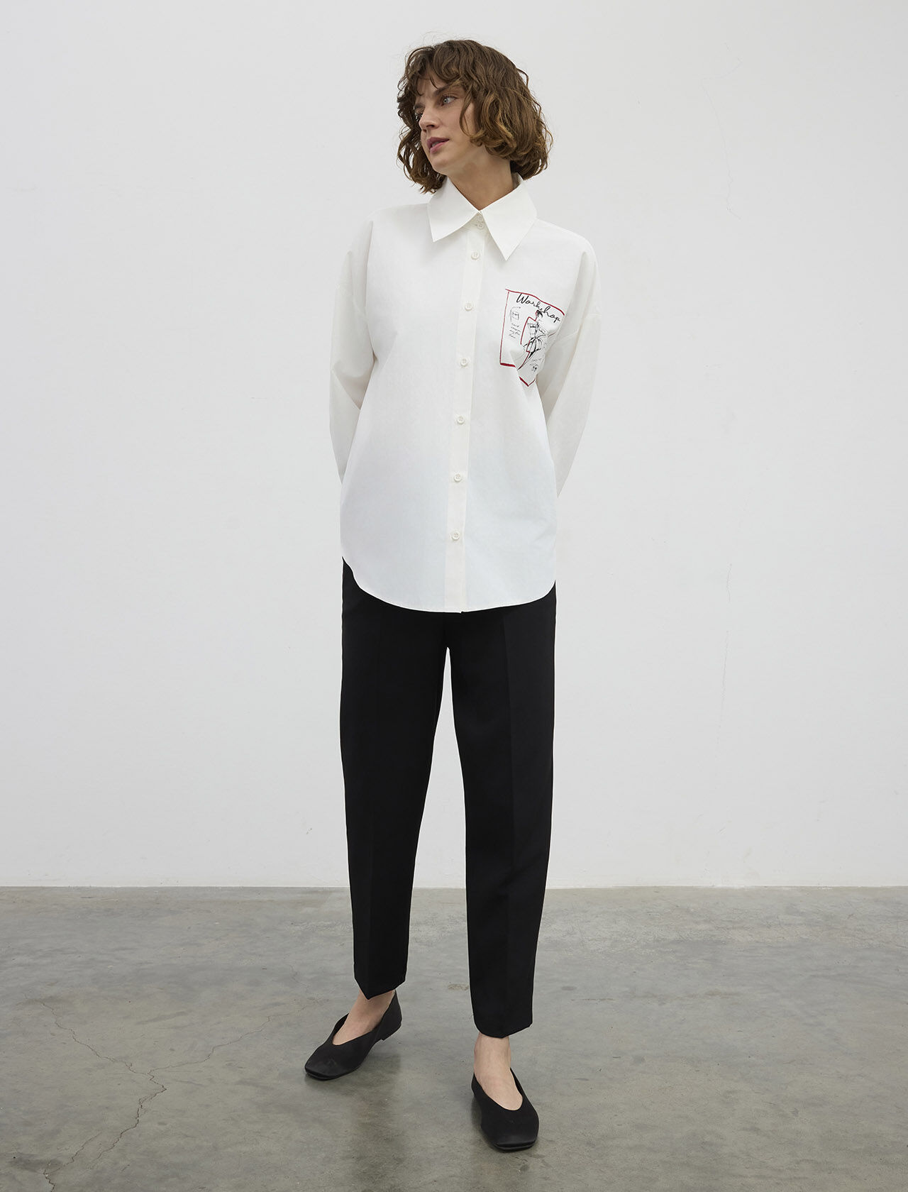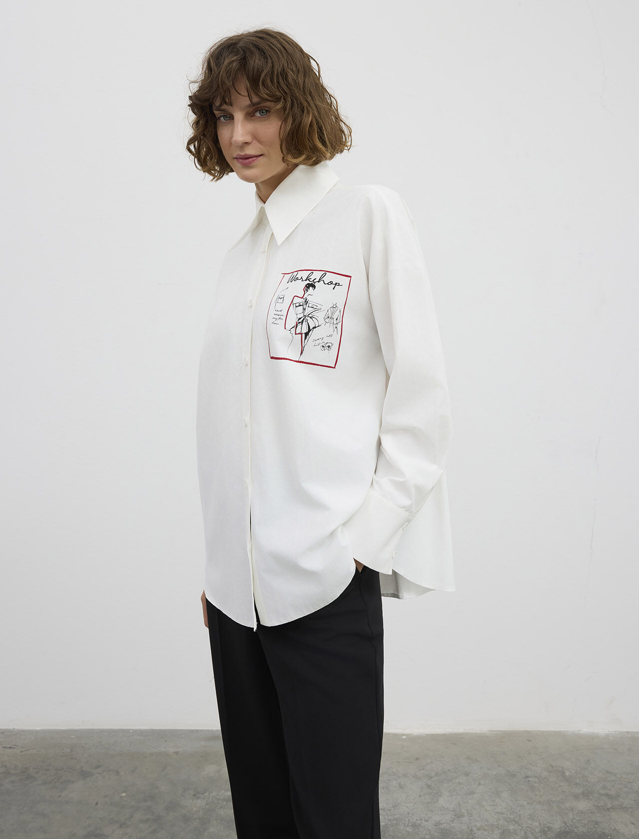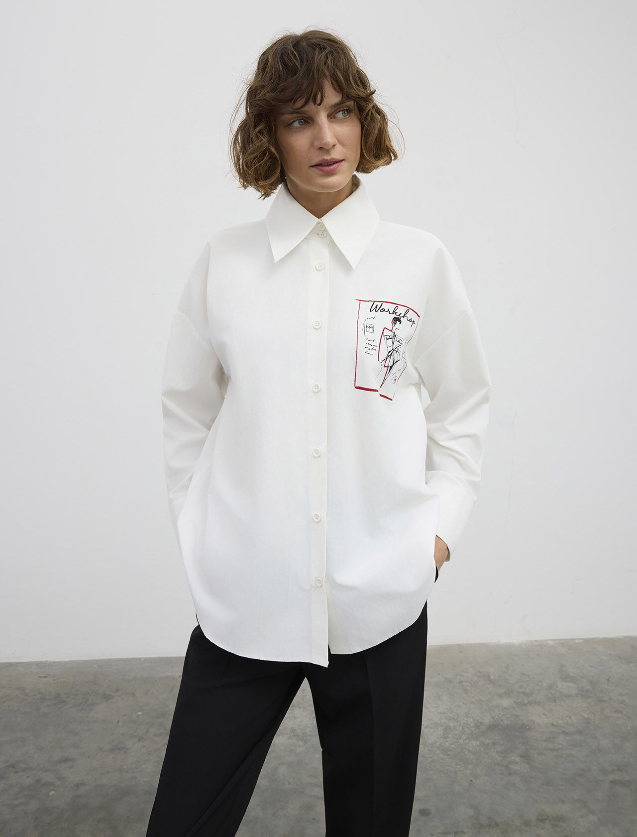 BASKI DETAYLI OVERSIZE PAMUK KARISIM GOMLEK