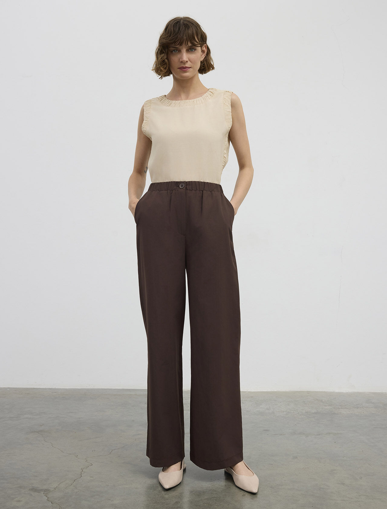 Kemer Detaylı Geniş Paça Pamuk Pantolon