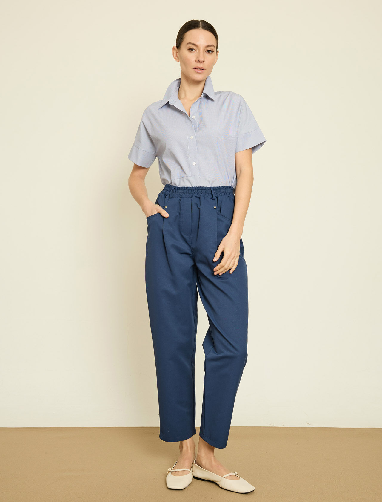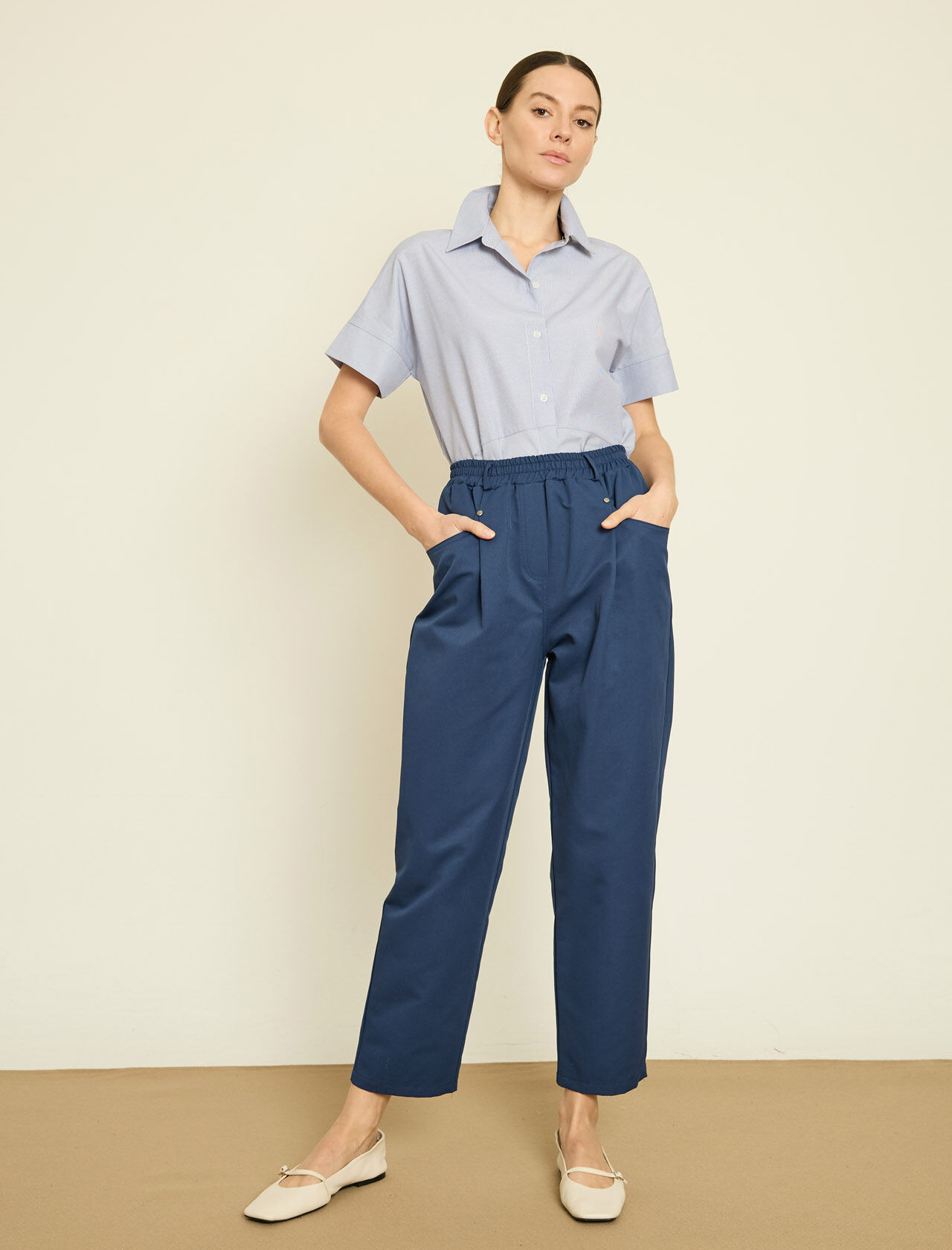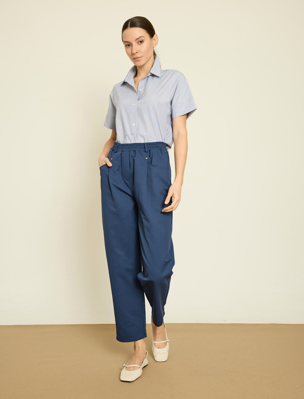 ARKA BELI LASTIKLI PACASI DUGME DETAYLI PANTOLON