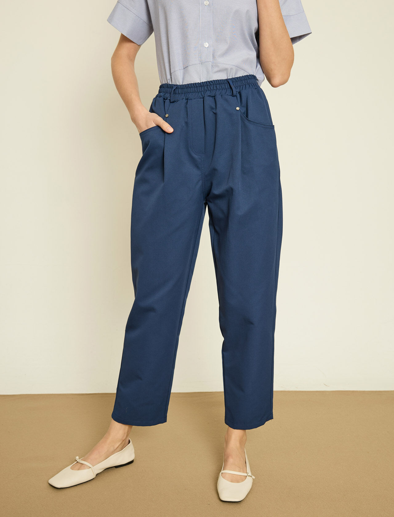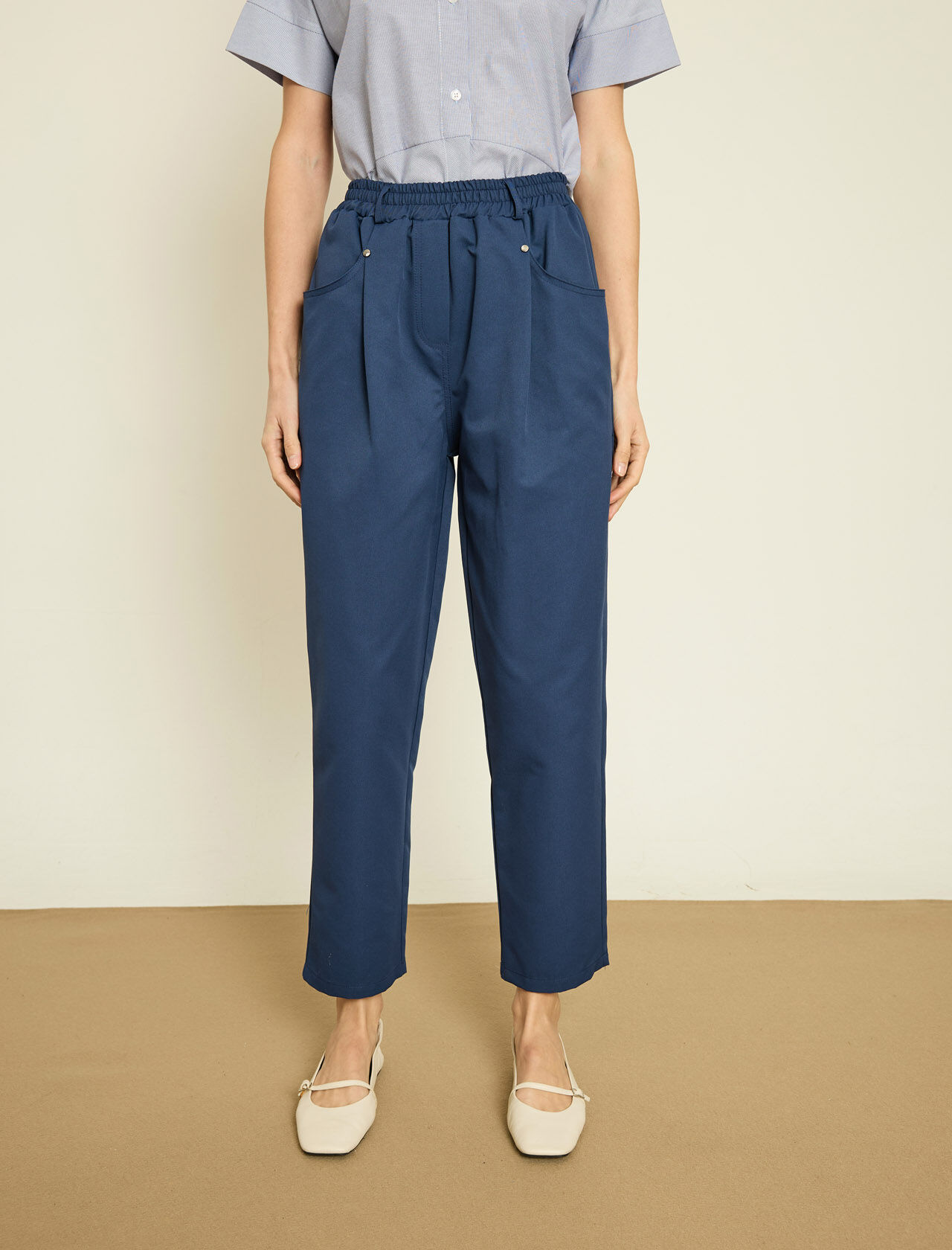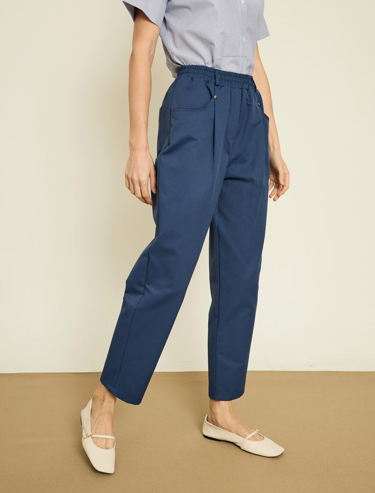 ARKA BELI LASTIKLI PACASI DUGME DETAYLI PANTOLON
