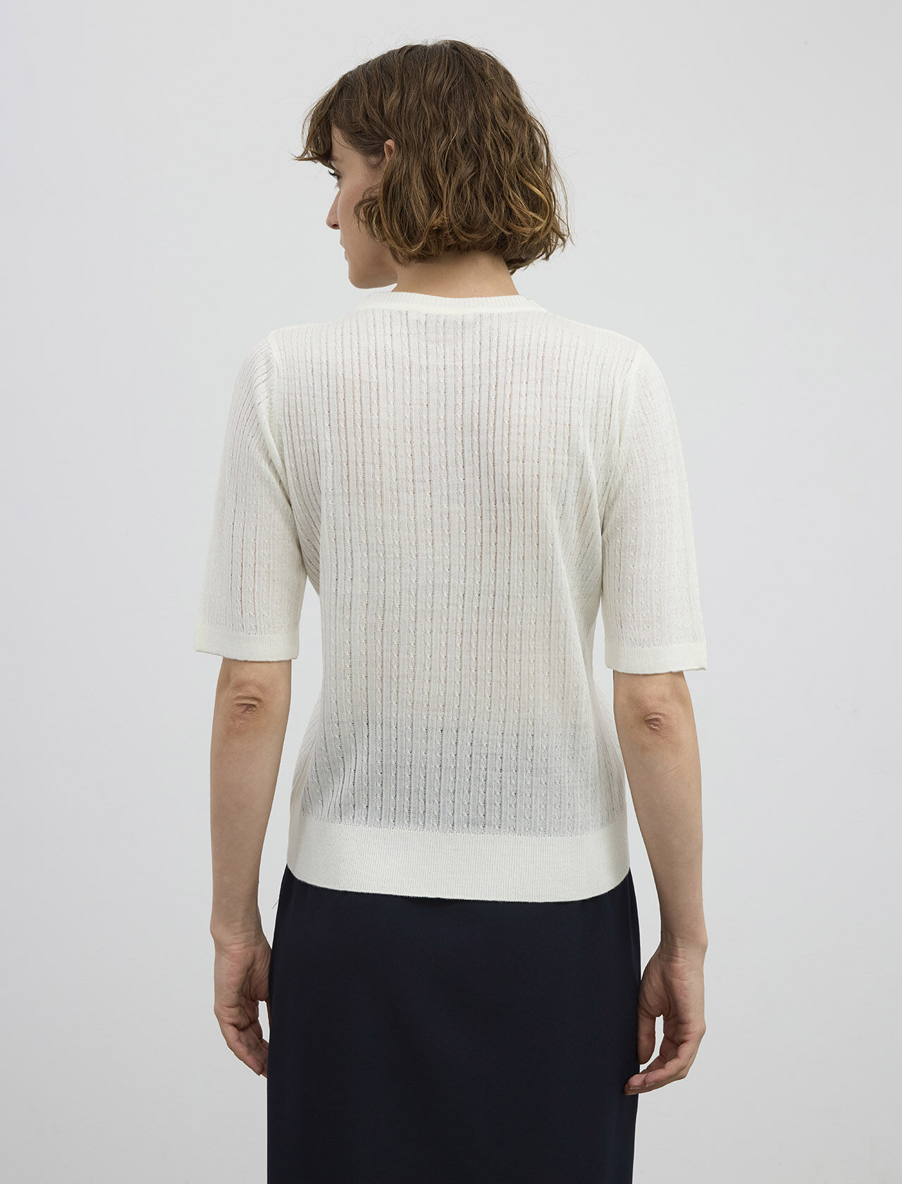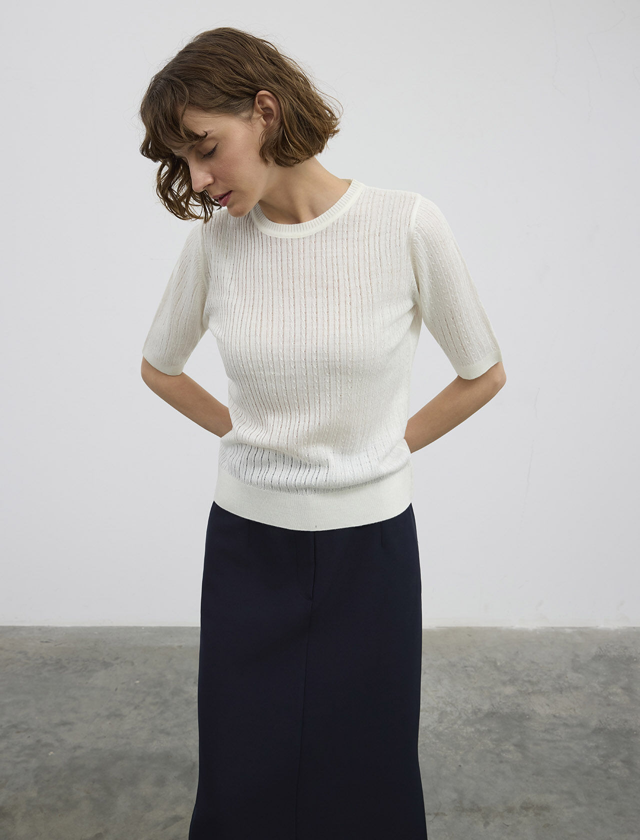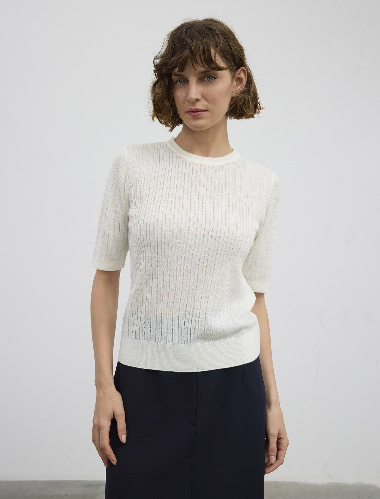 BİSİKLET YAKA ÖRGÜ DESENLİ KISA KOLLU KAZAK