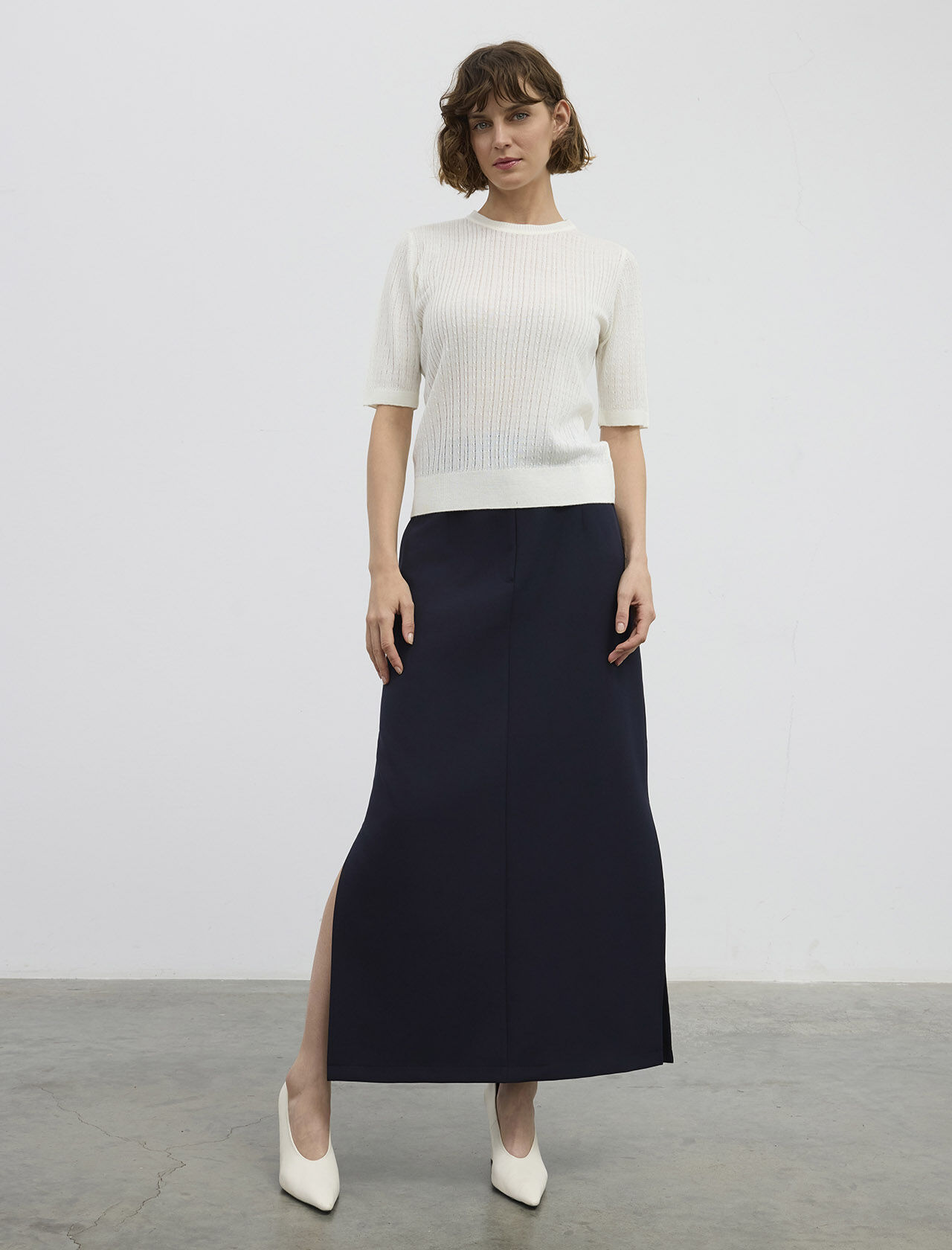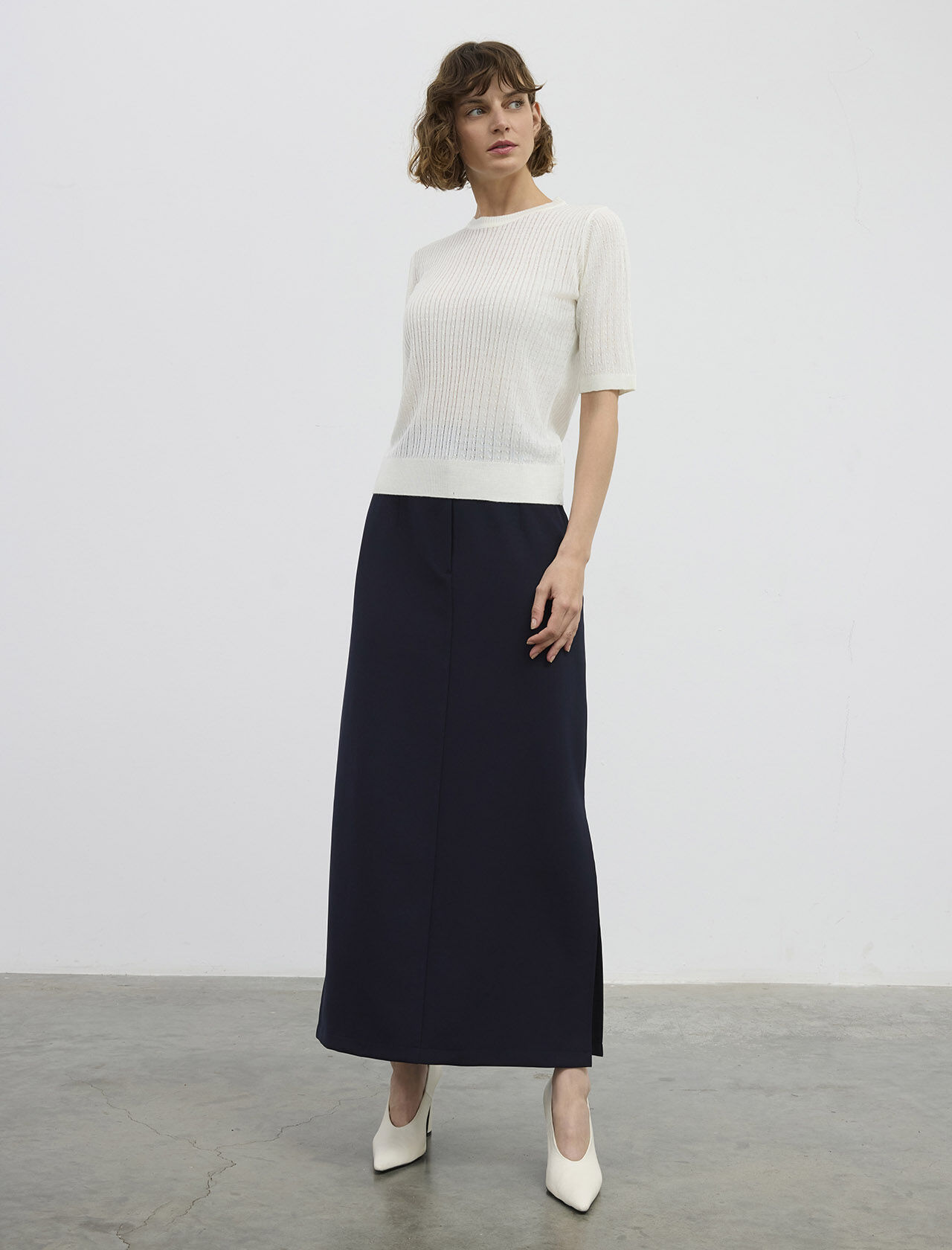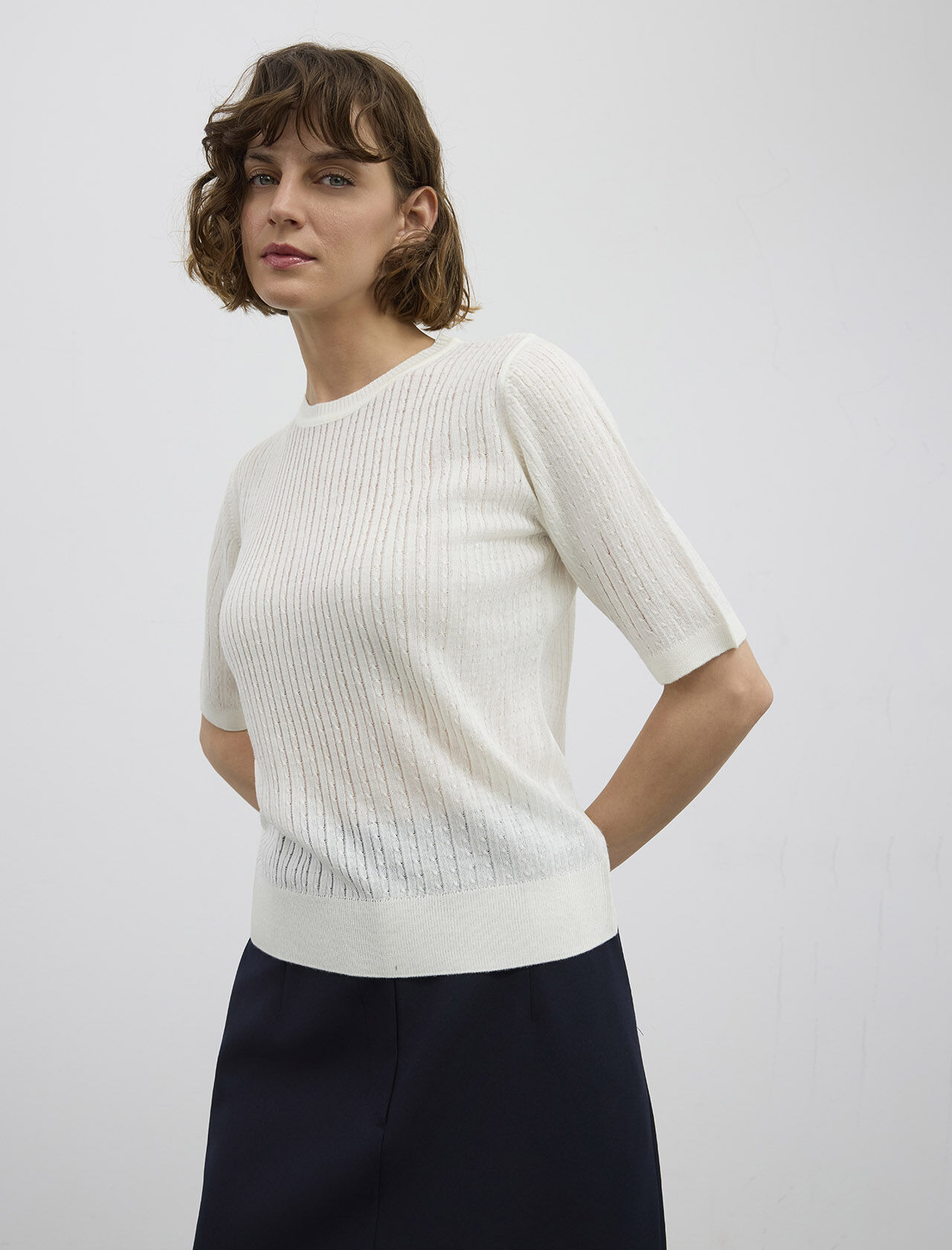 BİSİKLET YAKA ÖRGÜ DESENLİ KISA KOLLU KAZAK