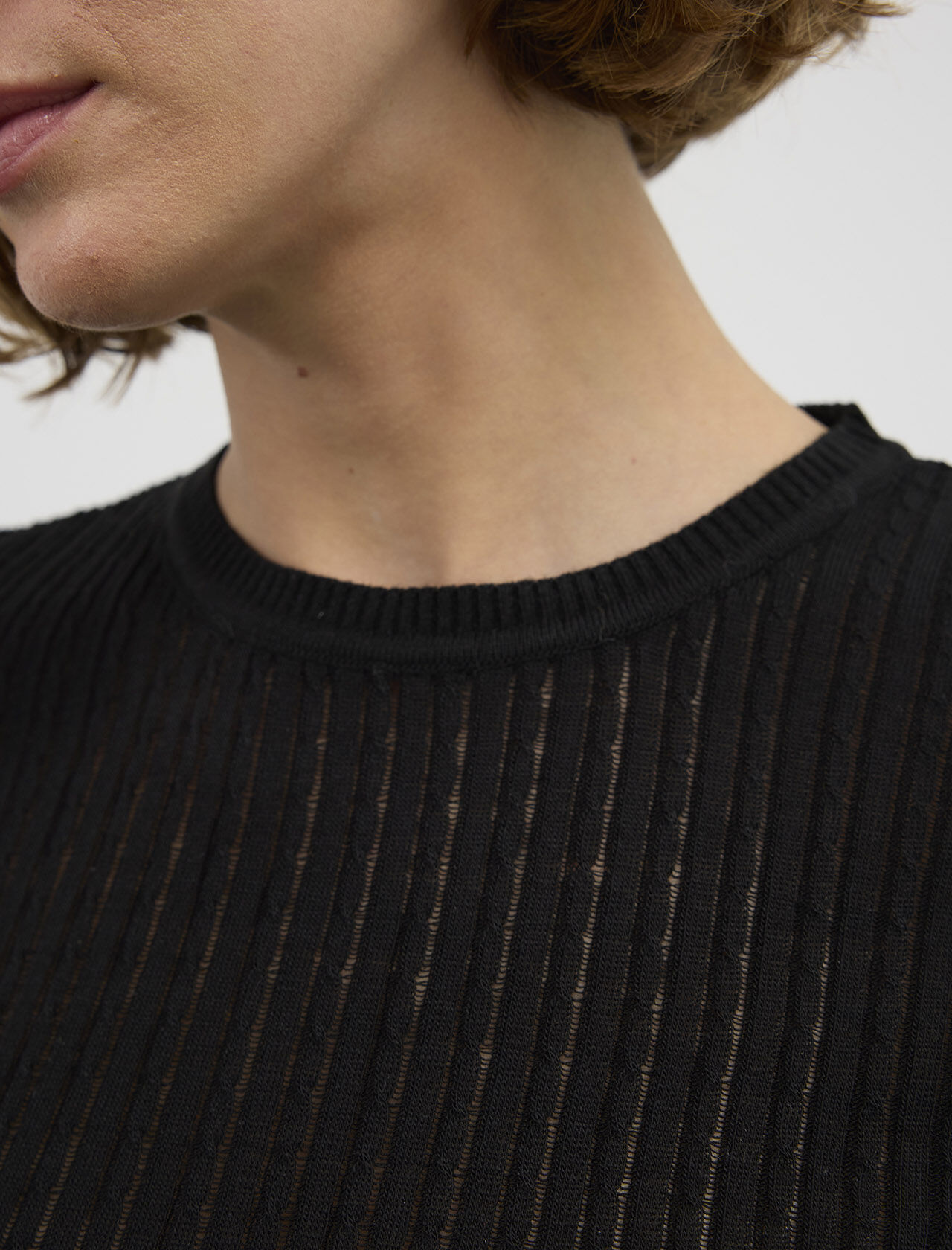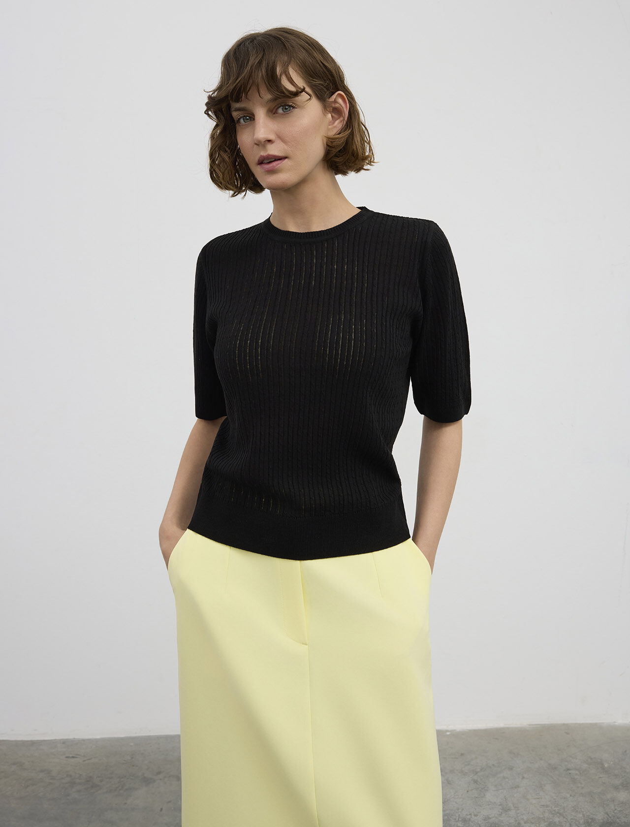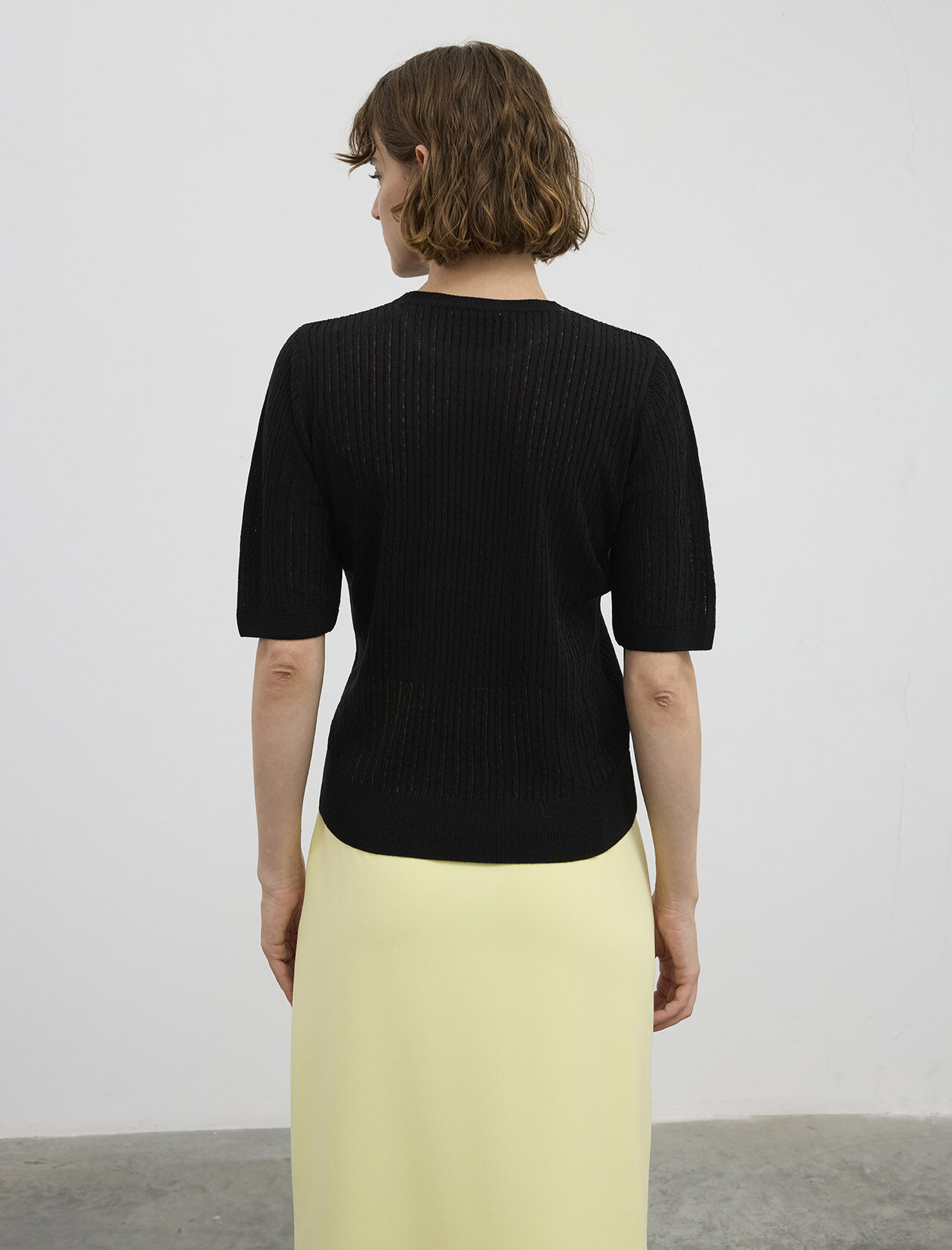 BİSİKLET YAKA ÖRGÜ DESENLİ KISA KOLLU KAZAK