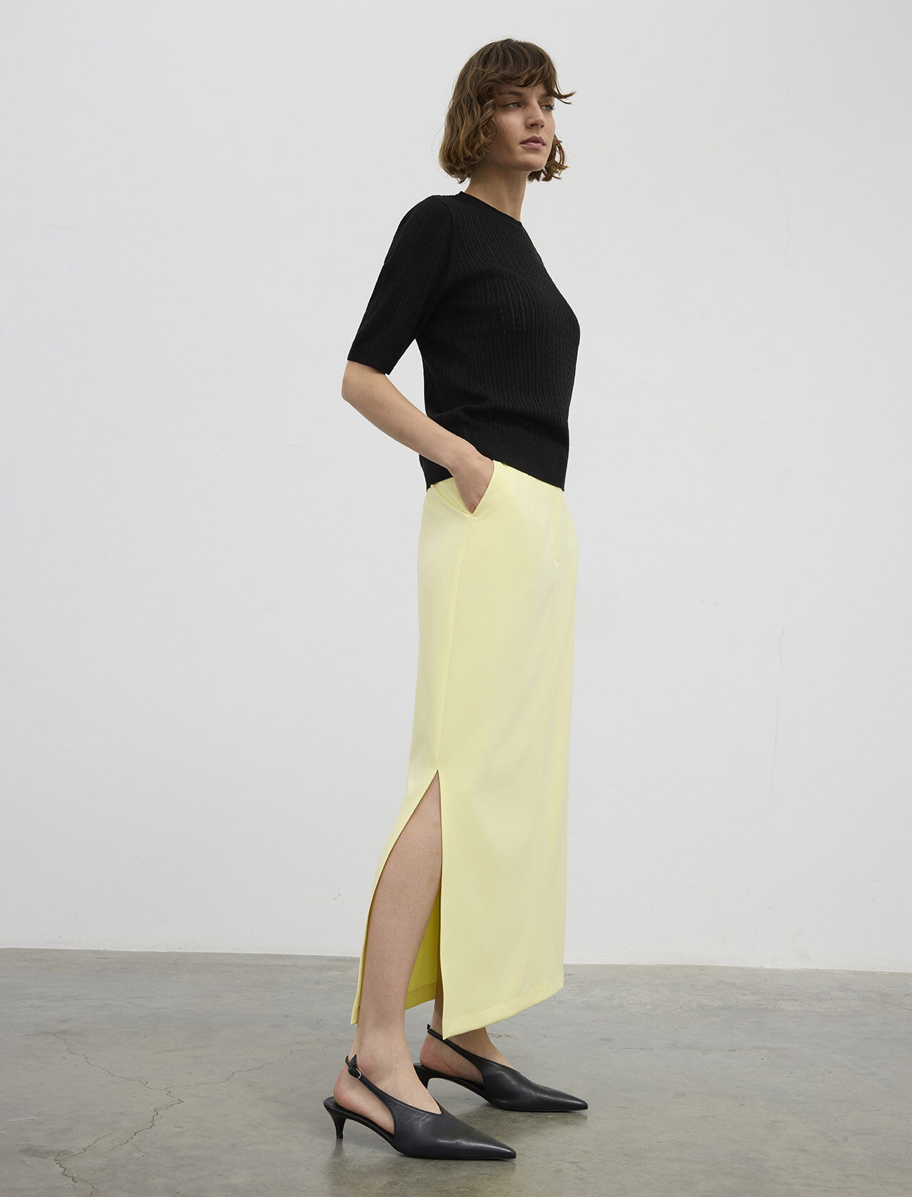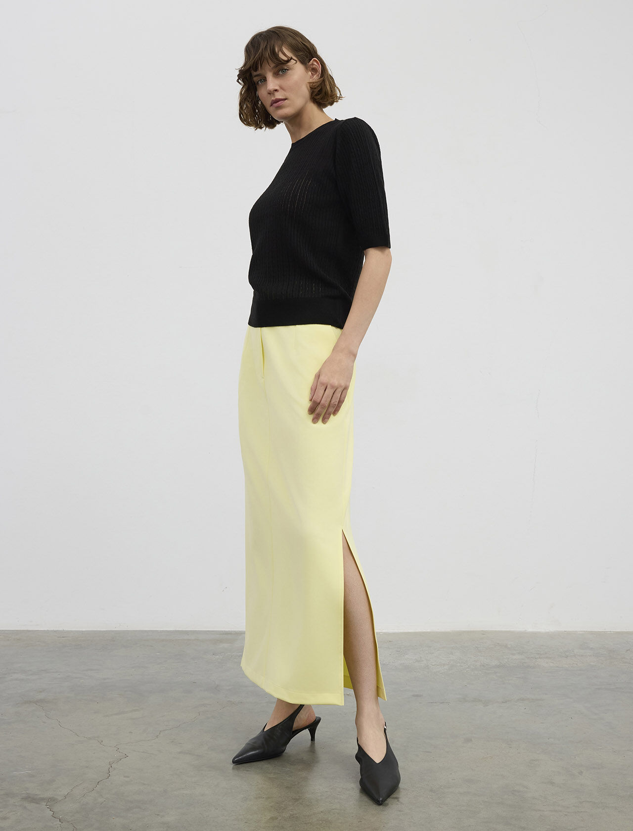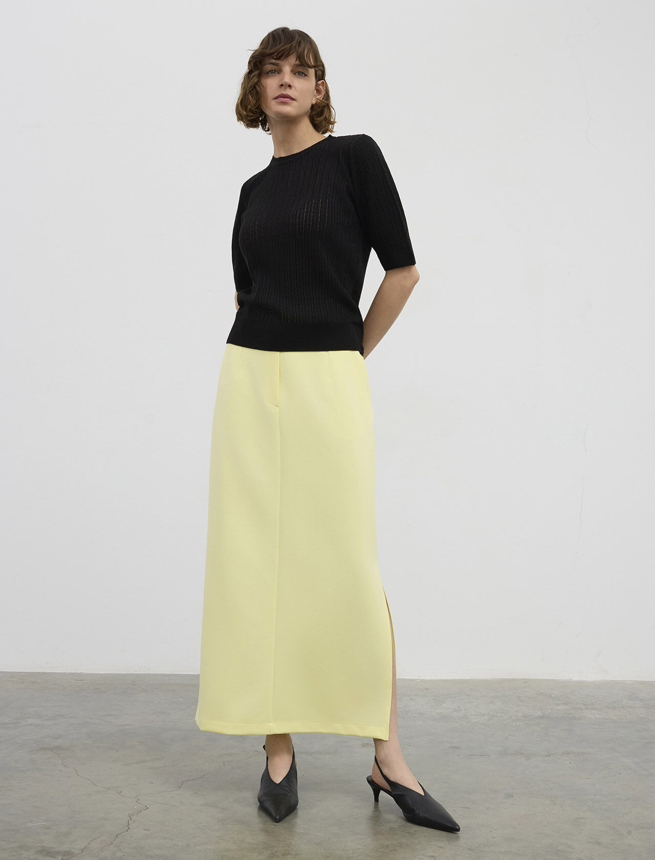BİSİKLET YAKA ÖRGÜ DESENLİ KISA KOLLU KAZAK
