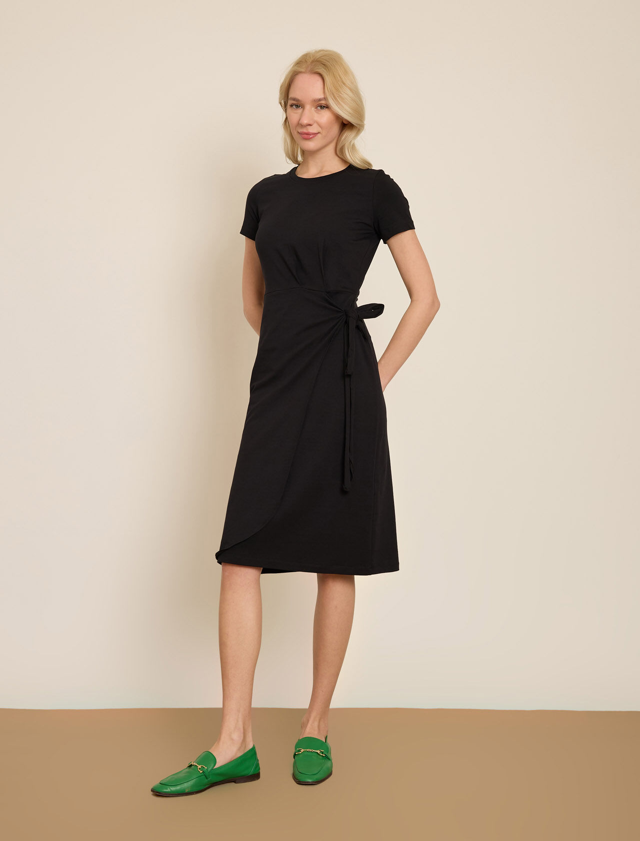 BUZGU DETAYLI PAMUK KARISIM KISA ELBISE