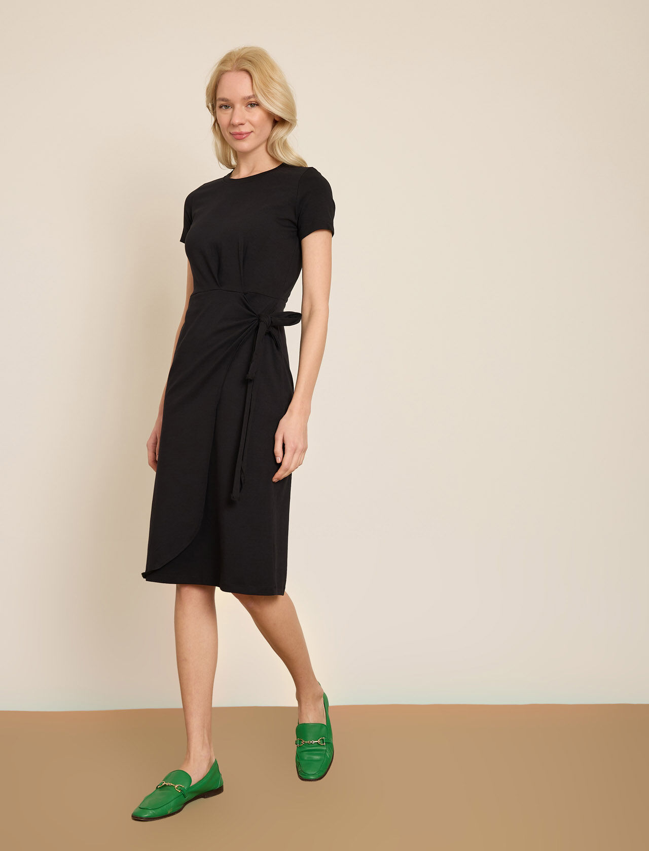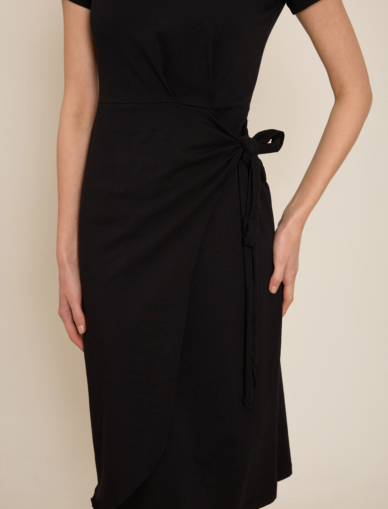 BISIKLET YAKA YARIM KOLLU MIDI PAMUKLU ELBISE