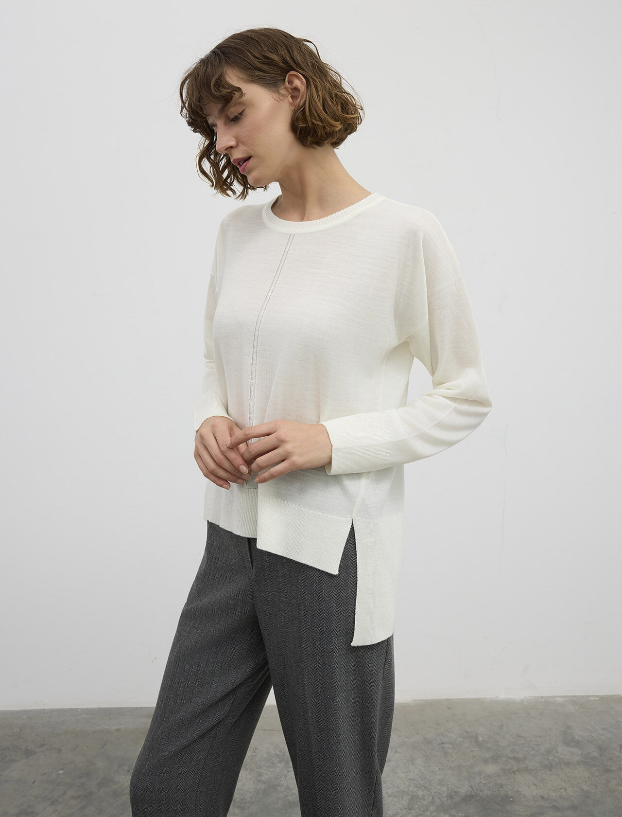 BİSİKLET YAKA YIRTMAÇ DETAYLI OVERSIZE KAZAK