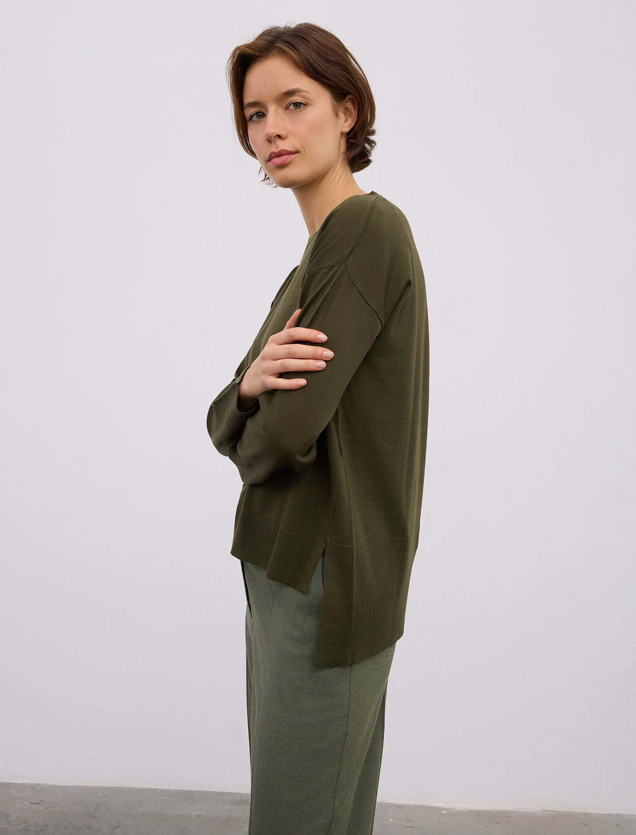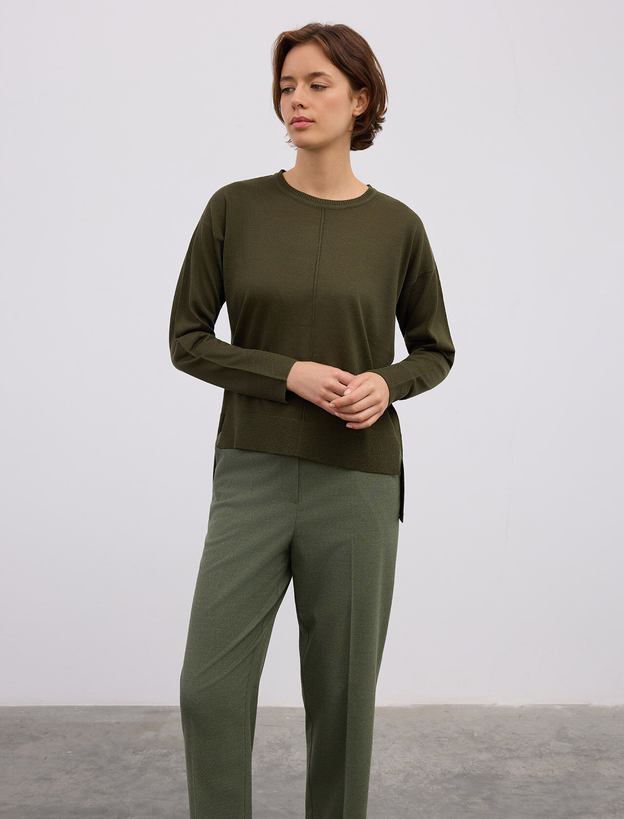 BİSİKLET YAKA YIRTMAÇ DETAYLI OVERSIZE KAZAK