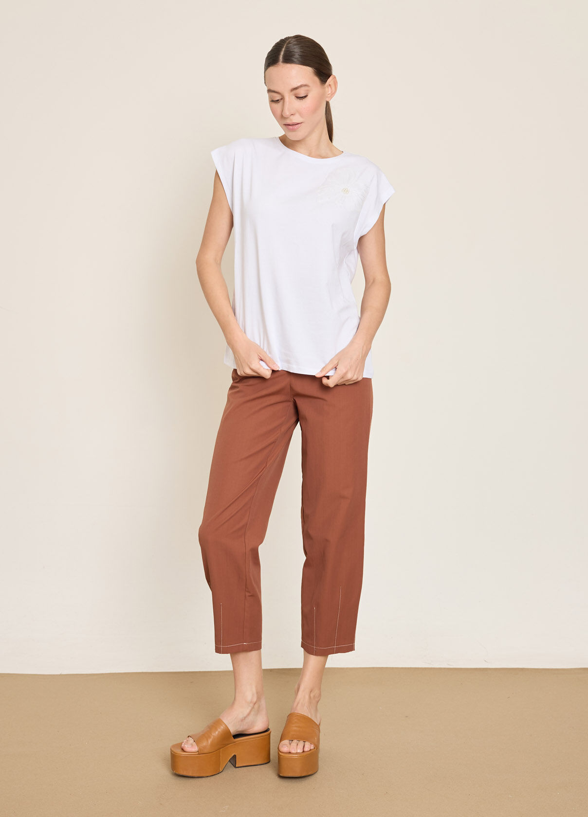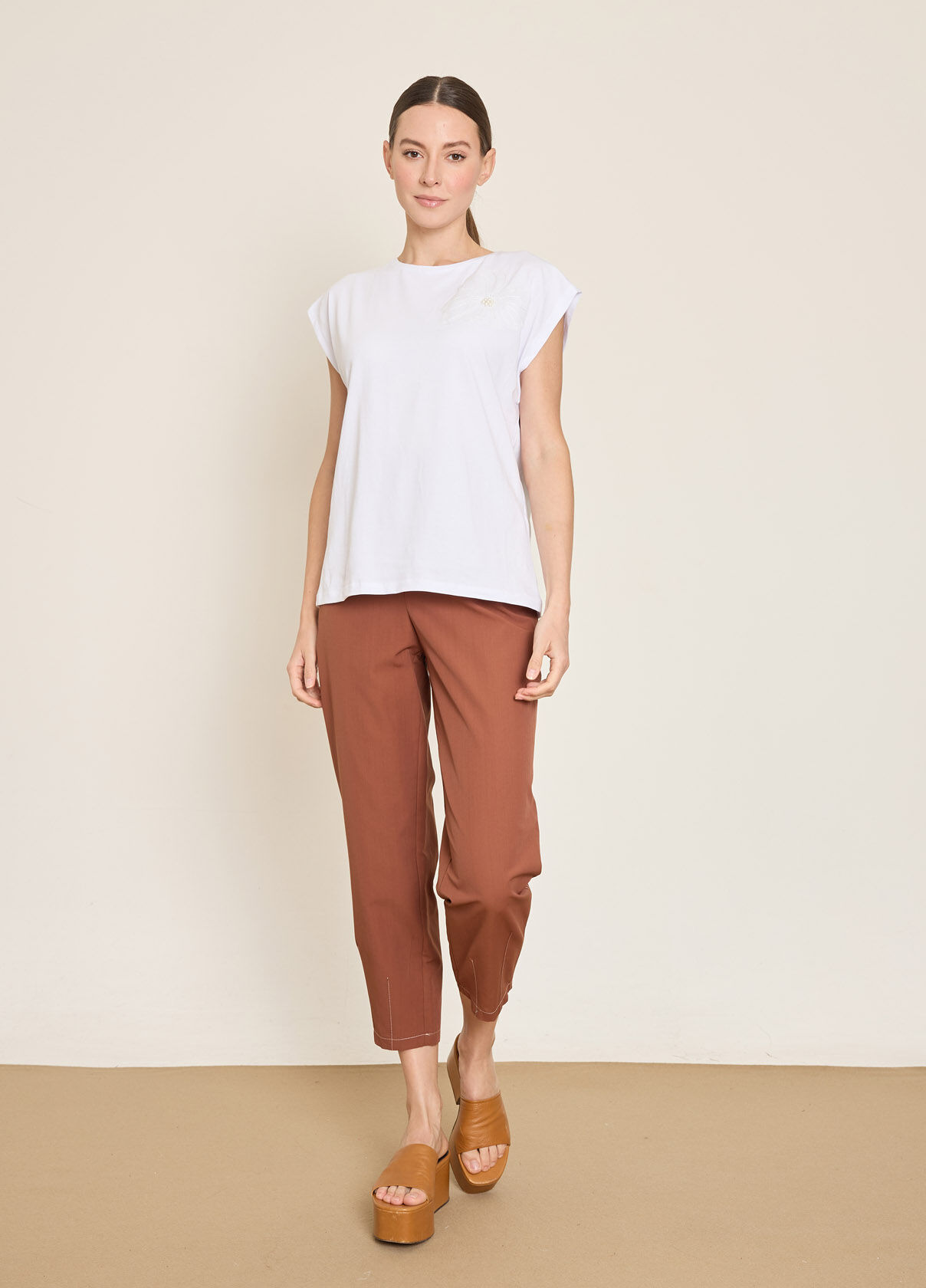 VOLUMLU KONTRAST CICEK APLIKELI PAMUKLU T-SHIRT