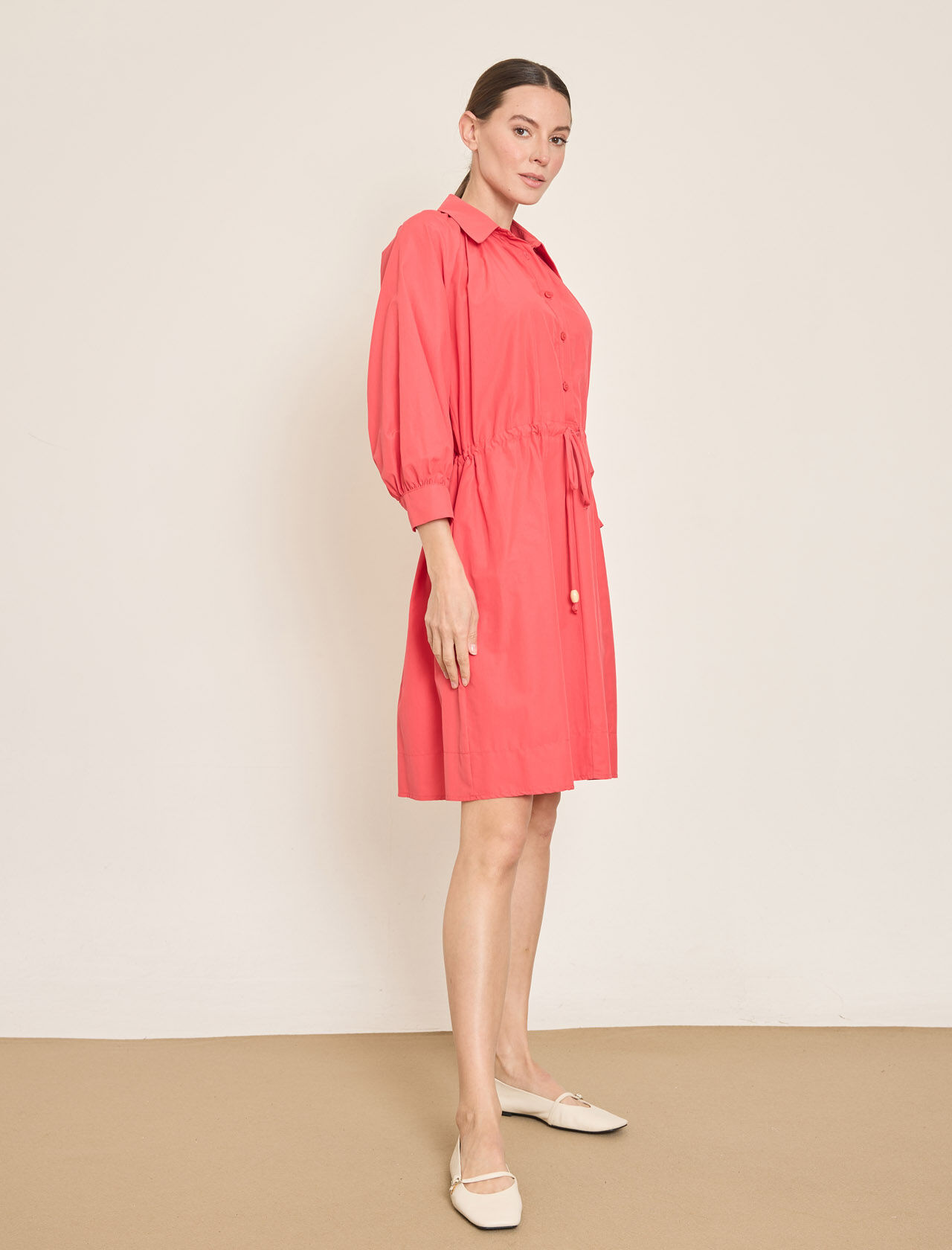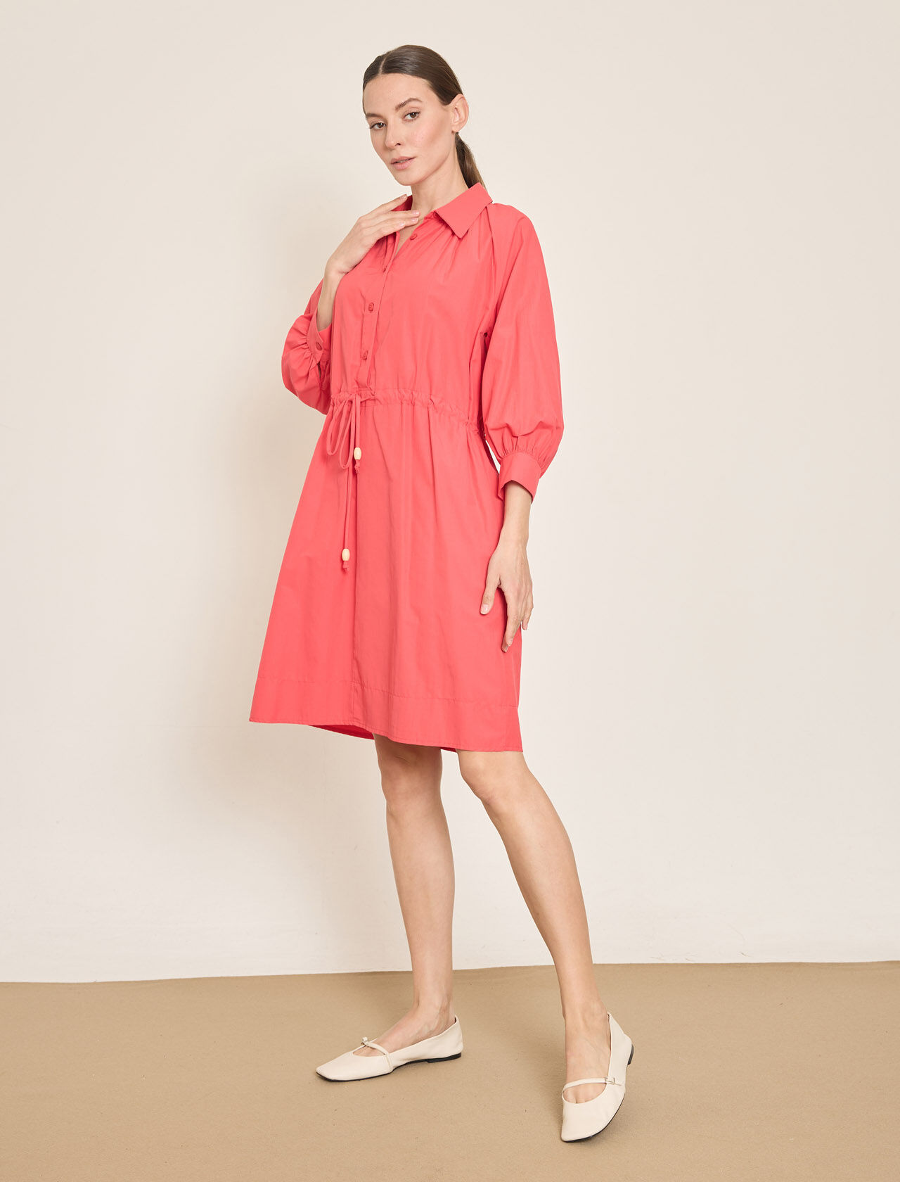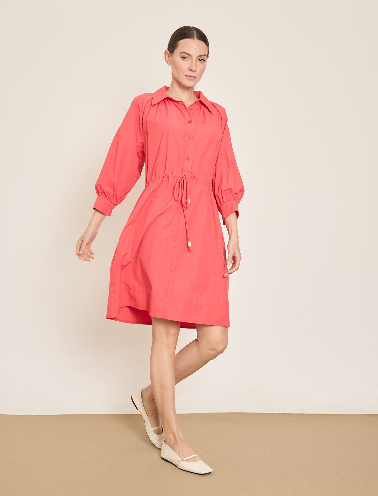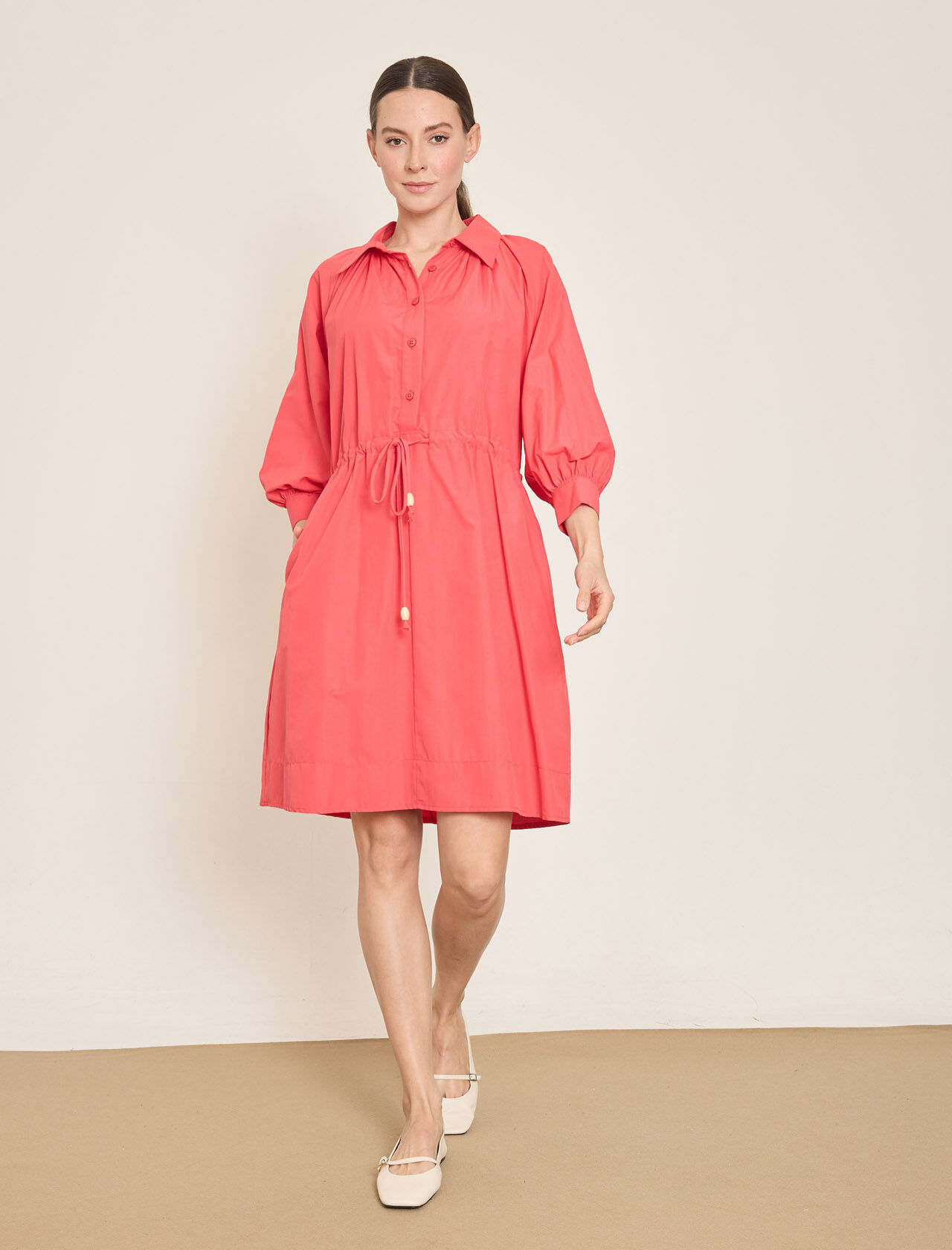 PAMUK KARISIM MIDI GOMLEK-ELBISE
