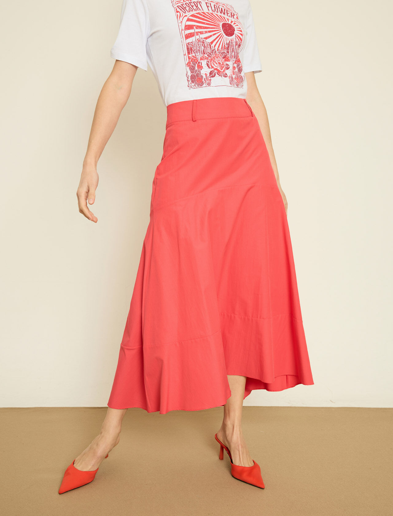 CEP DETAYLI KEMERLI PAMUK KARISIM MIDI VOLAN ETEK