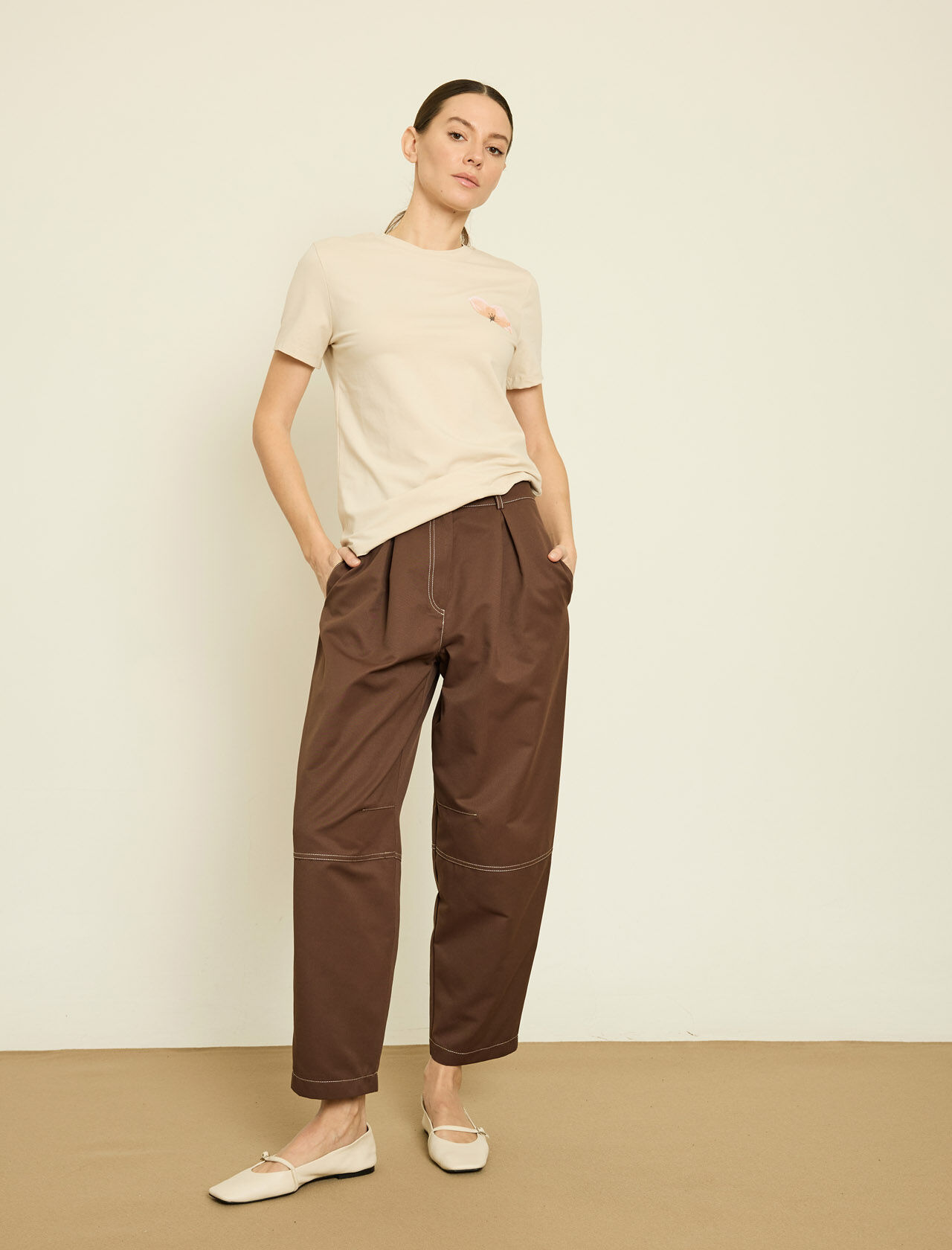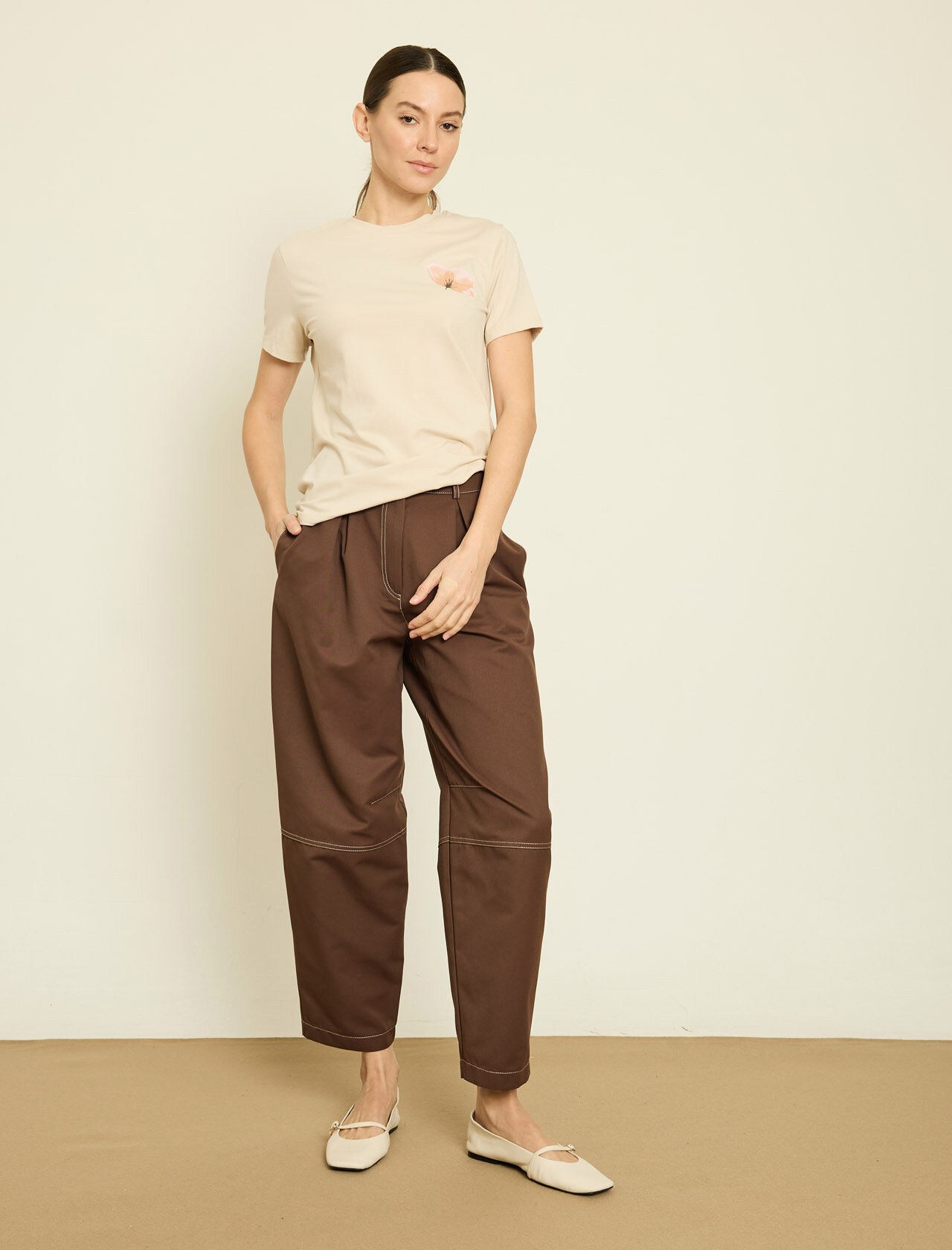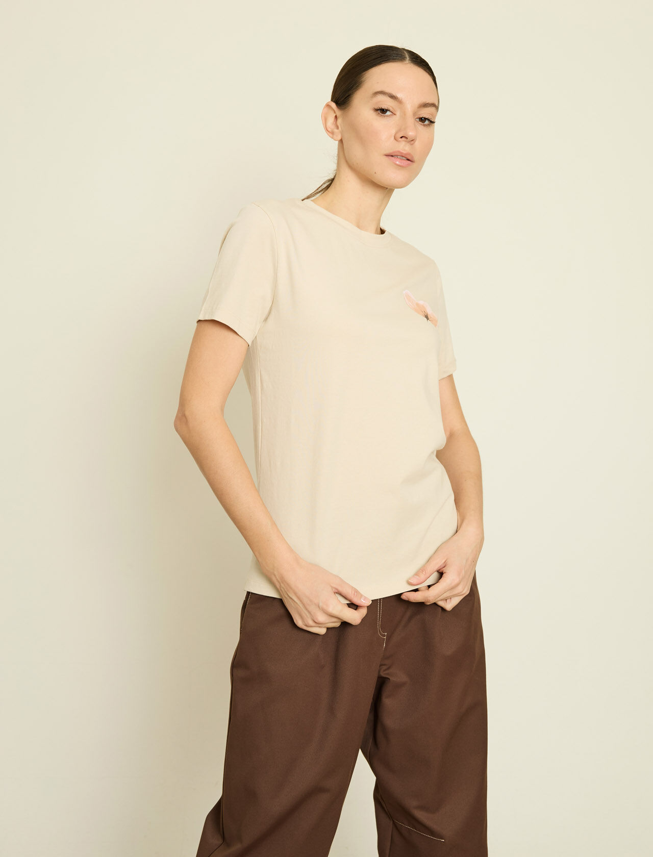 VOLUMLU KONTRAST CICEK APLIKELI PAMUKLU T-SHIRT