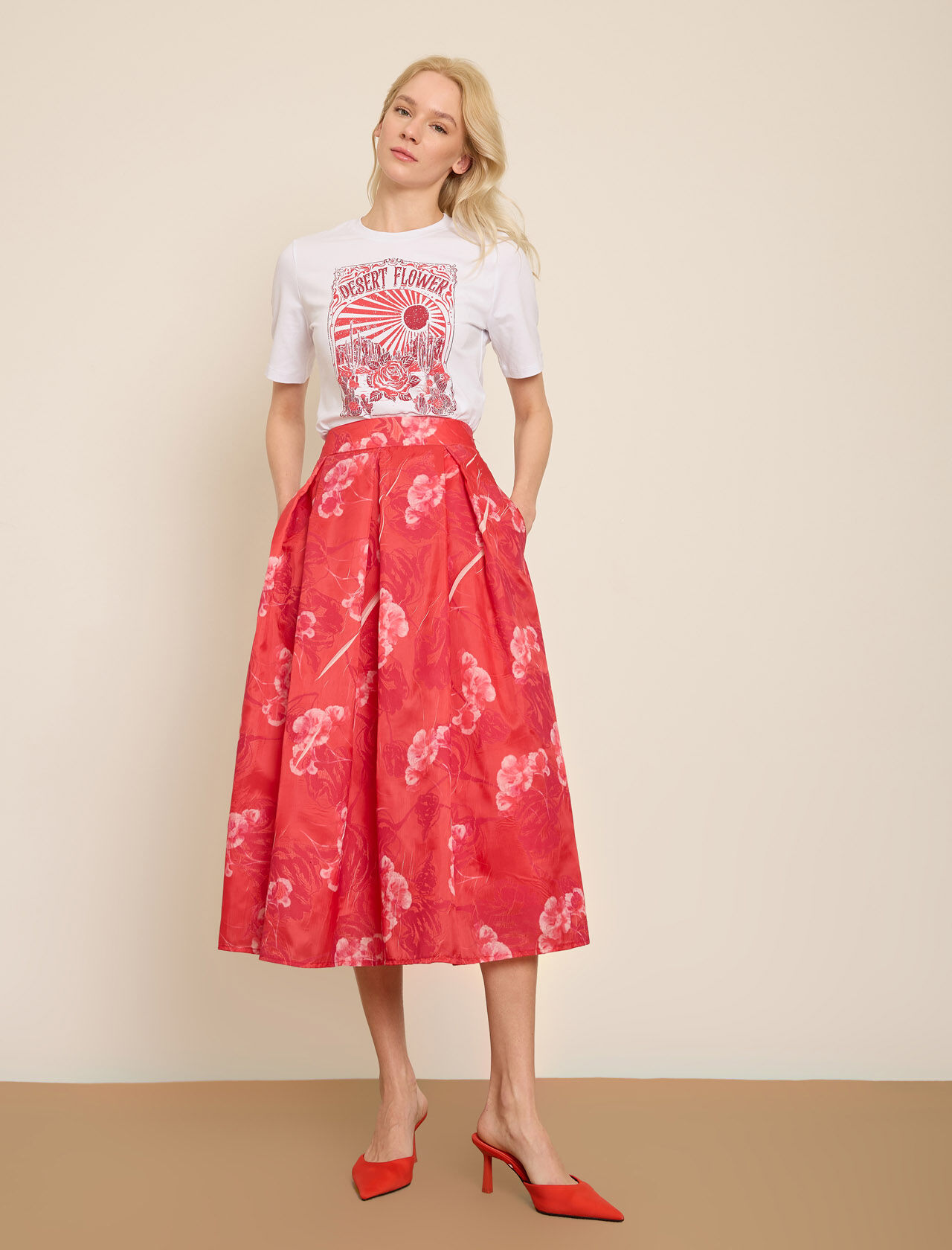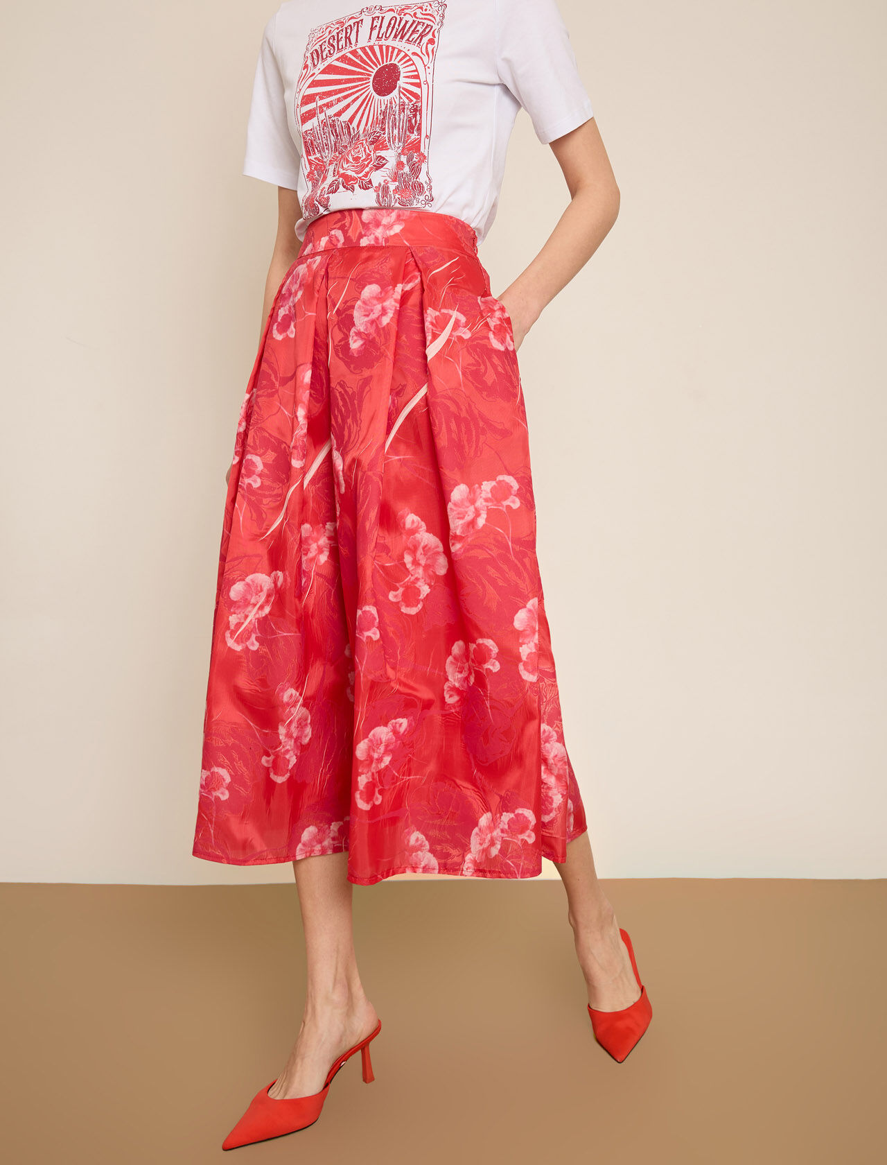 KAZAYAGI DESENLI DERI GARNILI YIRTMACLI MIDI ETEK