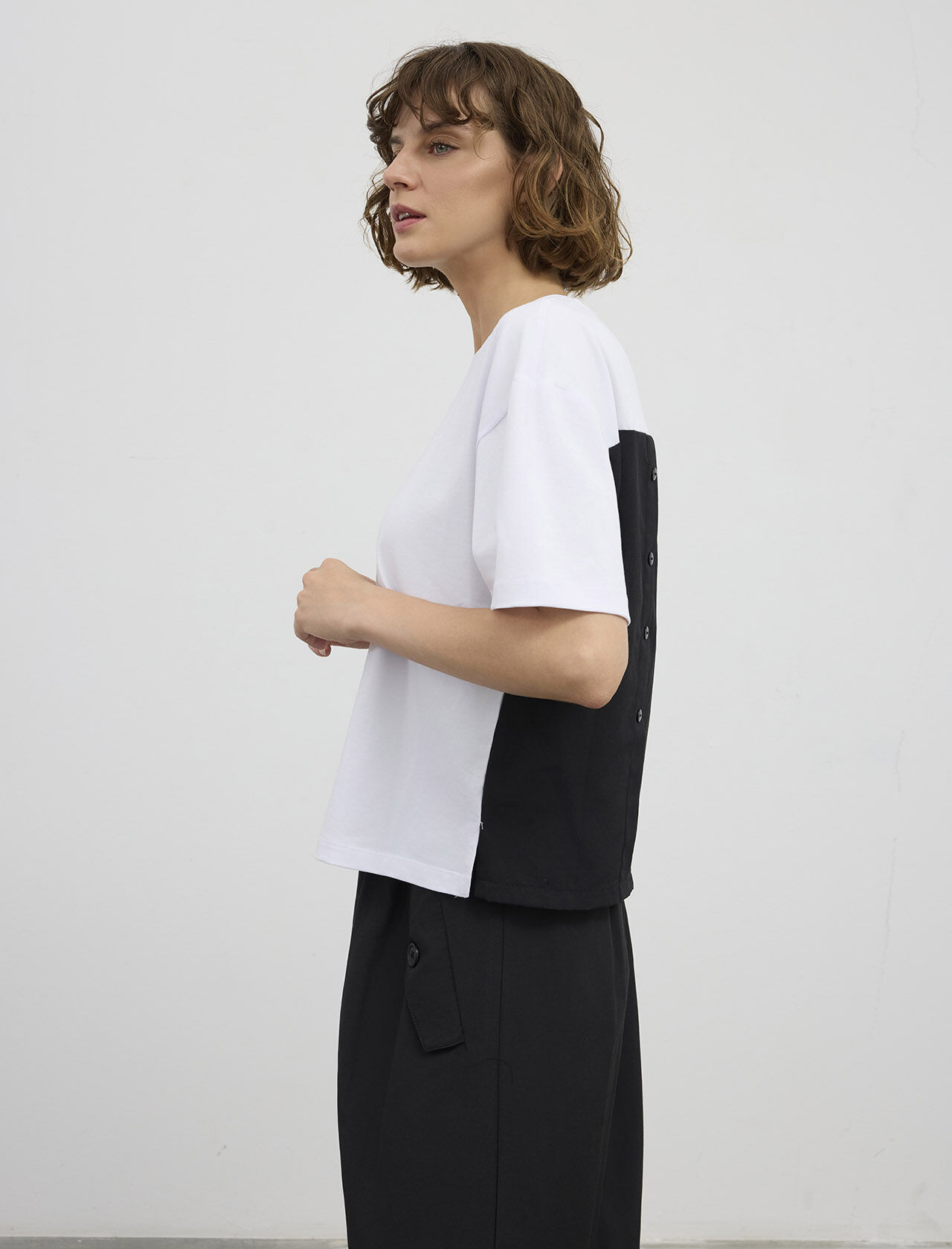 ÇİÇEK NAKIŞLI ARKASI POPLİN KUMAŞ DÜĞMELİ TSHİRT