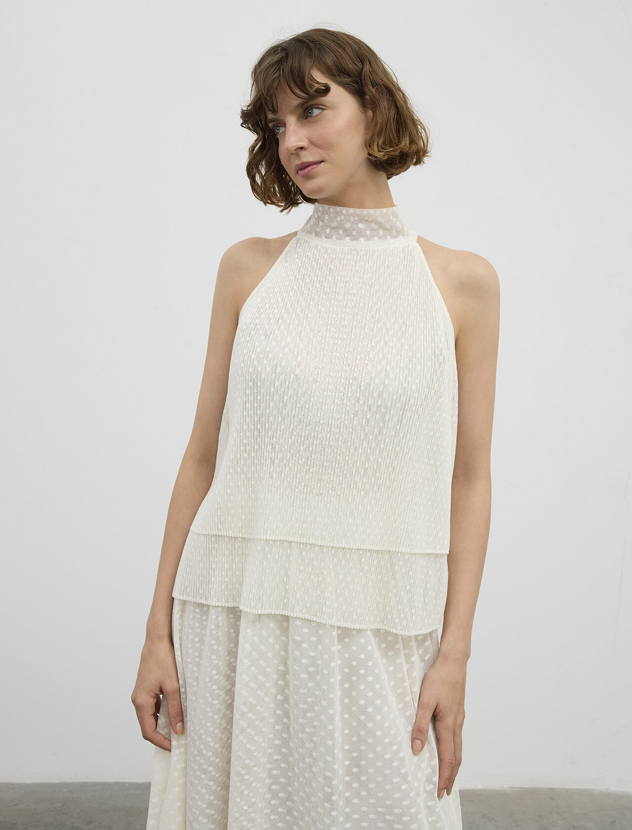 Önde Yırtmaç Detaylı Kolsuz Pamuk Bluz