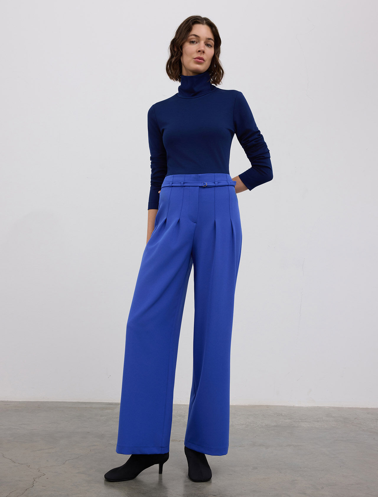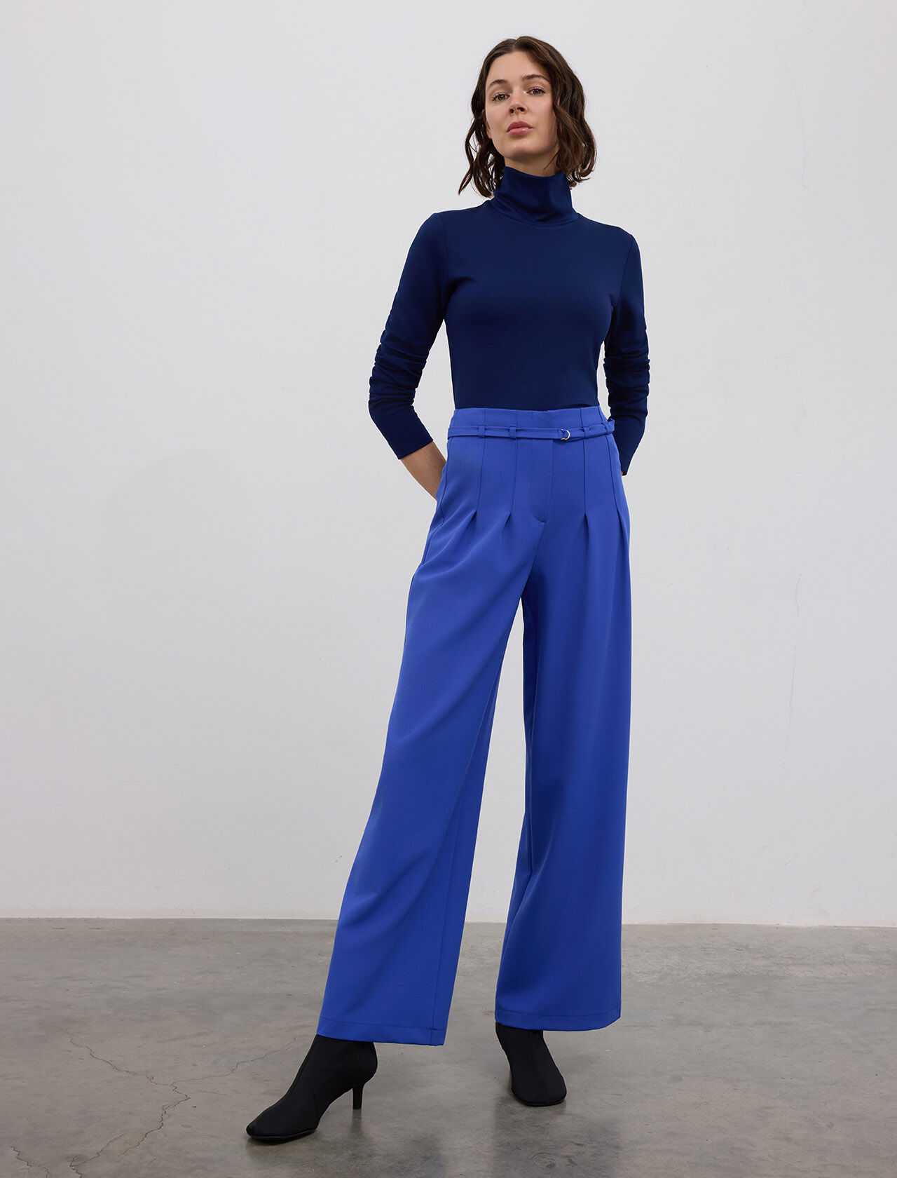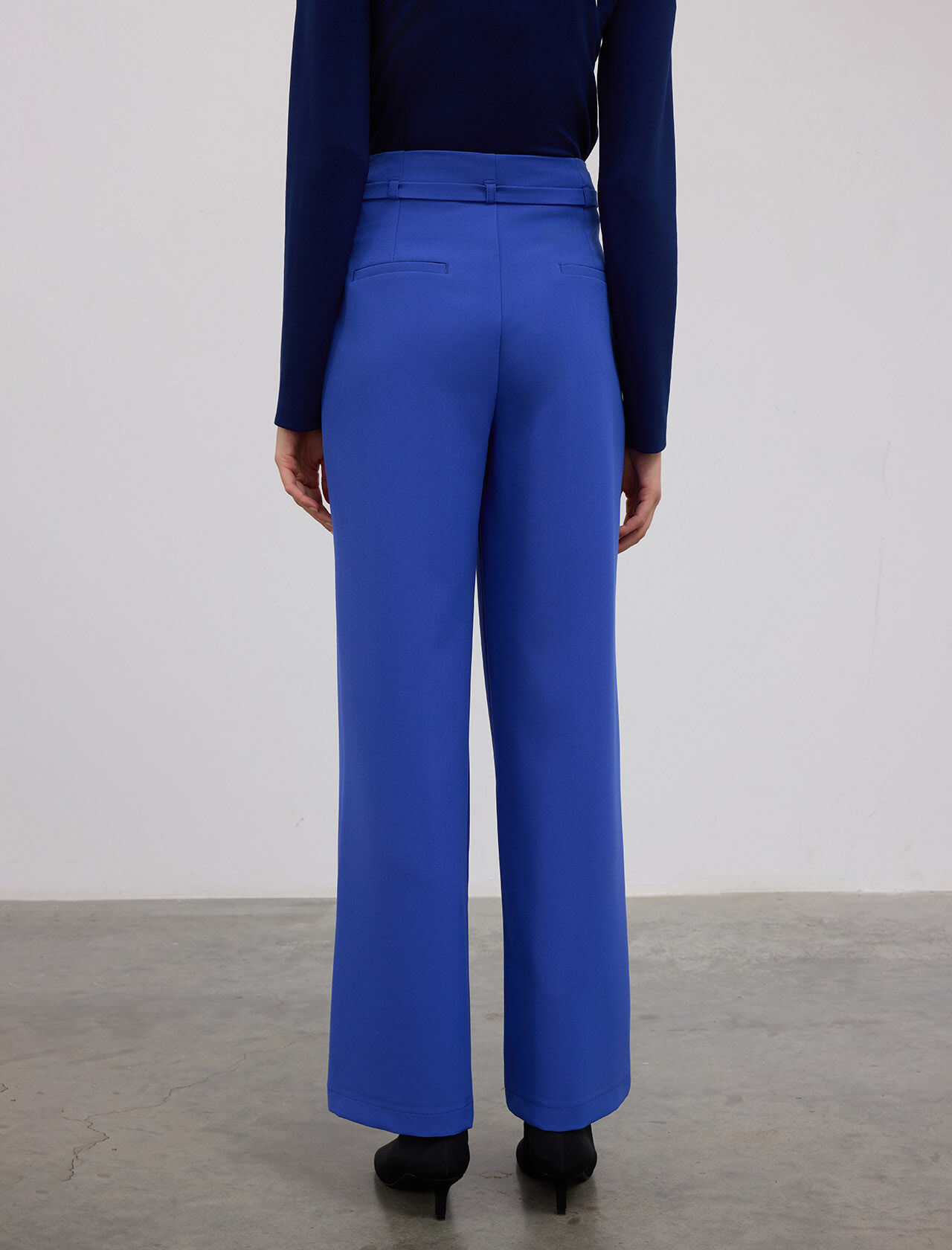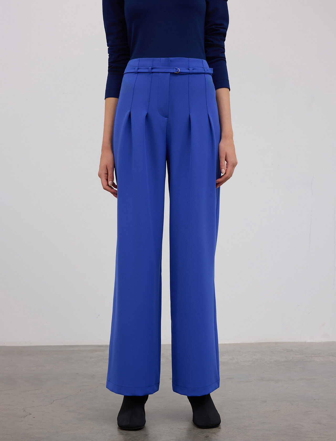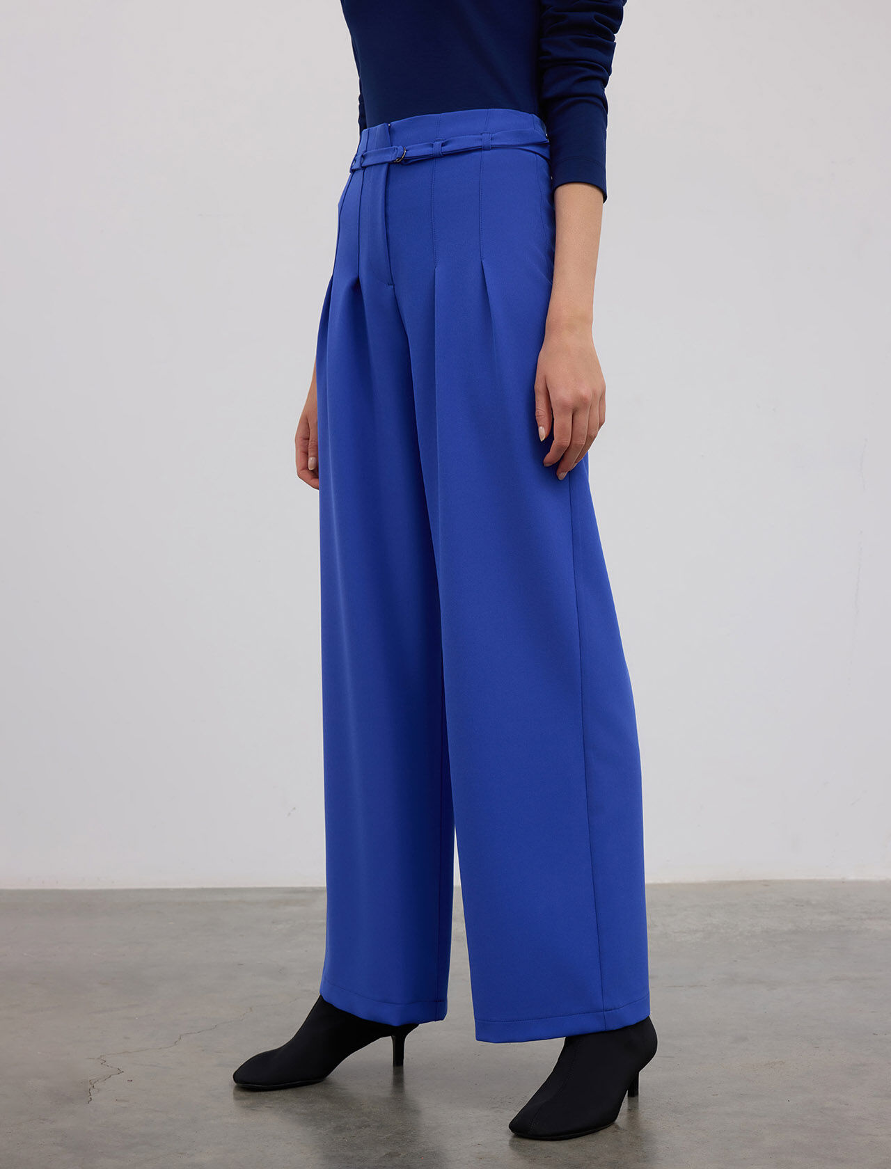 Arkası Lastikli Pileli Geniş Paça Pantolon