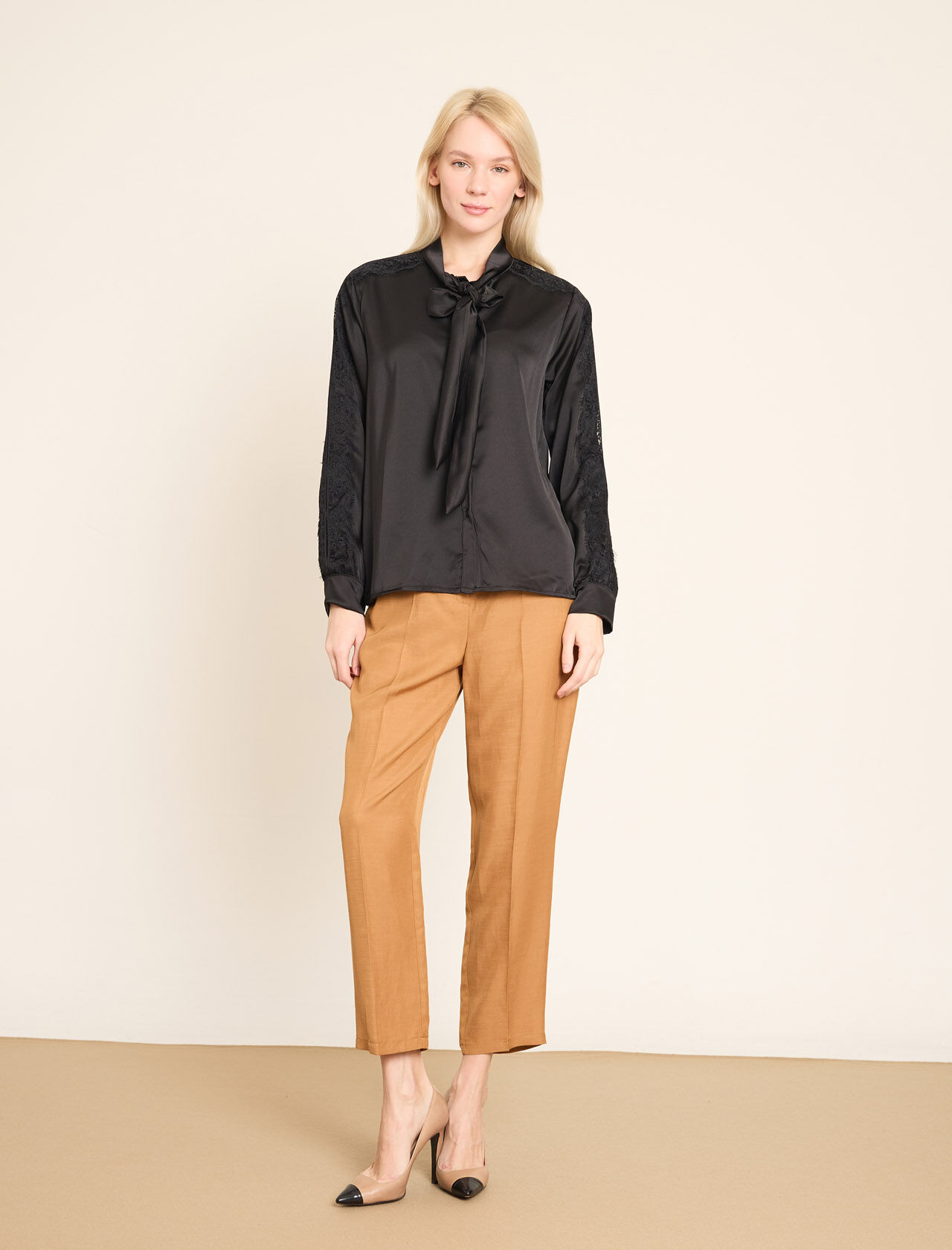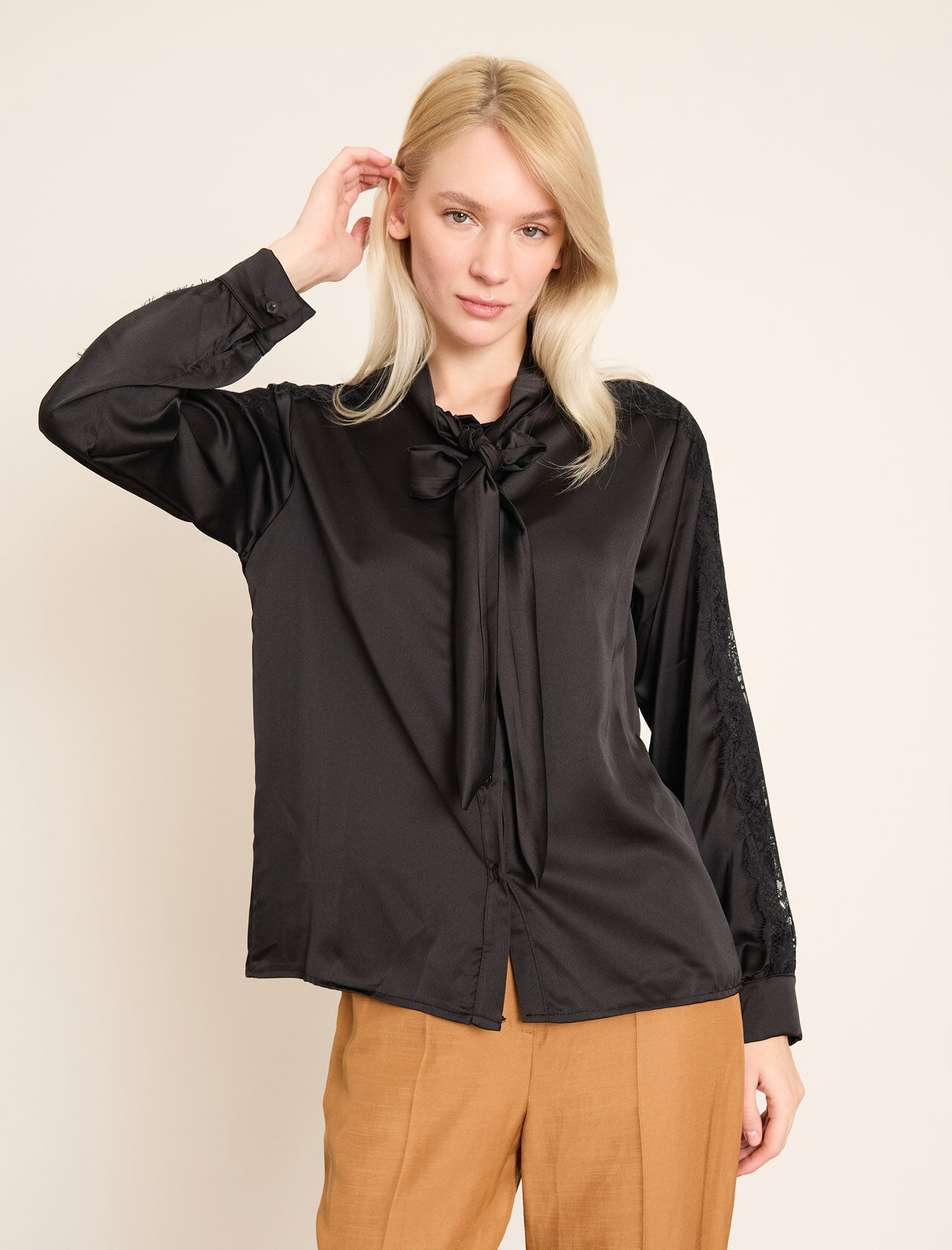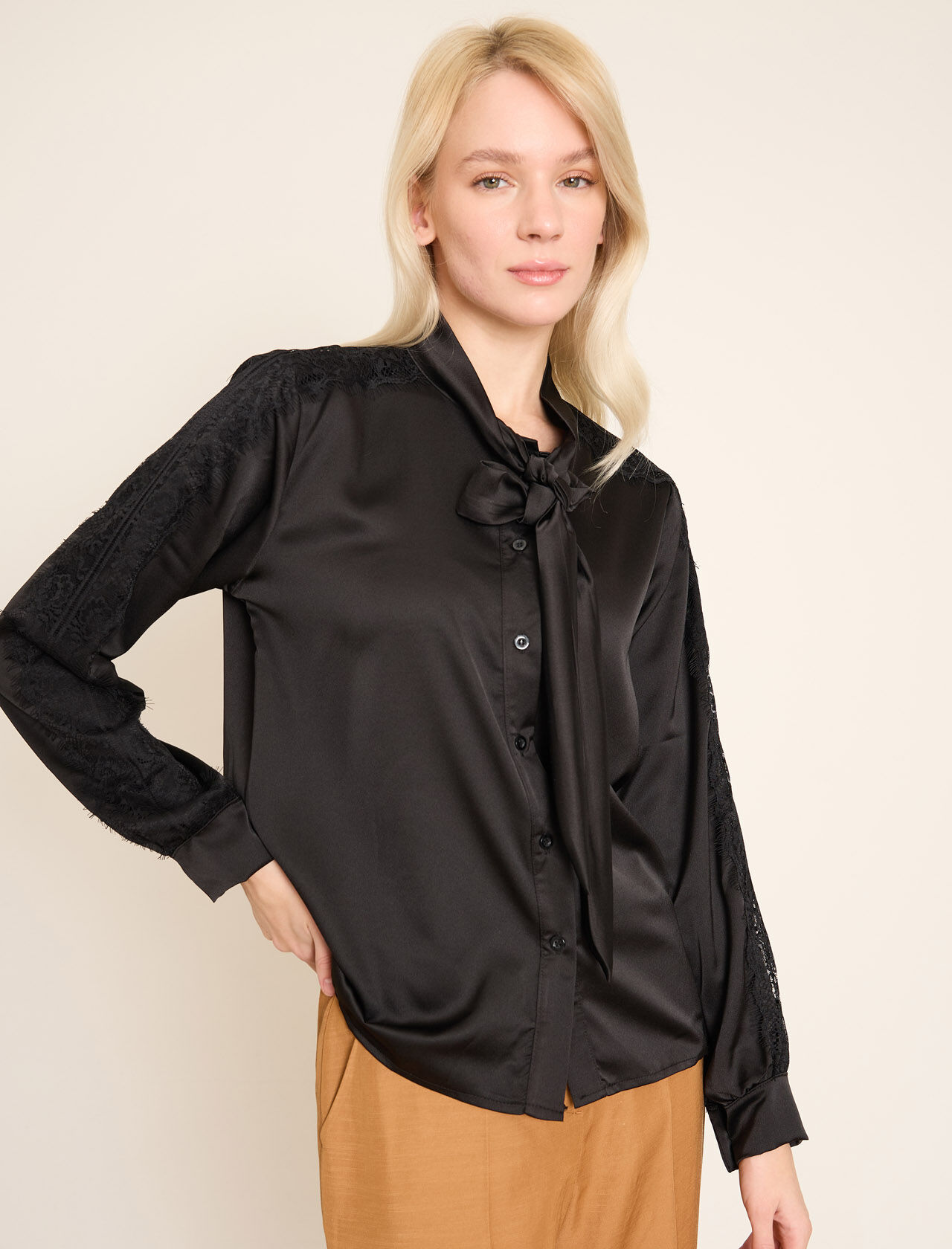 Dantel Detaylı Kollara ve Önden Bağlamalı Gömlek