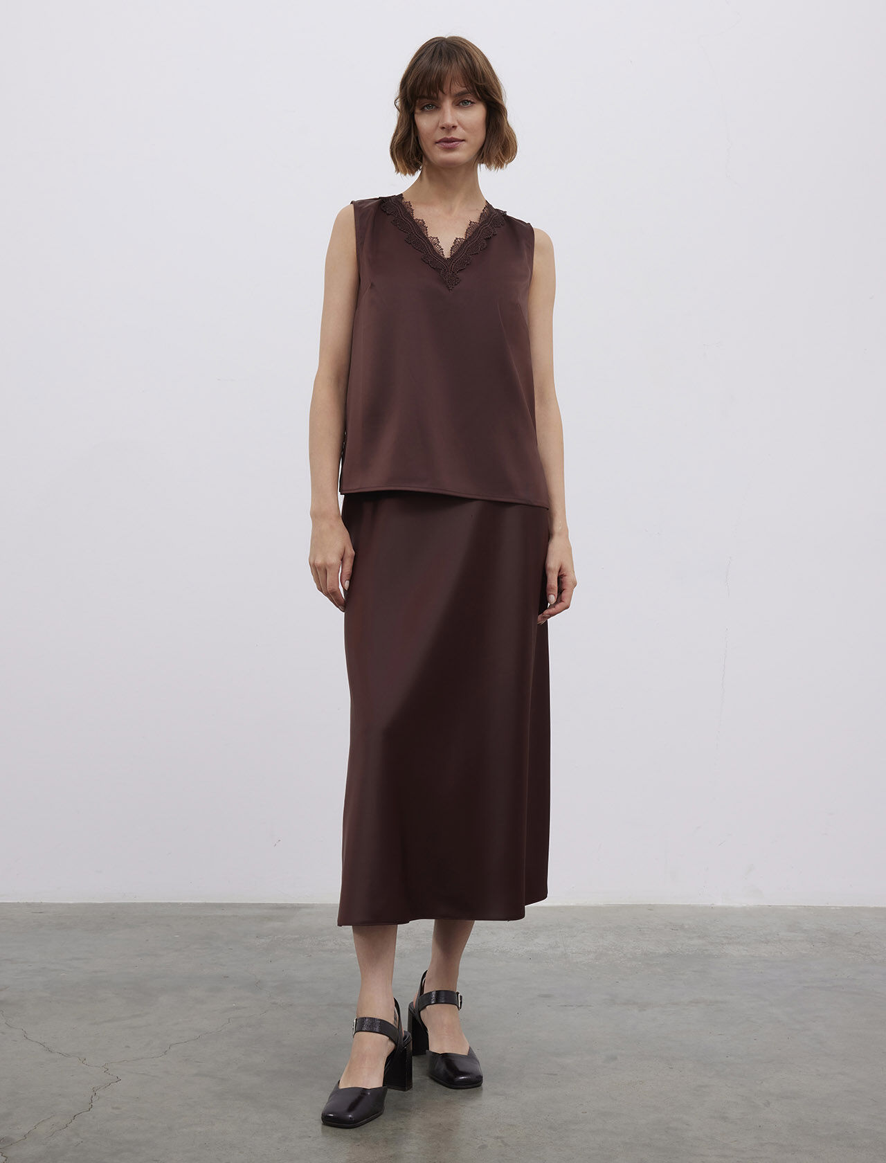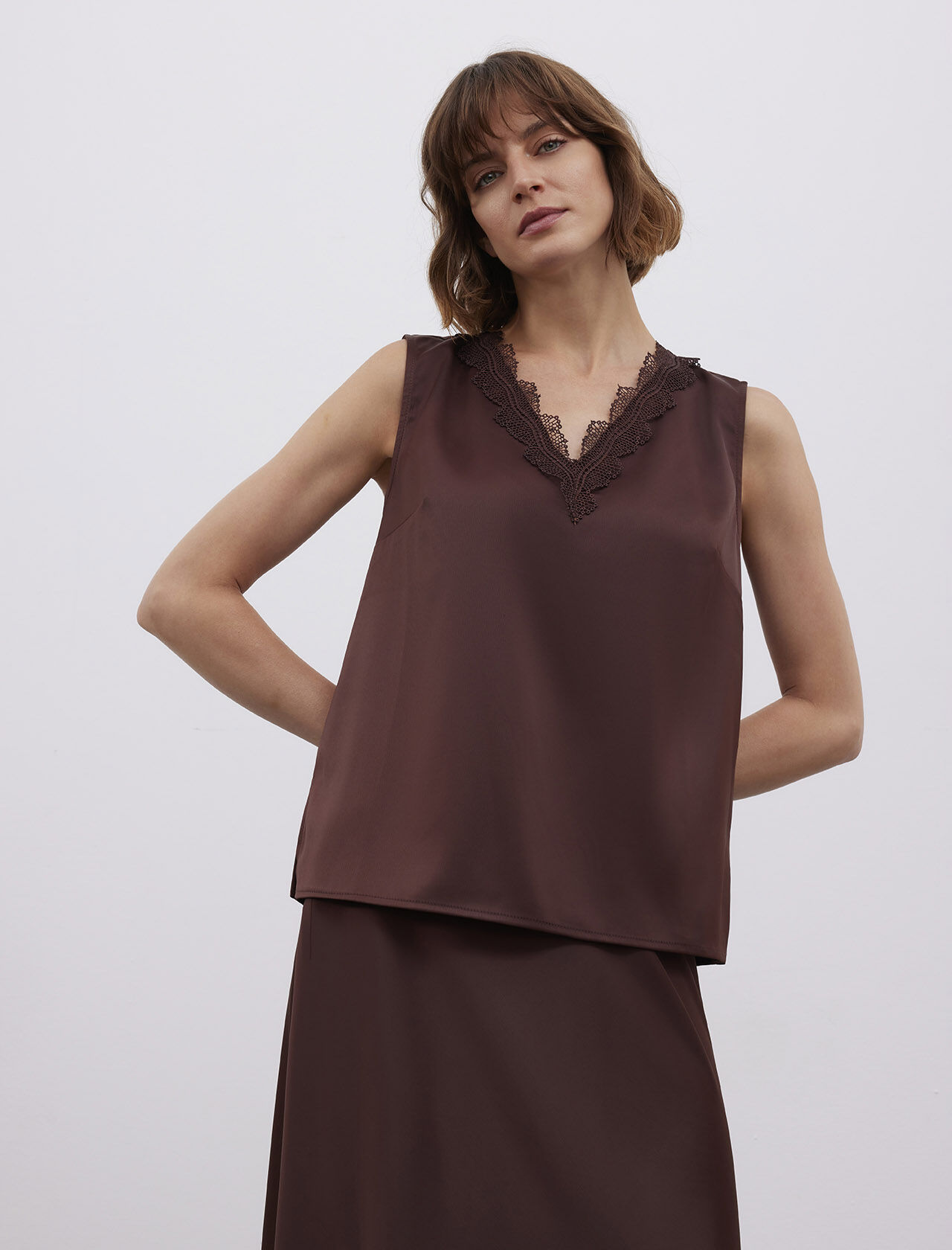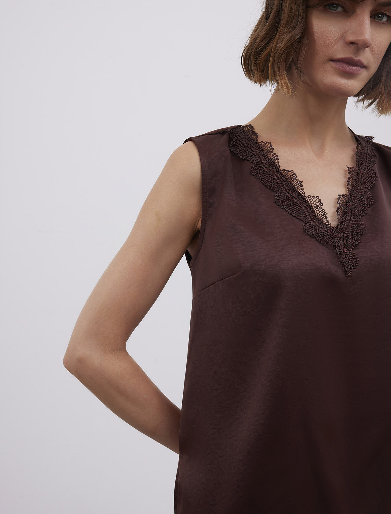 Dantel Detaylı Askılı Saten Atlet