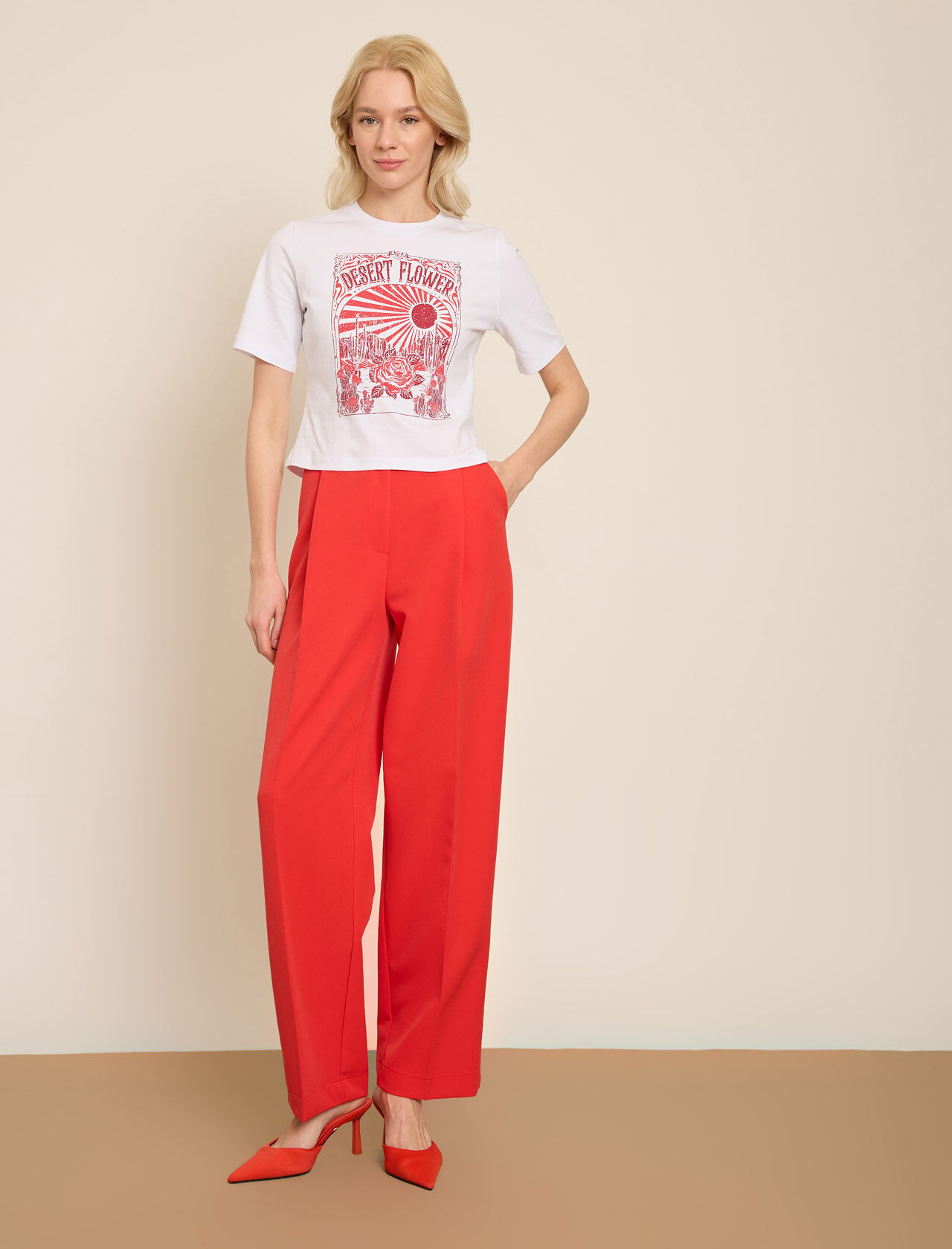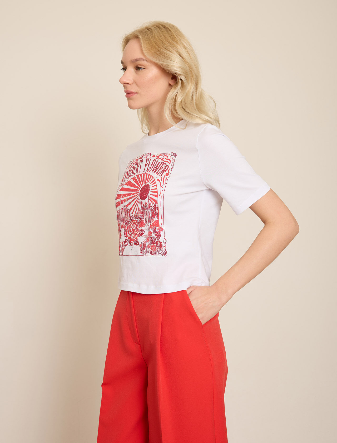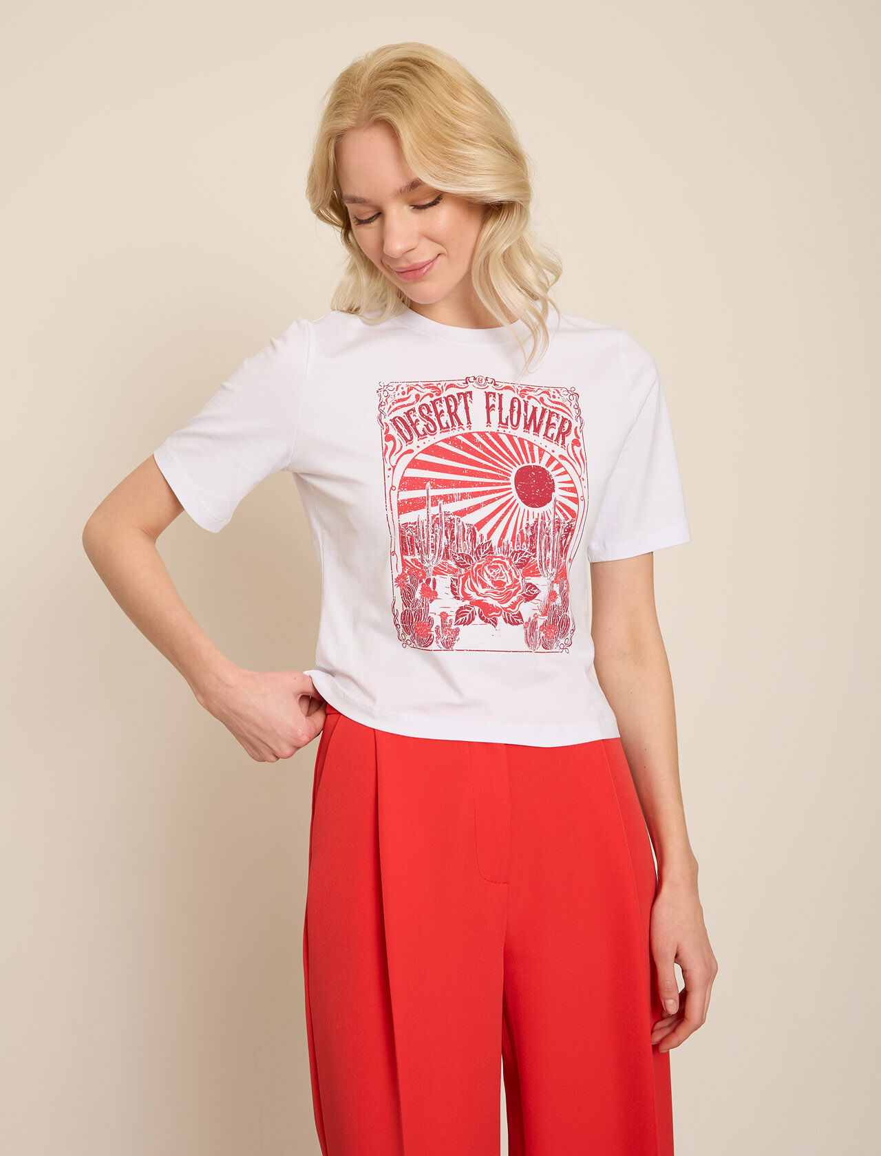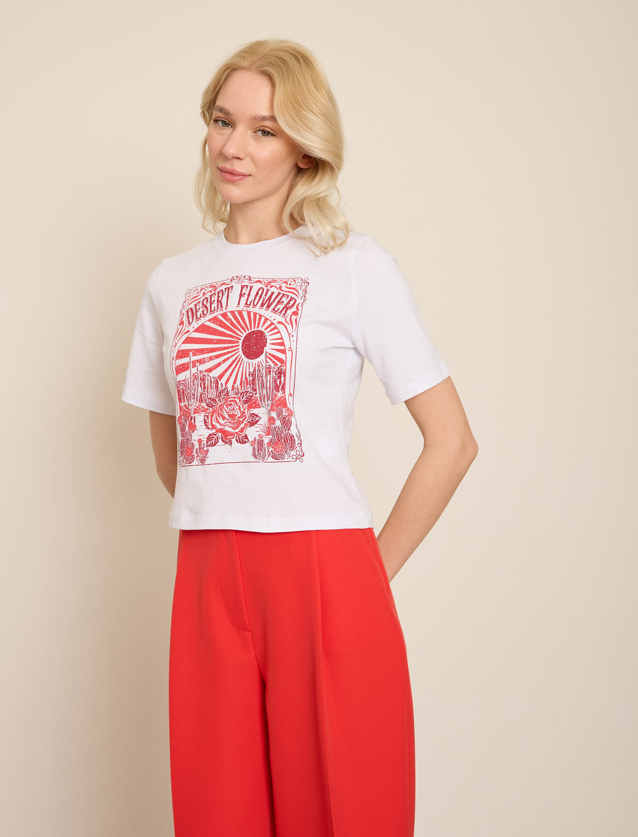 KONTRAST CICEK BASKILI T-SHIRT
