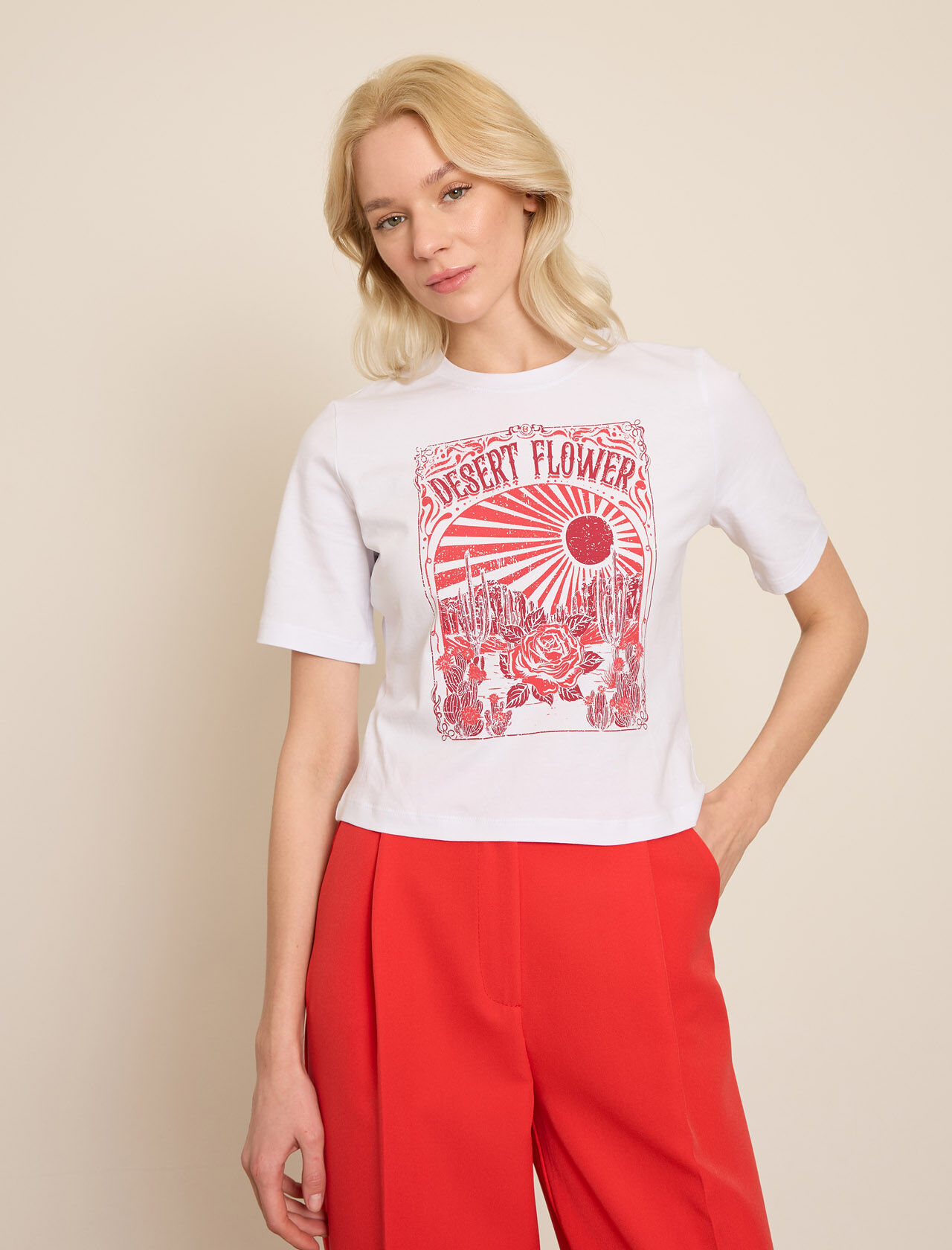 DESERT FLOER BASKILI PAMUKLU T-SHIRT