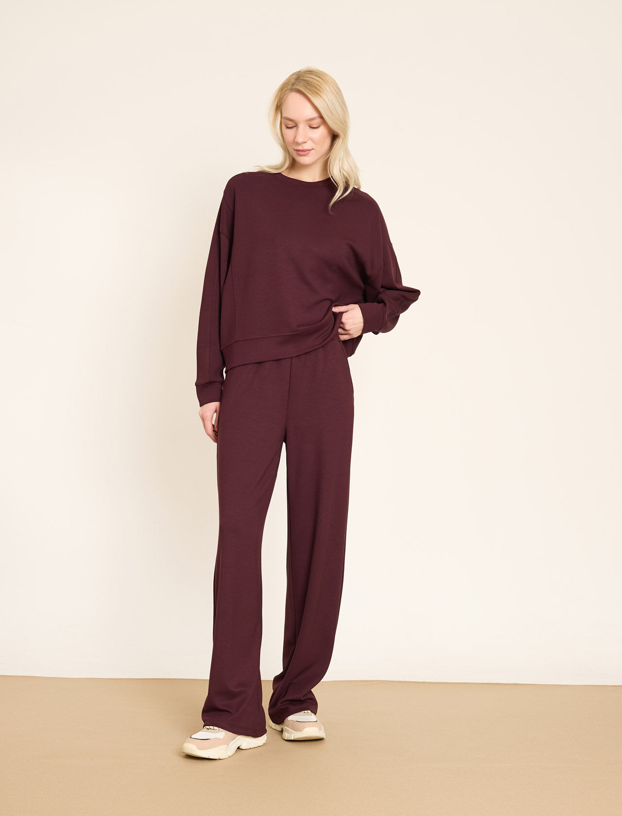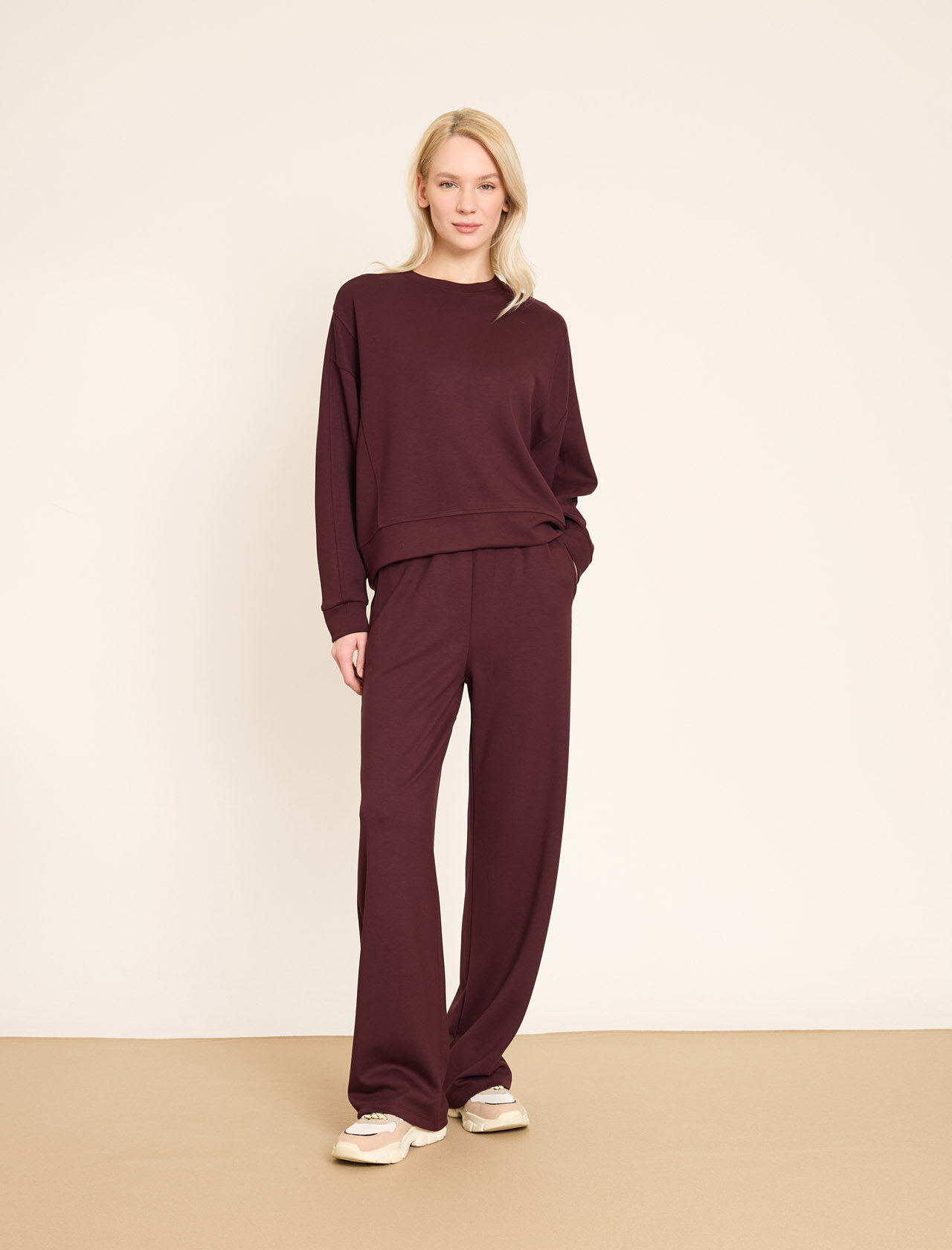 Rahat Kesim Kazak ve Geniş Paça Pantolon Takım