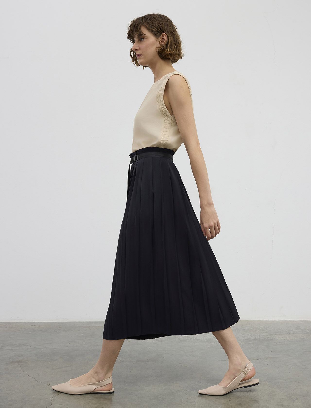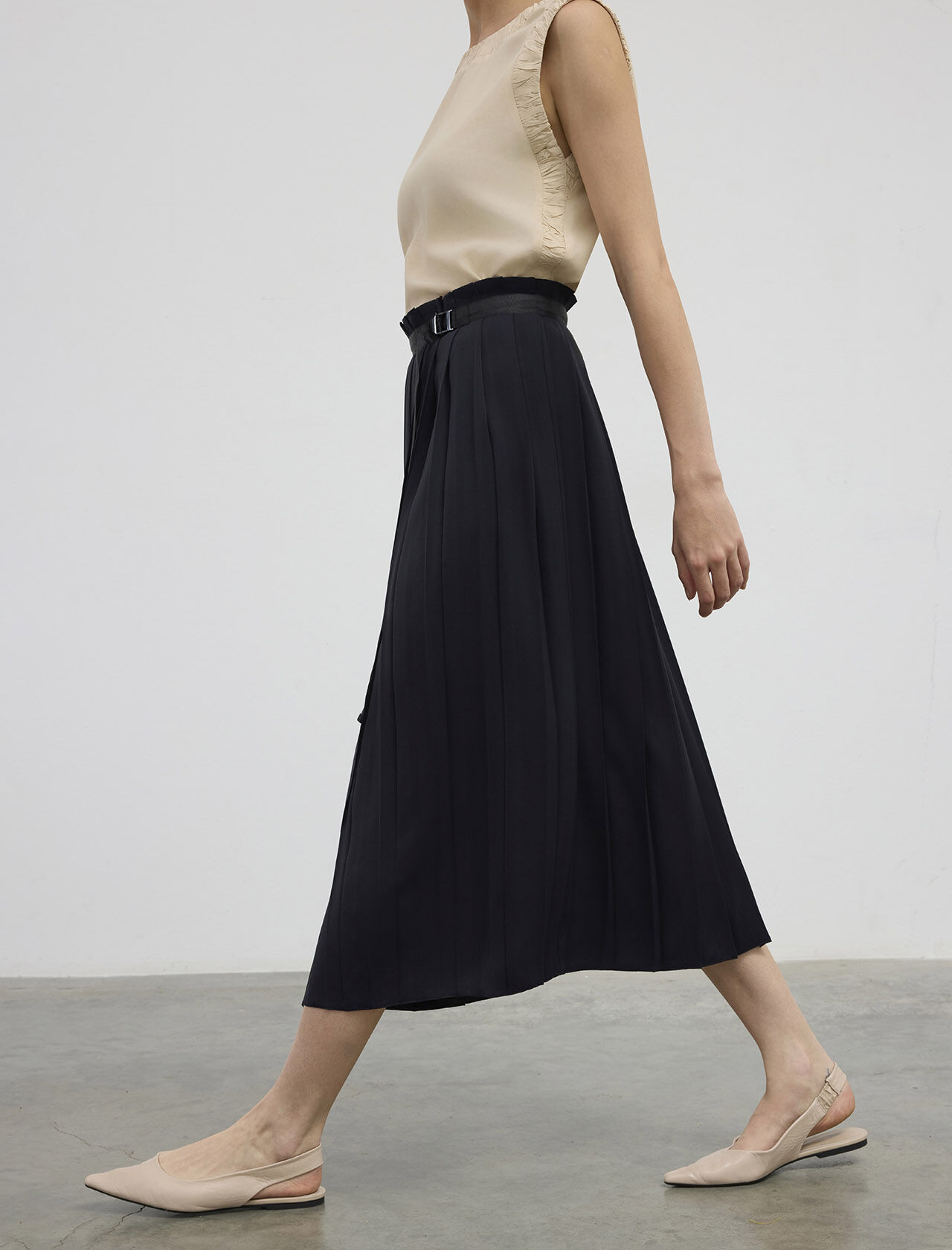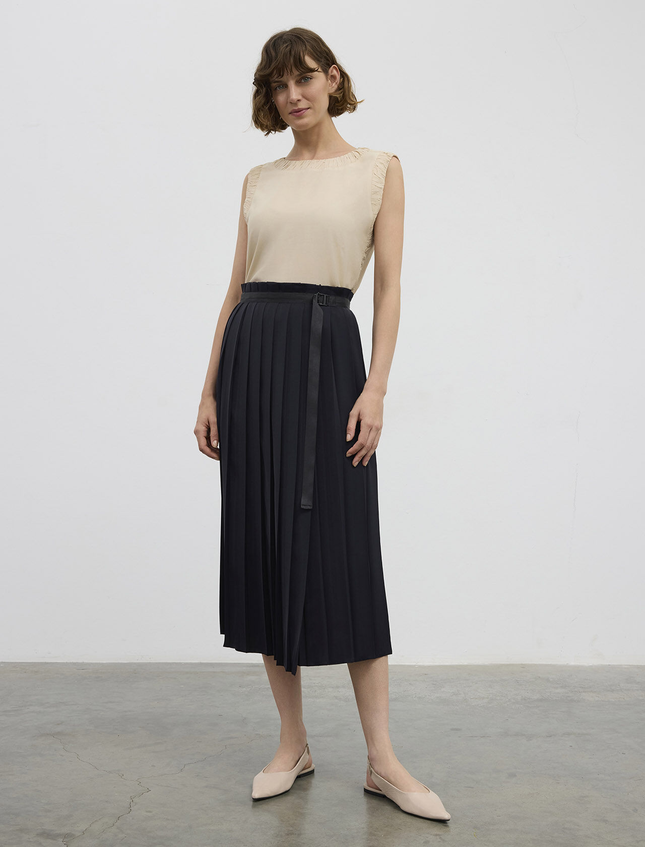 Dikiş Detaylı Midi Boy Pamuk Karışımlı Etek