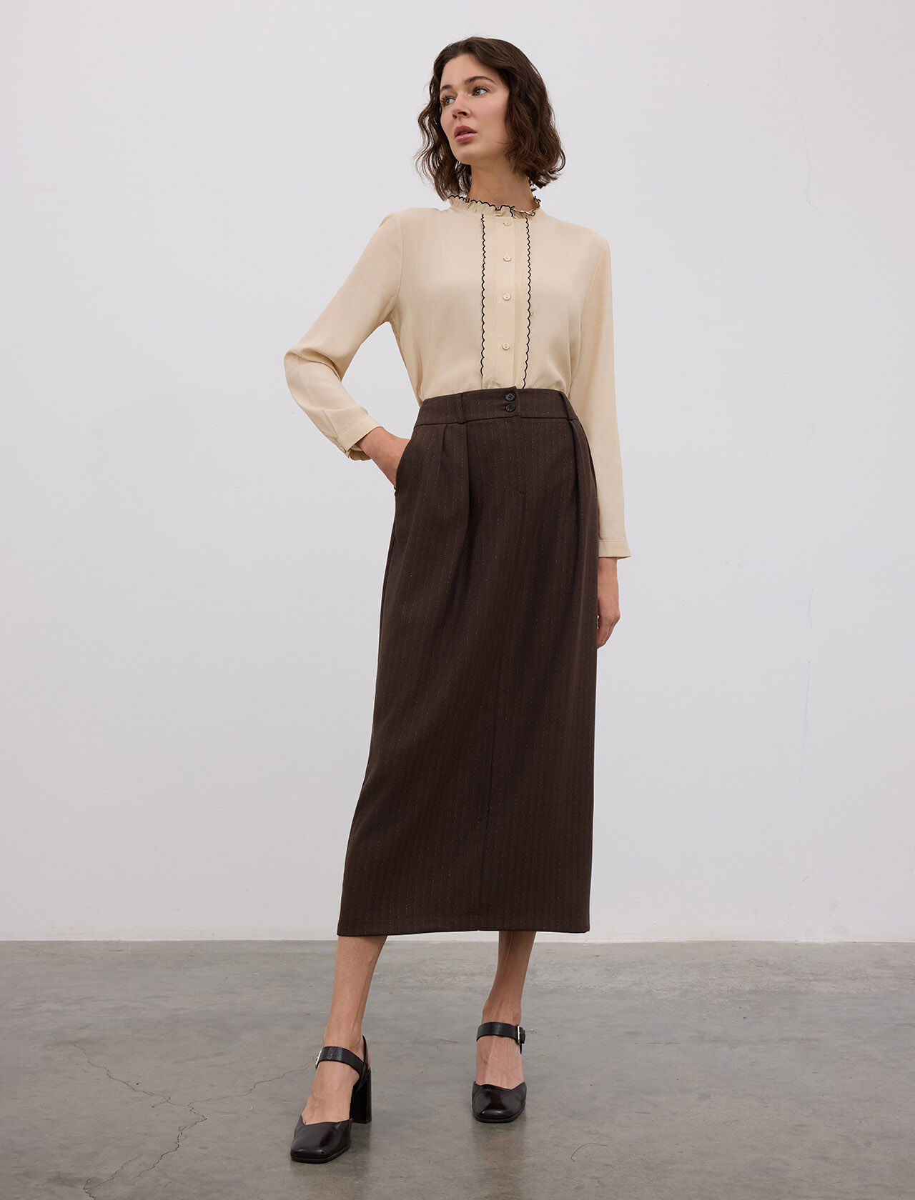 Asimetrik Bağlama Detaylı Viskon Keten Gömlek