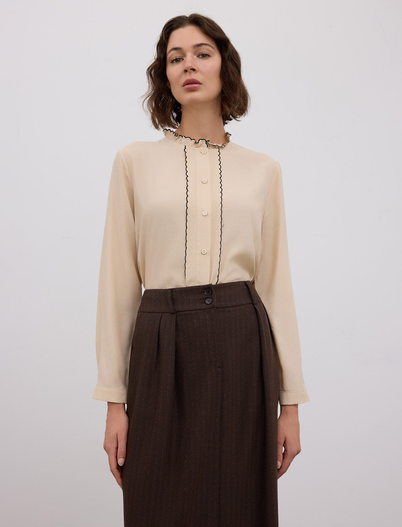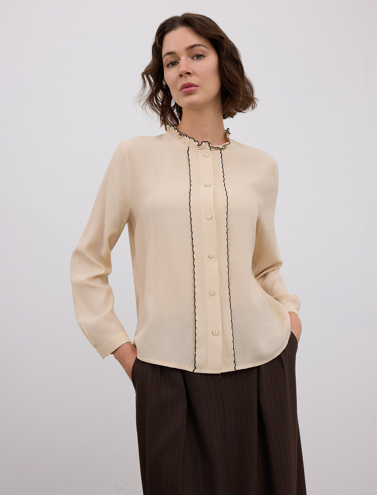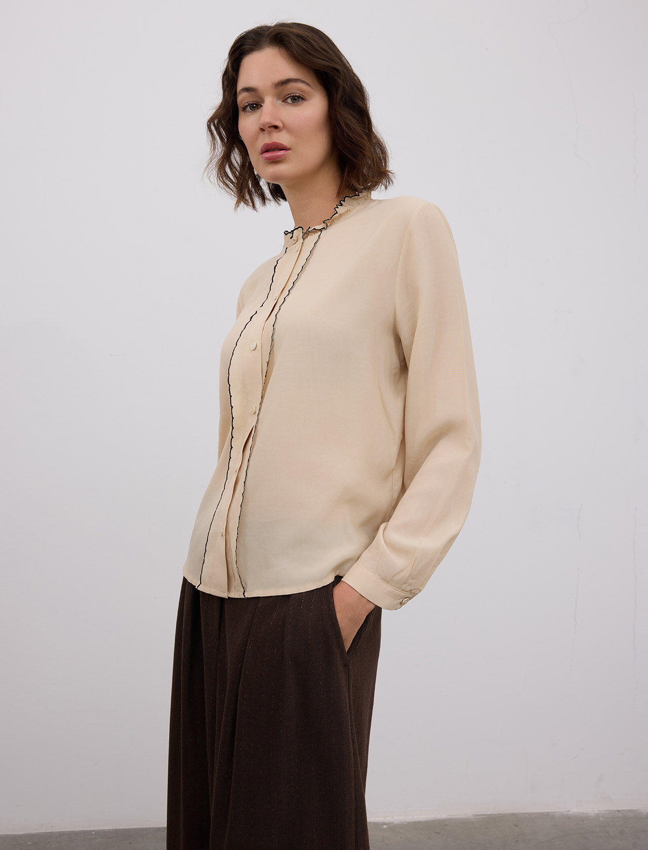 Kruvaze Kapama Kaçık Yaka Pamuk Gömlek