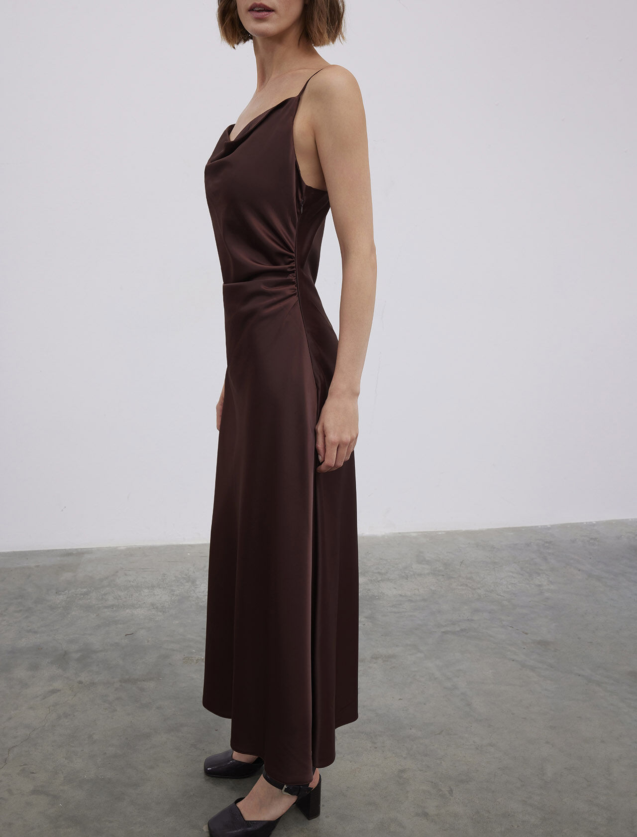 Kontrast Biye Detaylı Midi Boy Pamuk Elbise