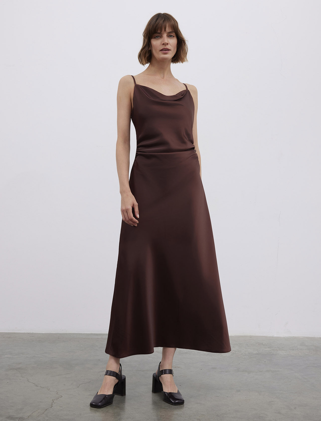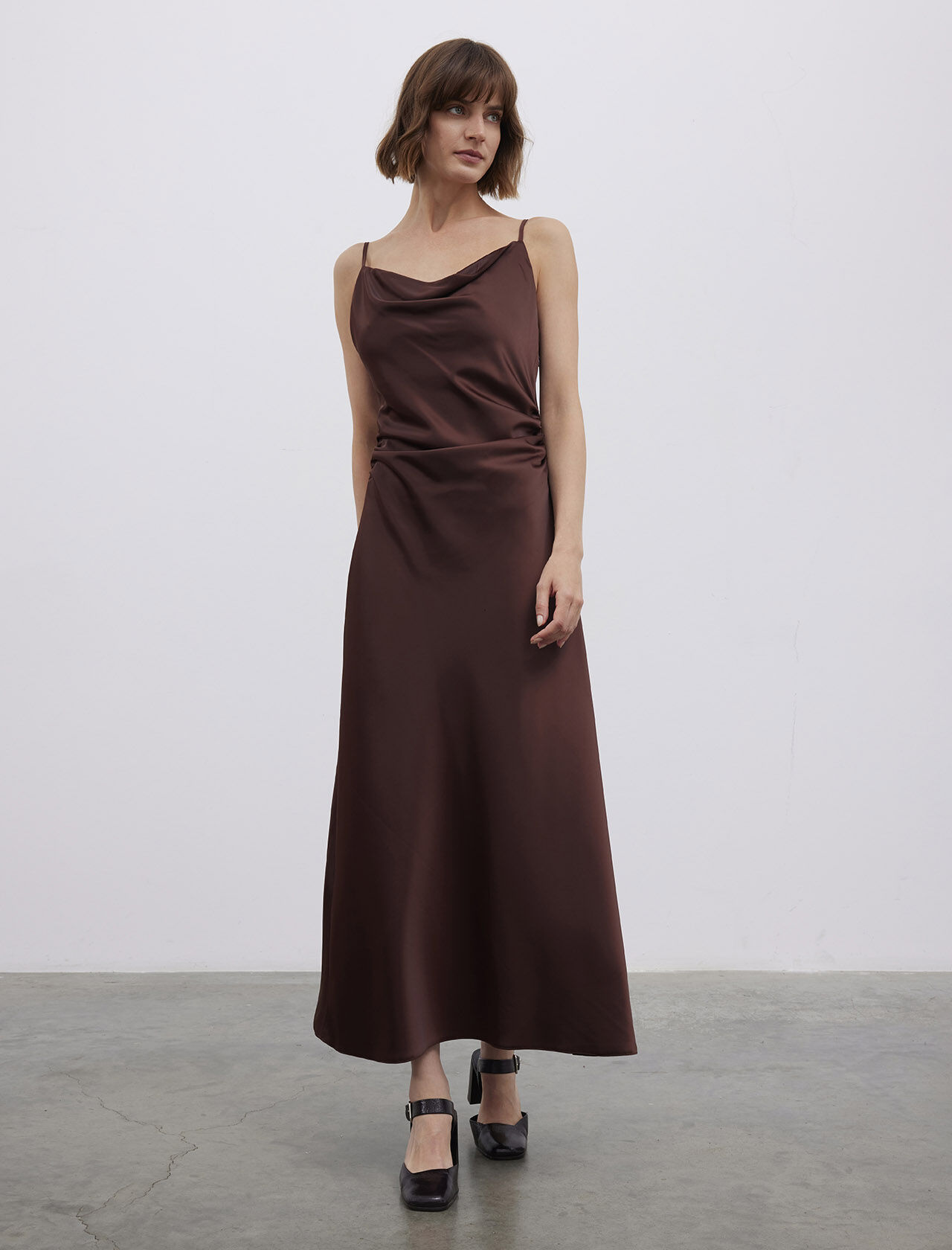 DUSUK KOL VEREV KESIM SATEN ELBISE