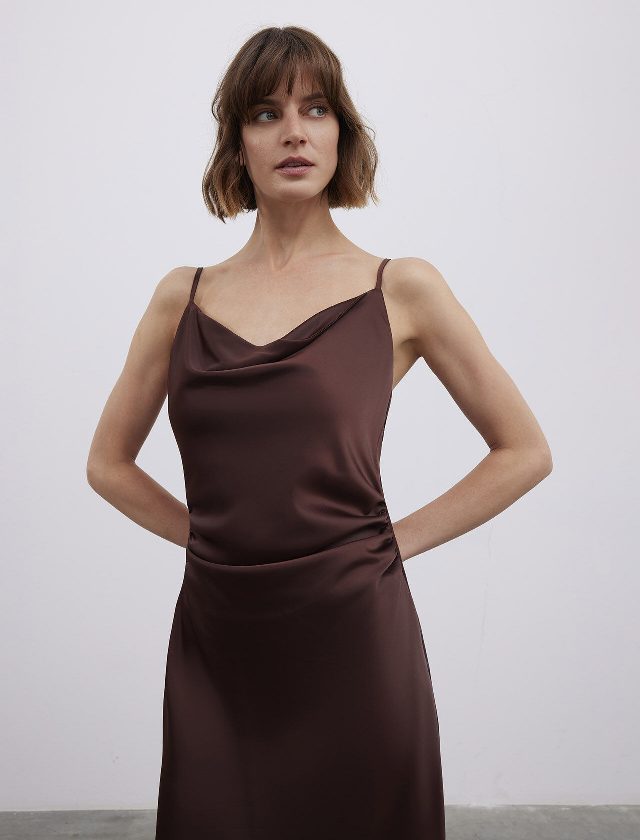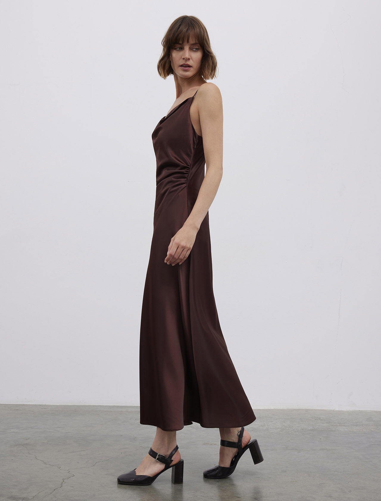 ERKEK YAKALI BAGLAMA DETAYLI SATEN ELBISE