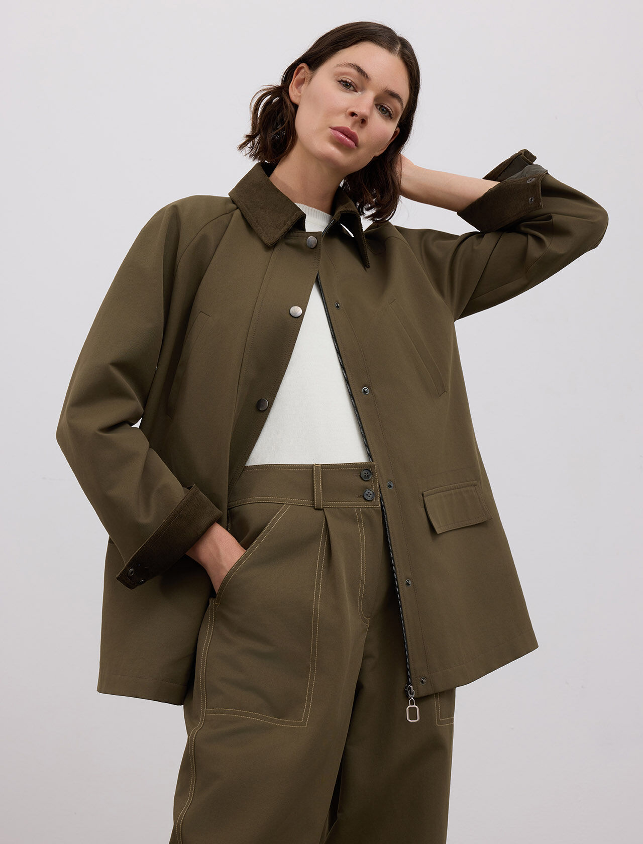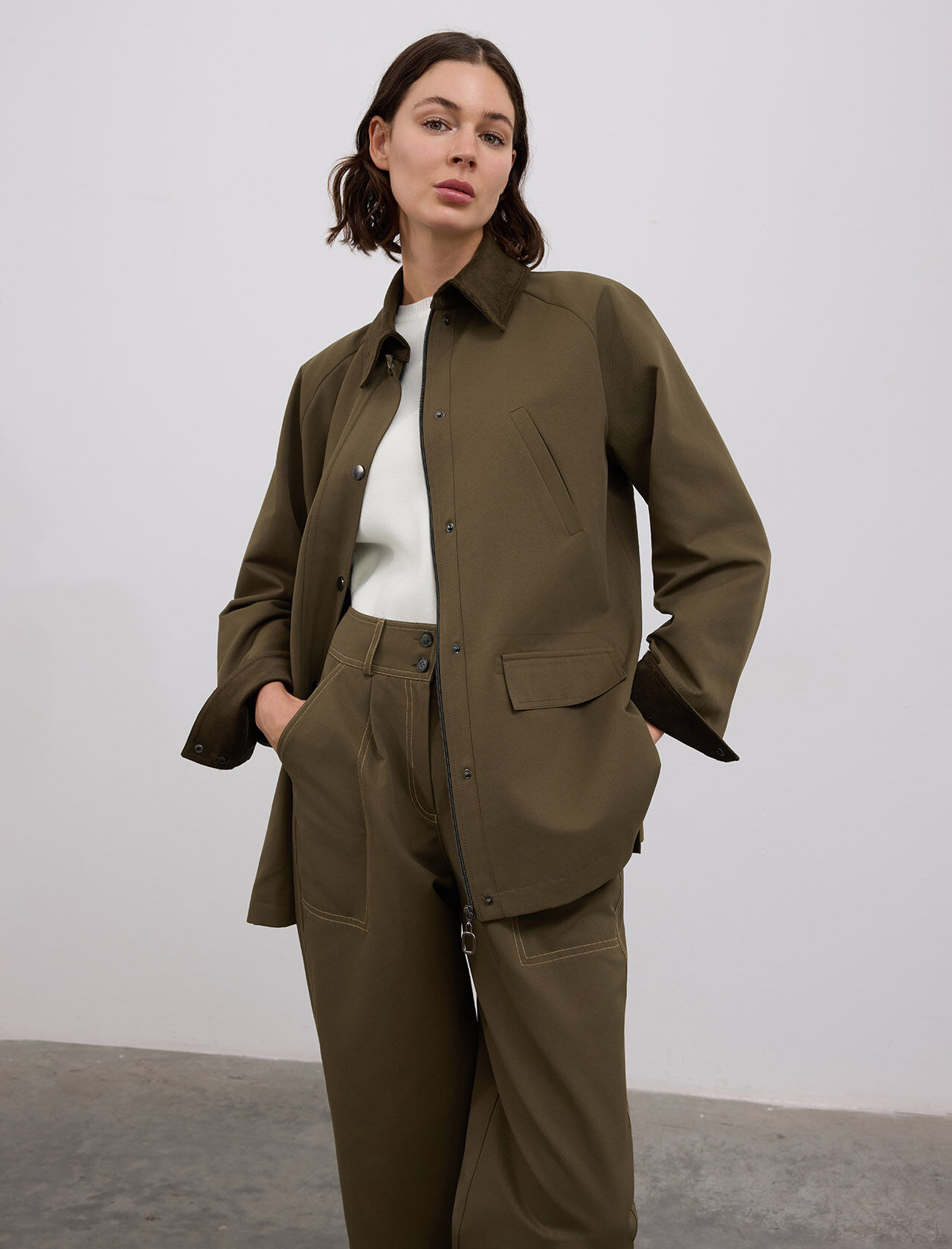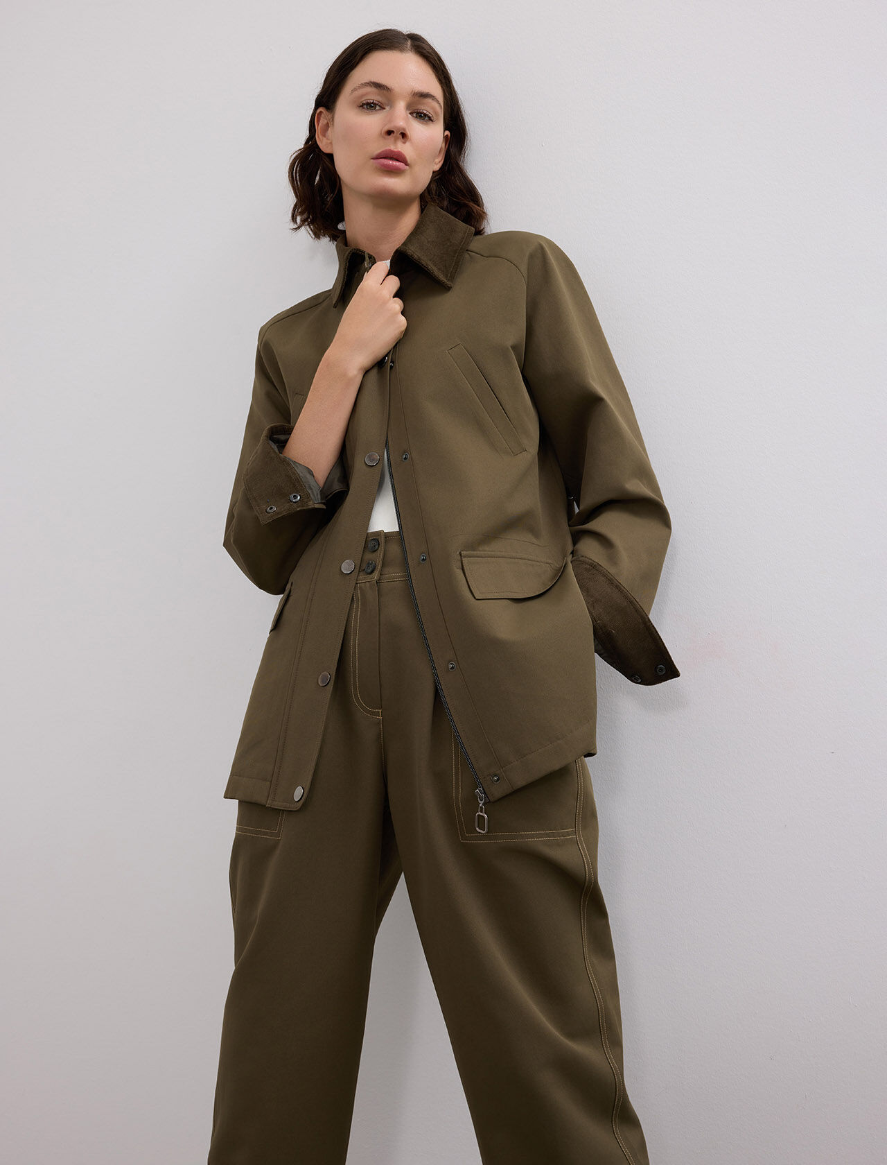 KADIFE GARNILI FERMUARLI KISA TRENCHCOAT