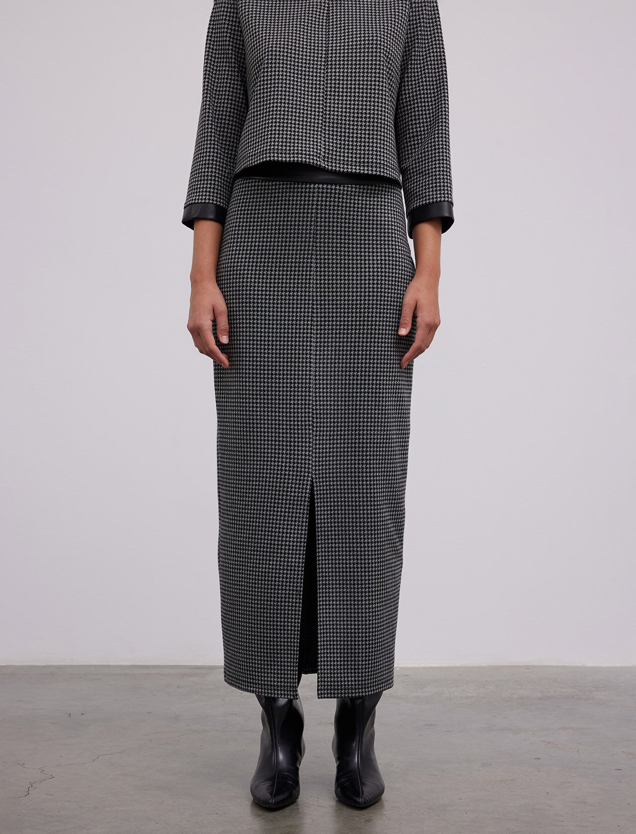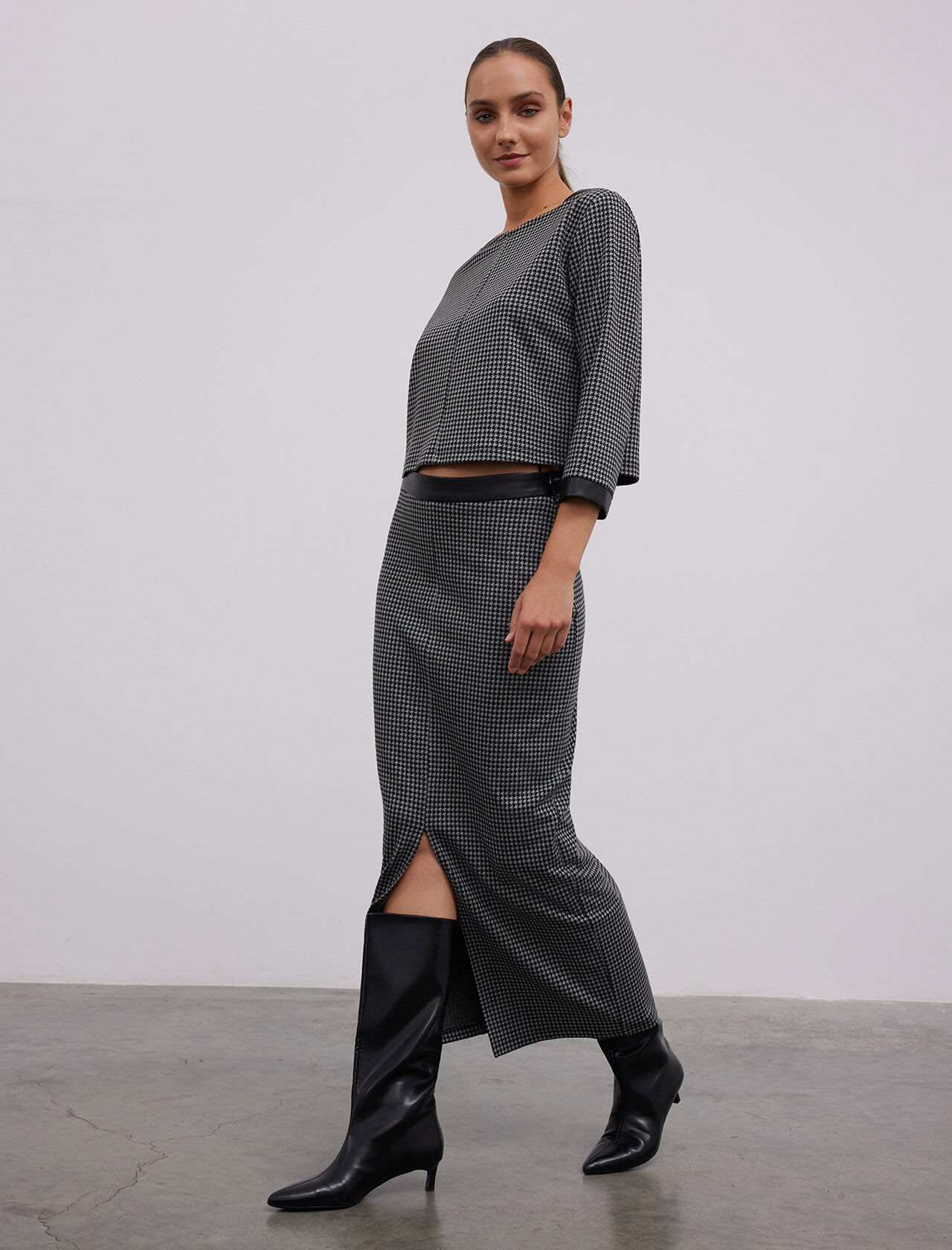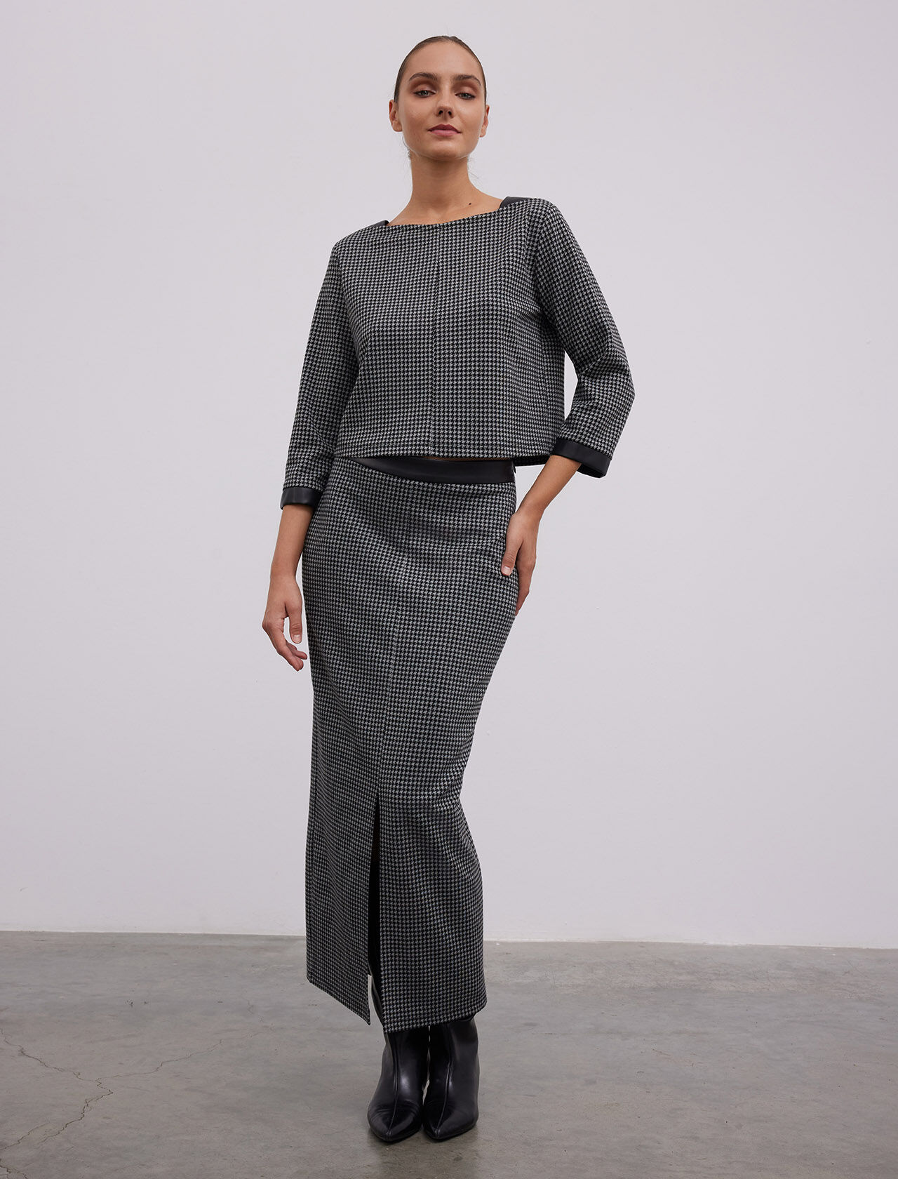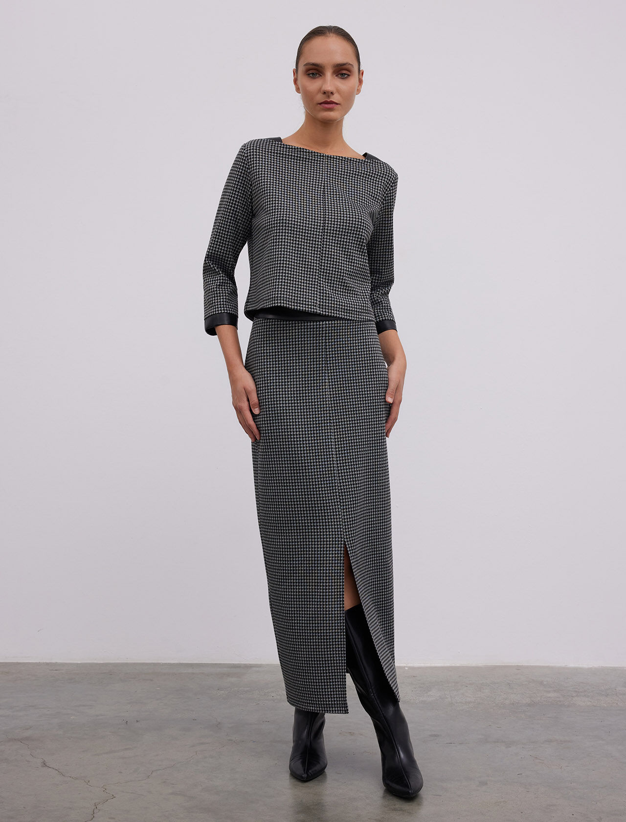 KAZAYAGI DESENLI DERI GARNILI YIRTMACLI MIDI ETEK