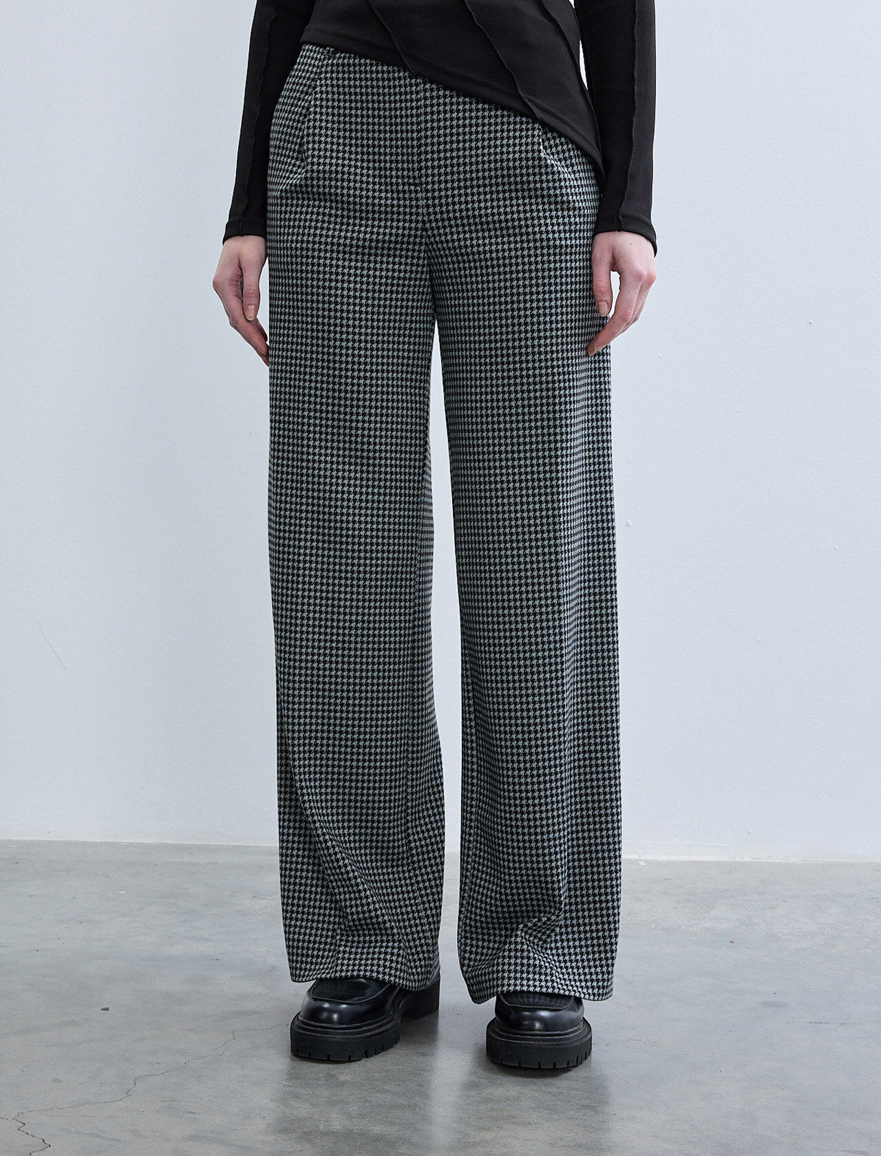 KAZAYAGI DESENLI GENIS PACA PANTOLON