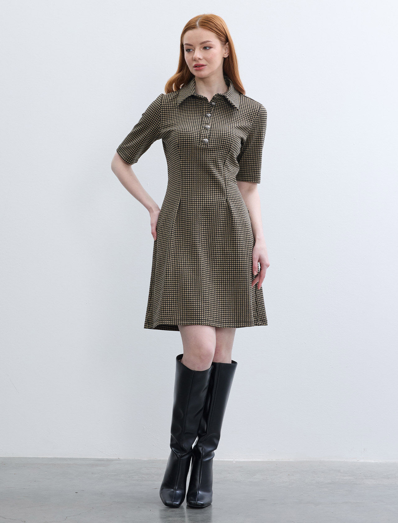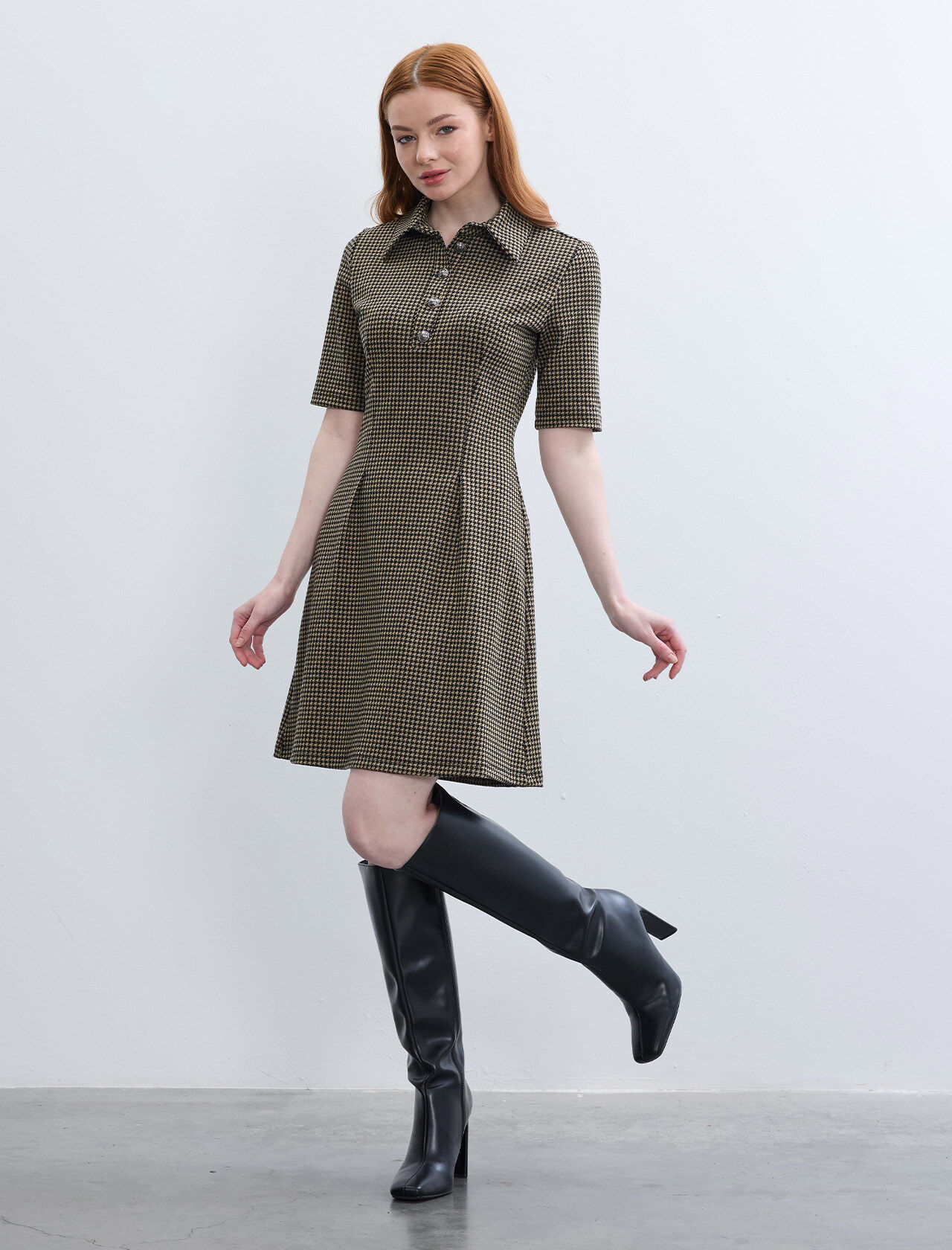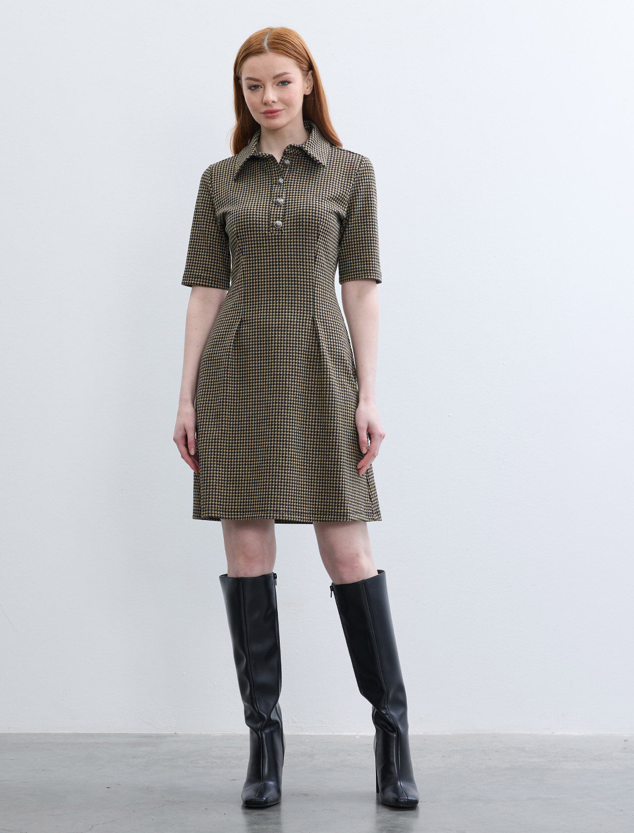 KAZAYAGI DESENLI PILE DETAYLI MINI ELBISE