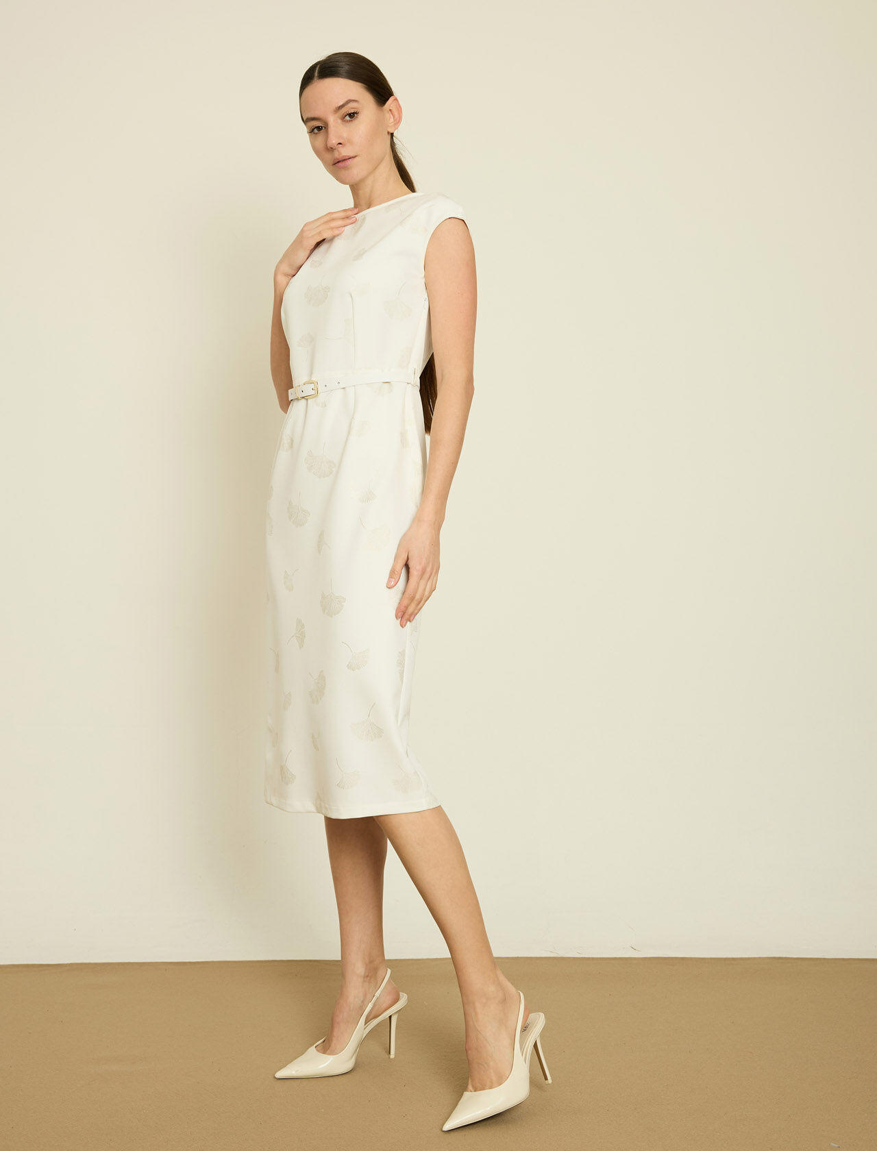 KEMER DETAYLI MIDI ELBISE