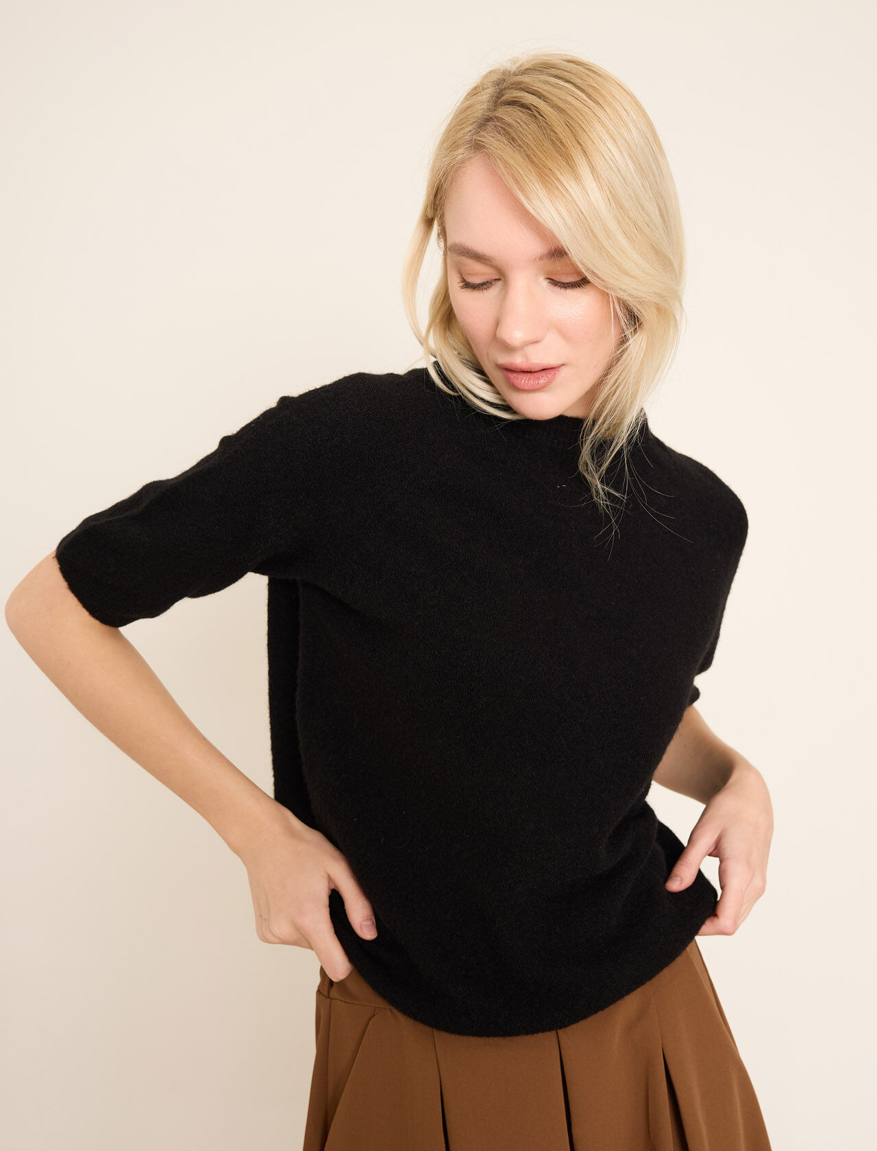 Kısa Kollu Yumuşak Örme Kazak