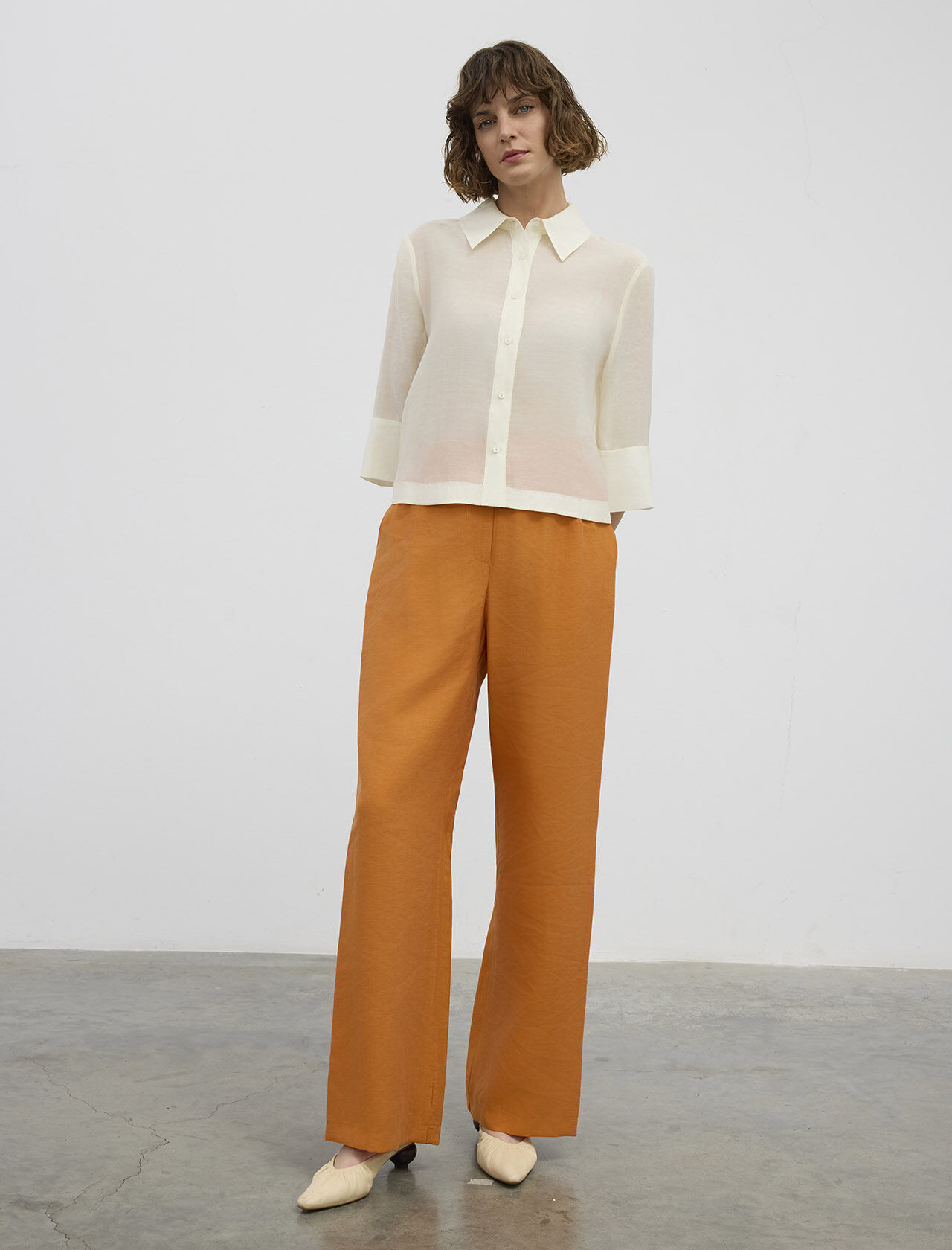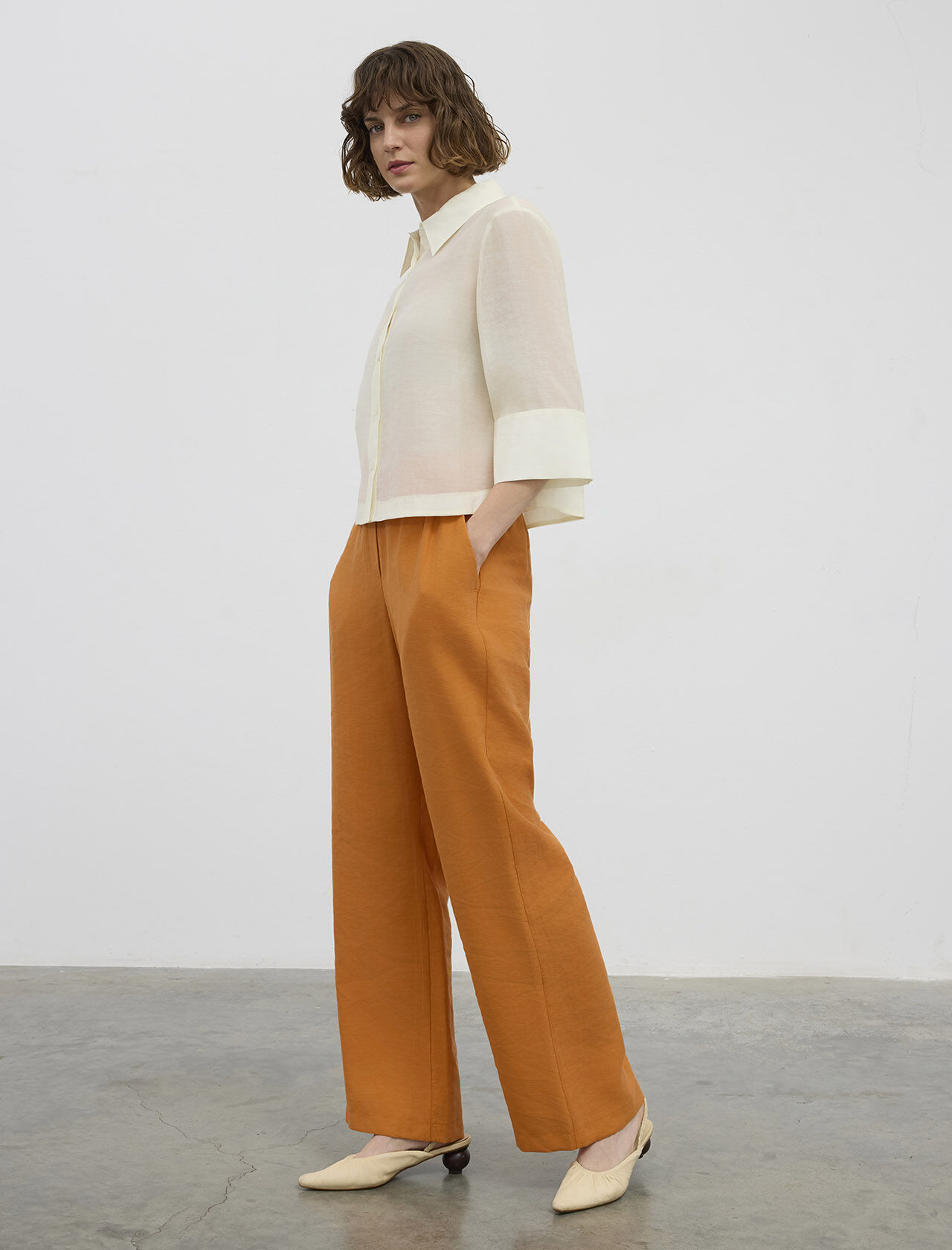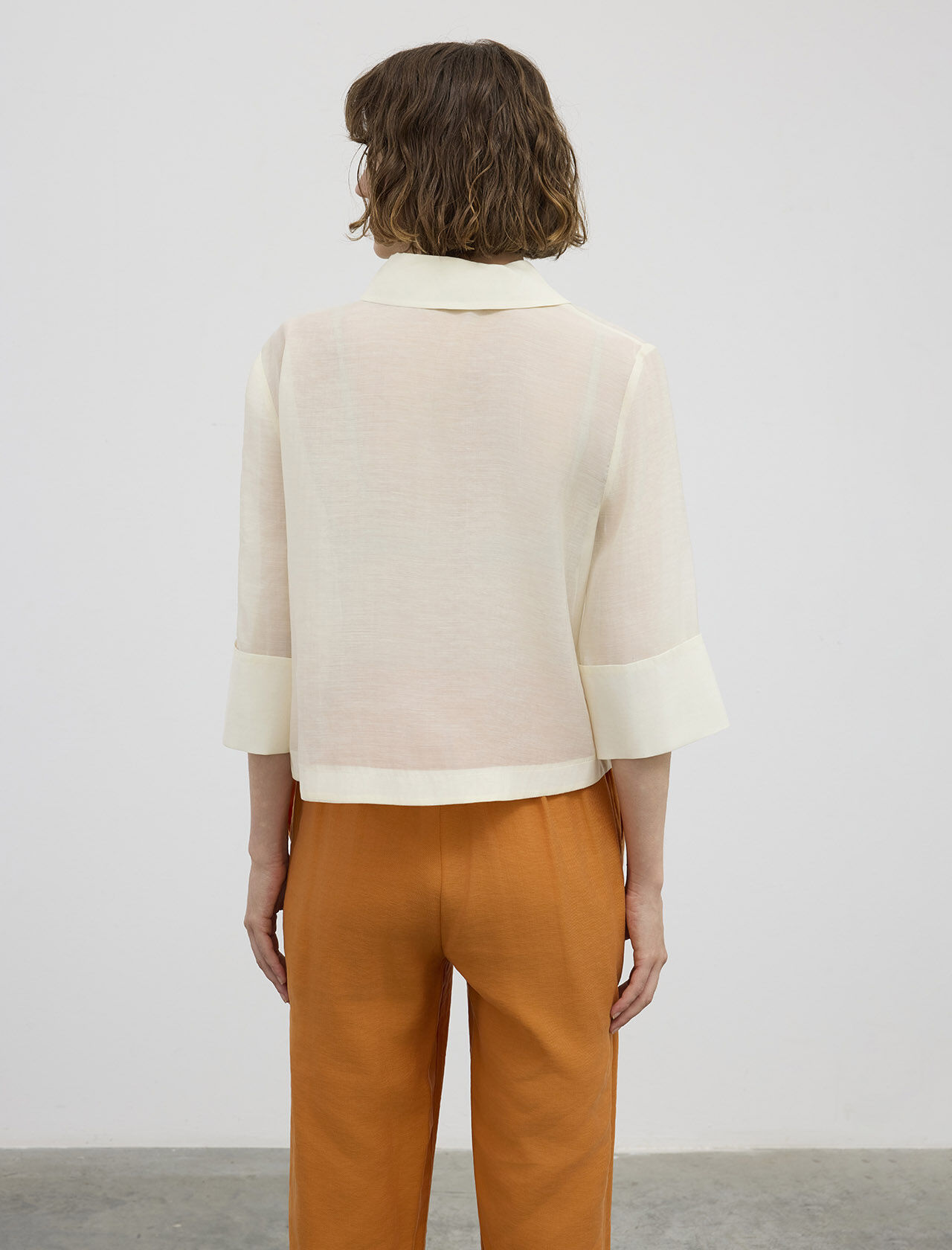Asimetrik Bağlama Detaylı Viskon Keten Gömlek
