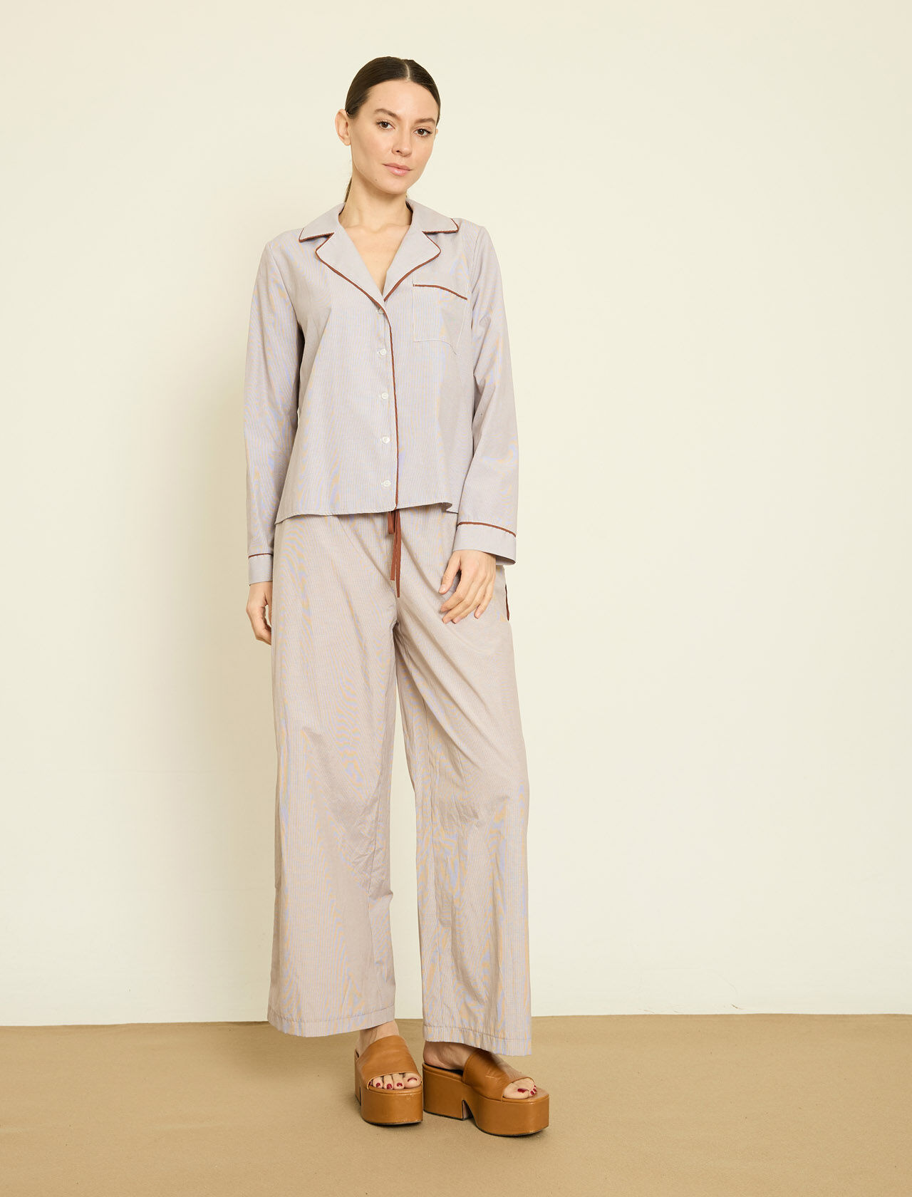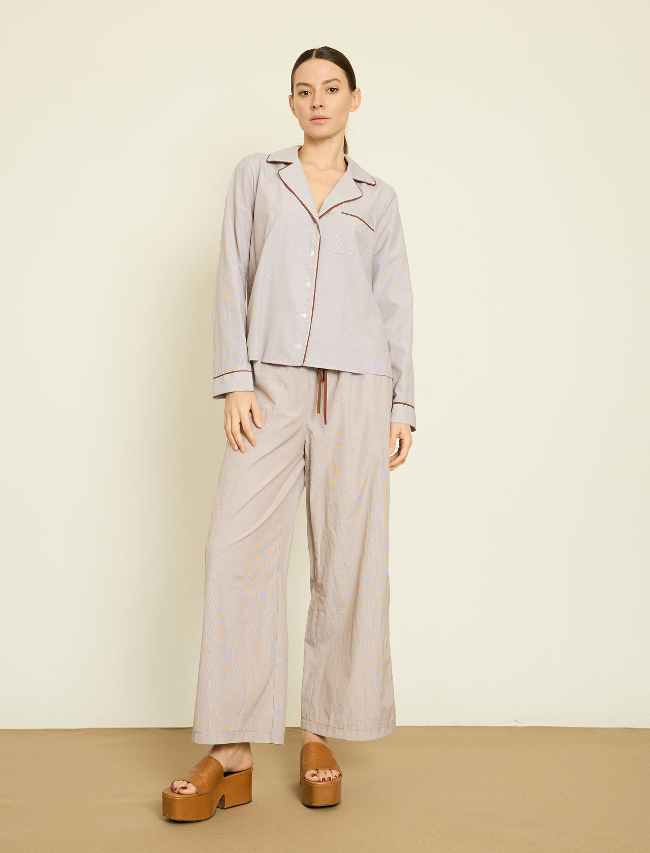 SUNI DERI UZERI NAKISLI CIZGILI POPLIN GOMLEK