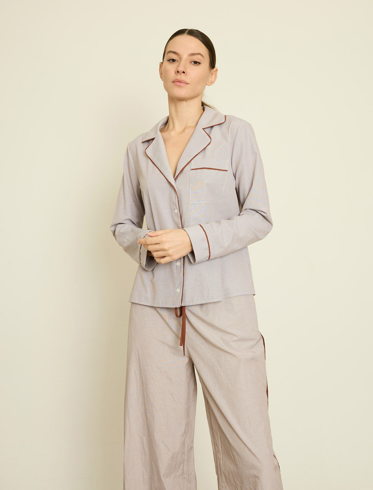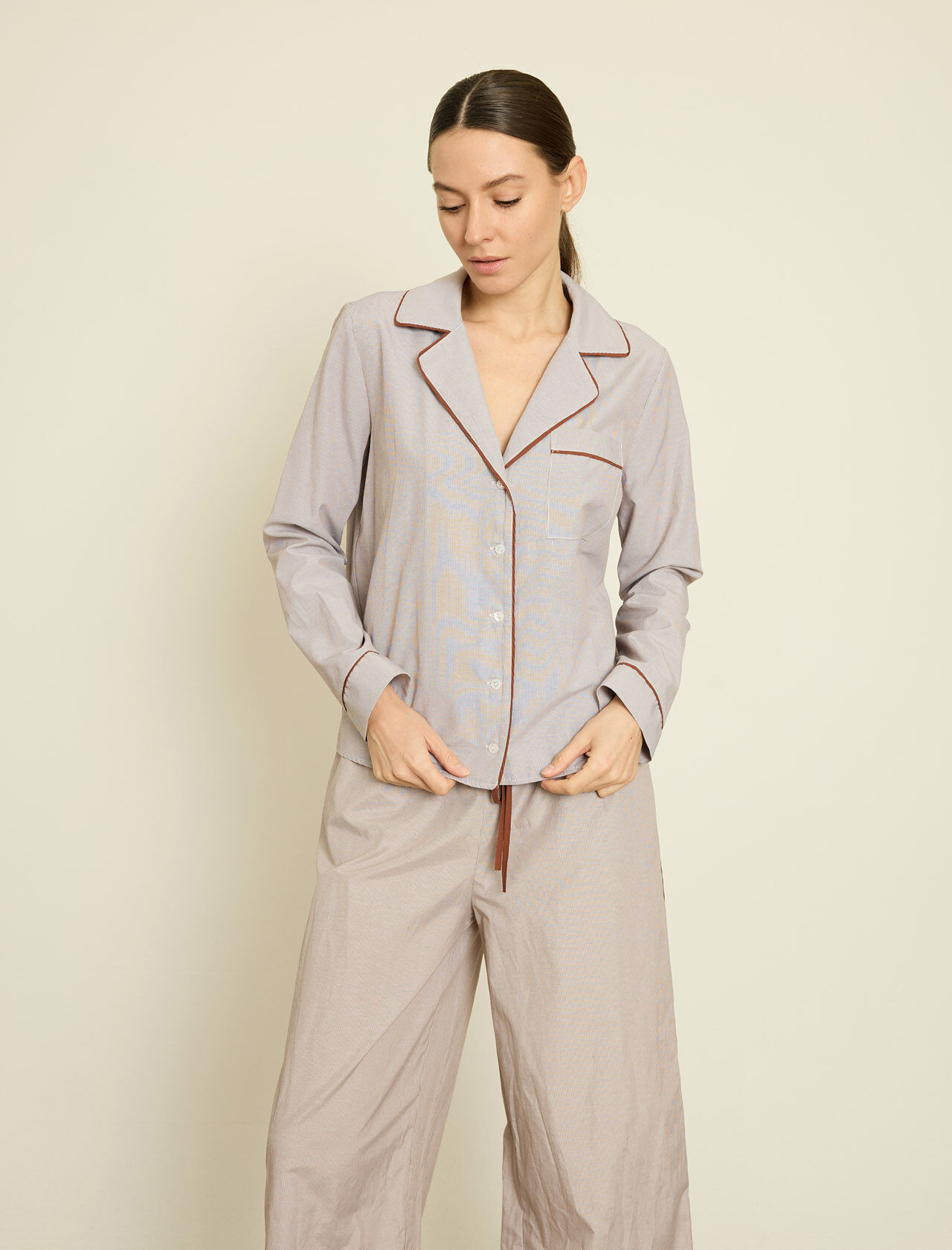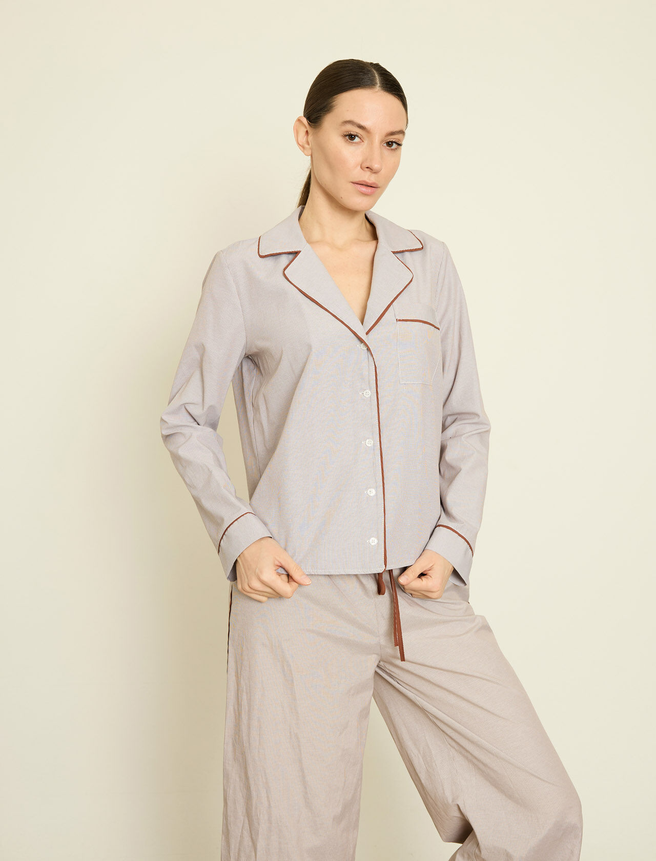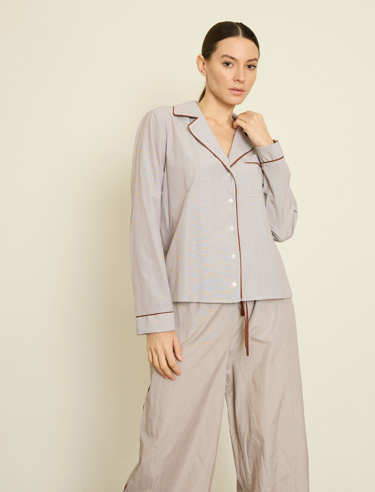 KONTRAST BIYELI CIZGILI POPLIN GOMLEK
