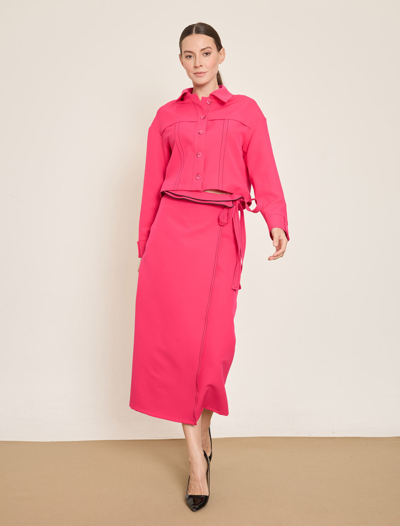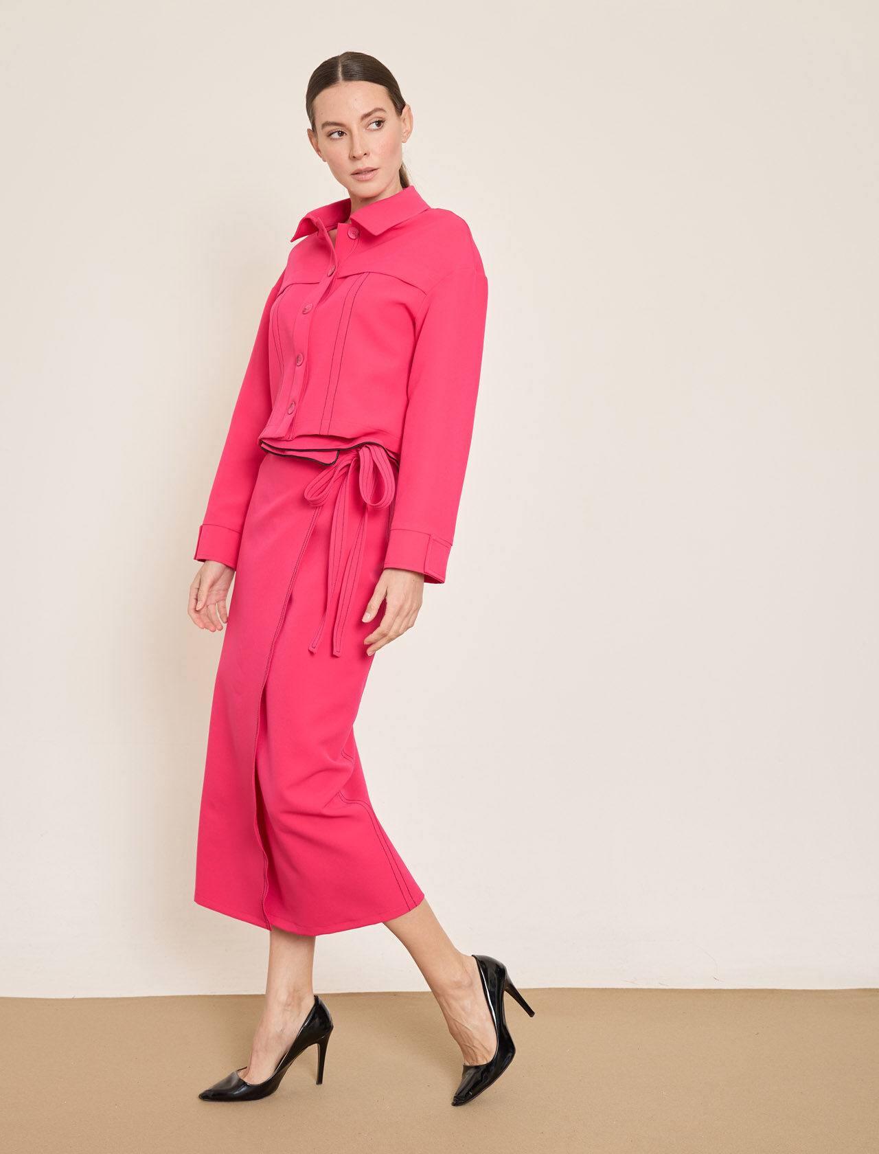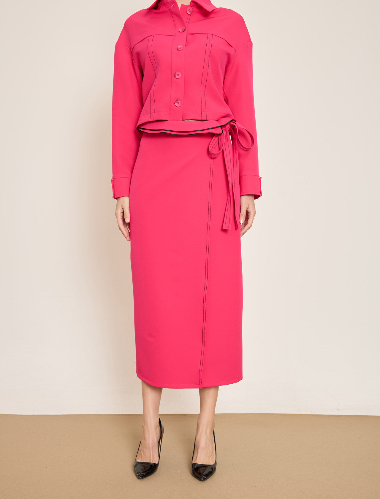 YANDA FERMUAR DETAYLI PILELI MIDI ETEK